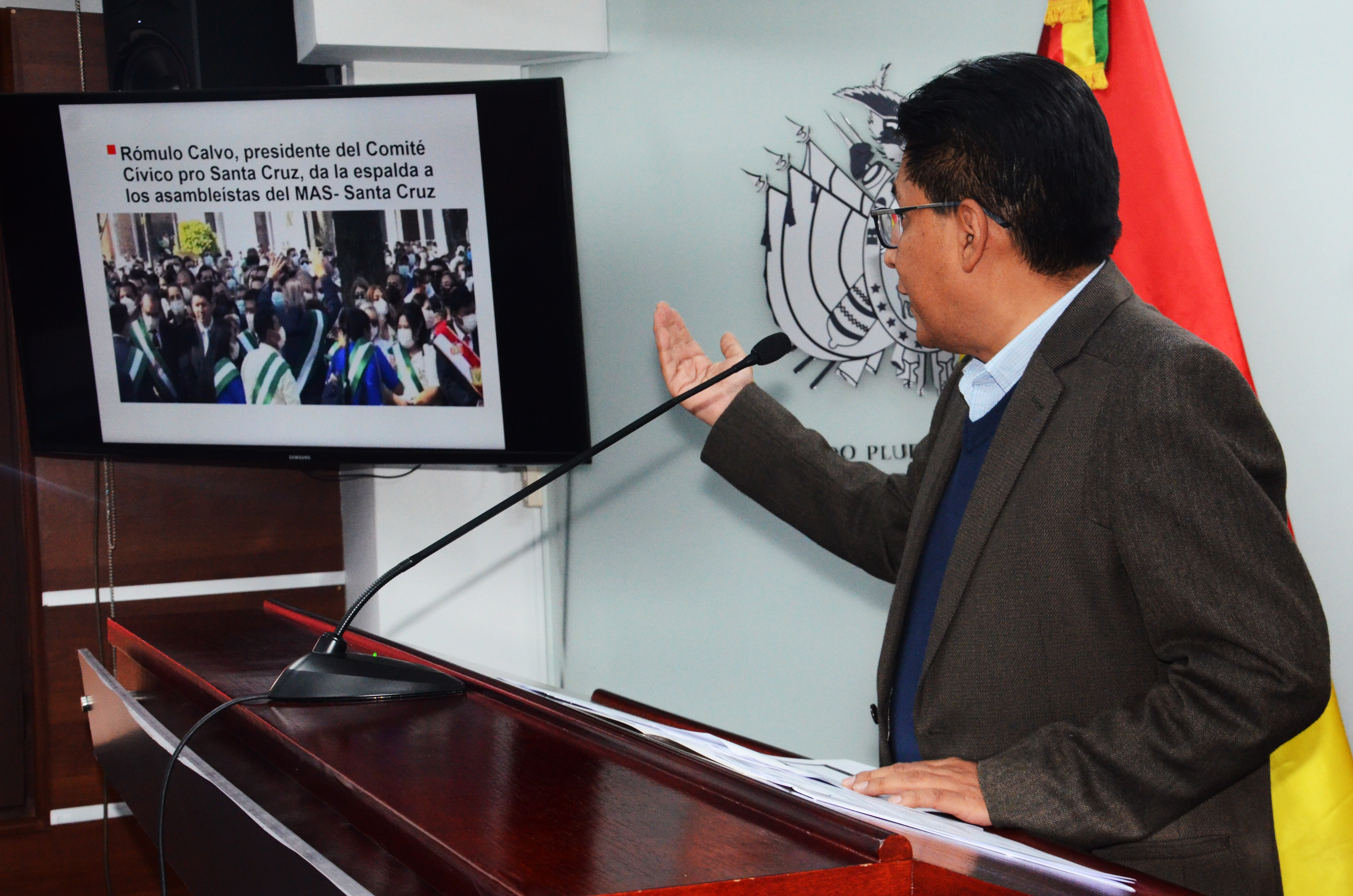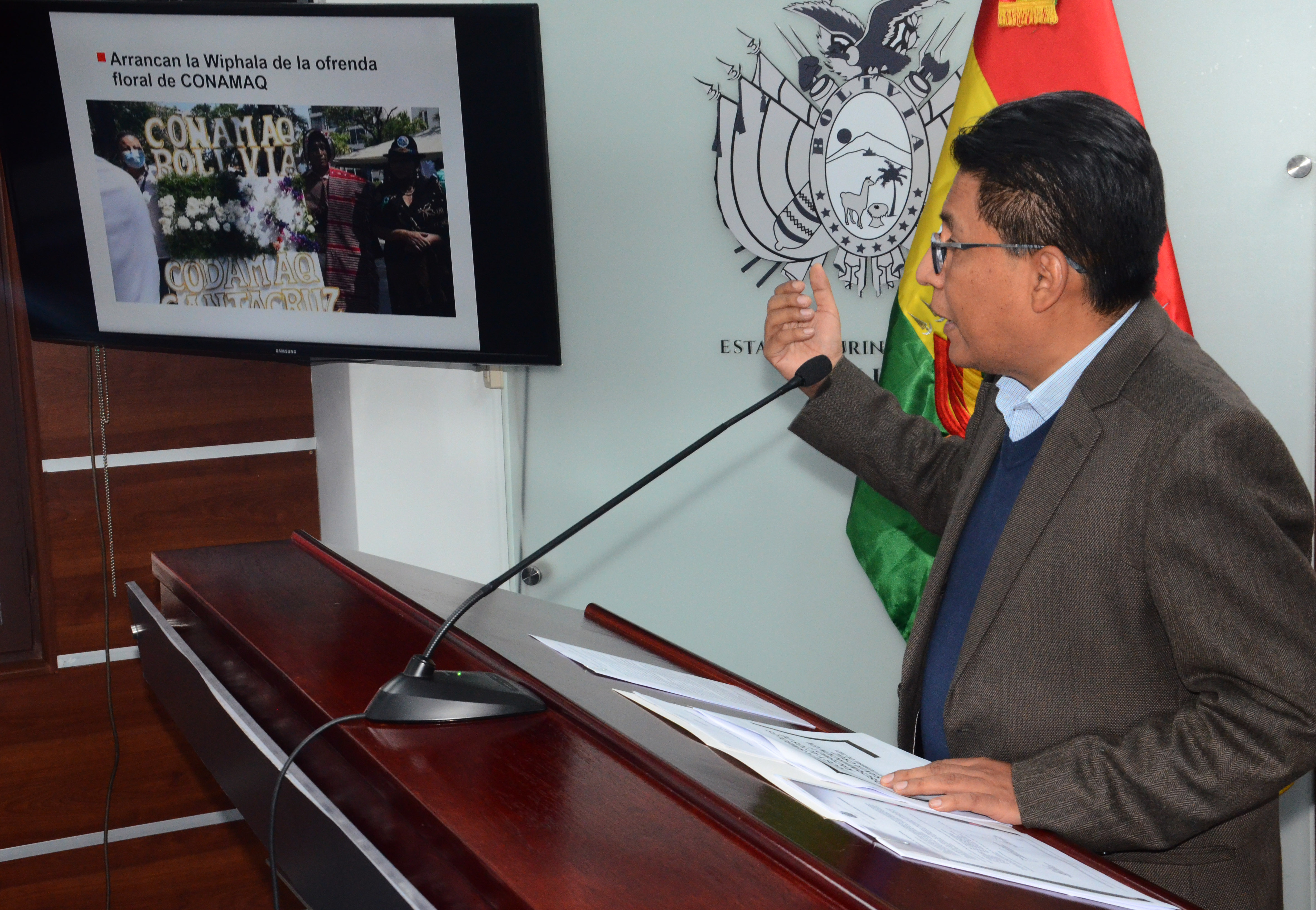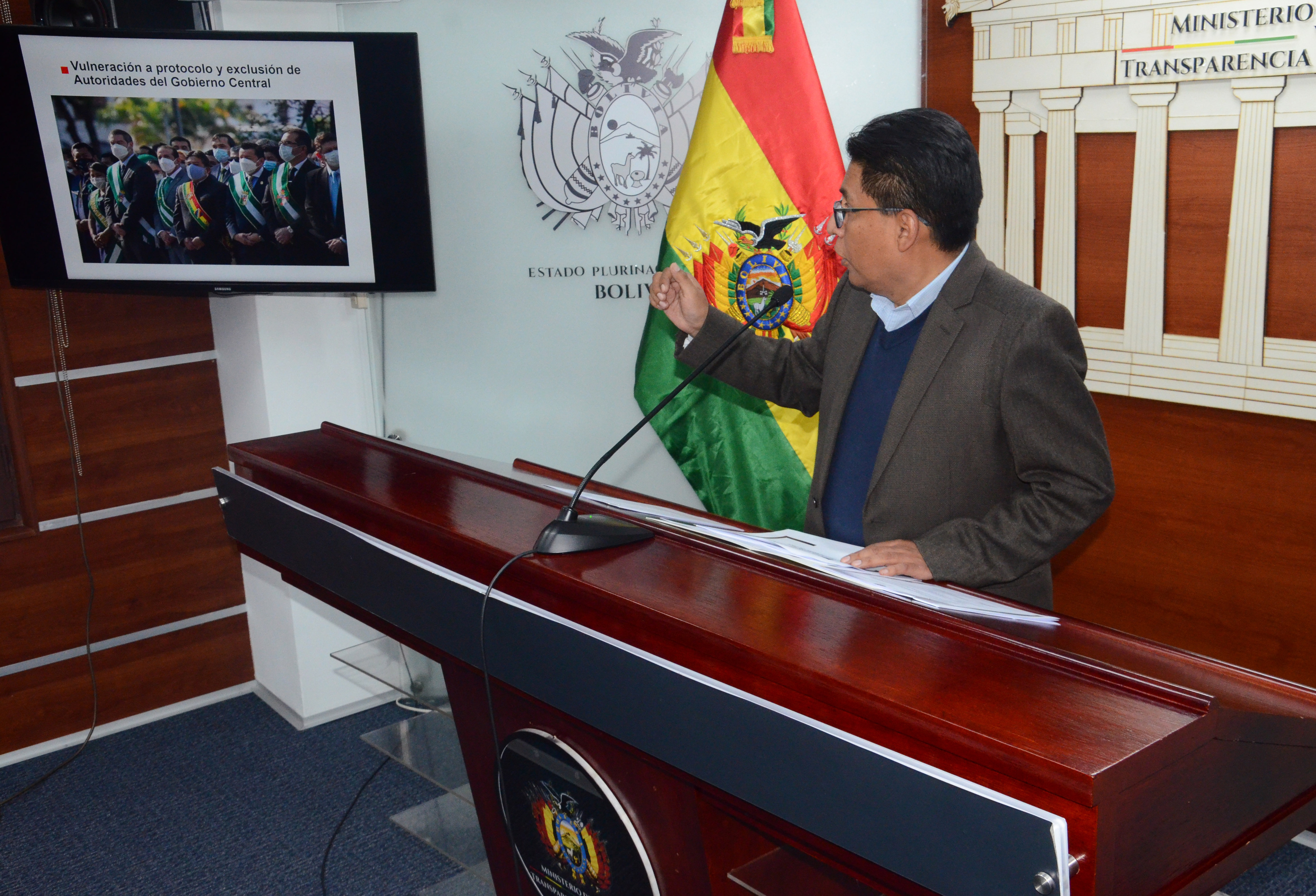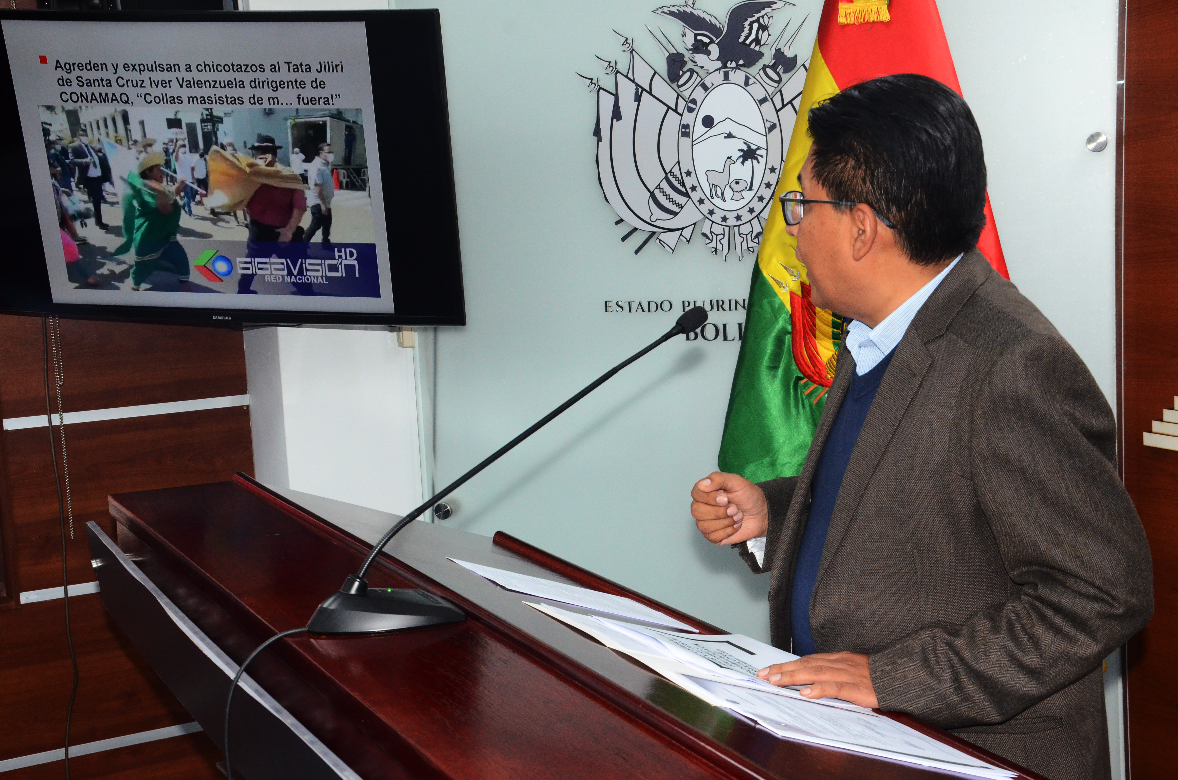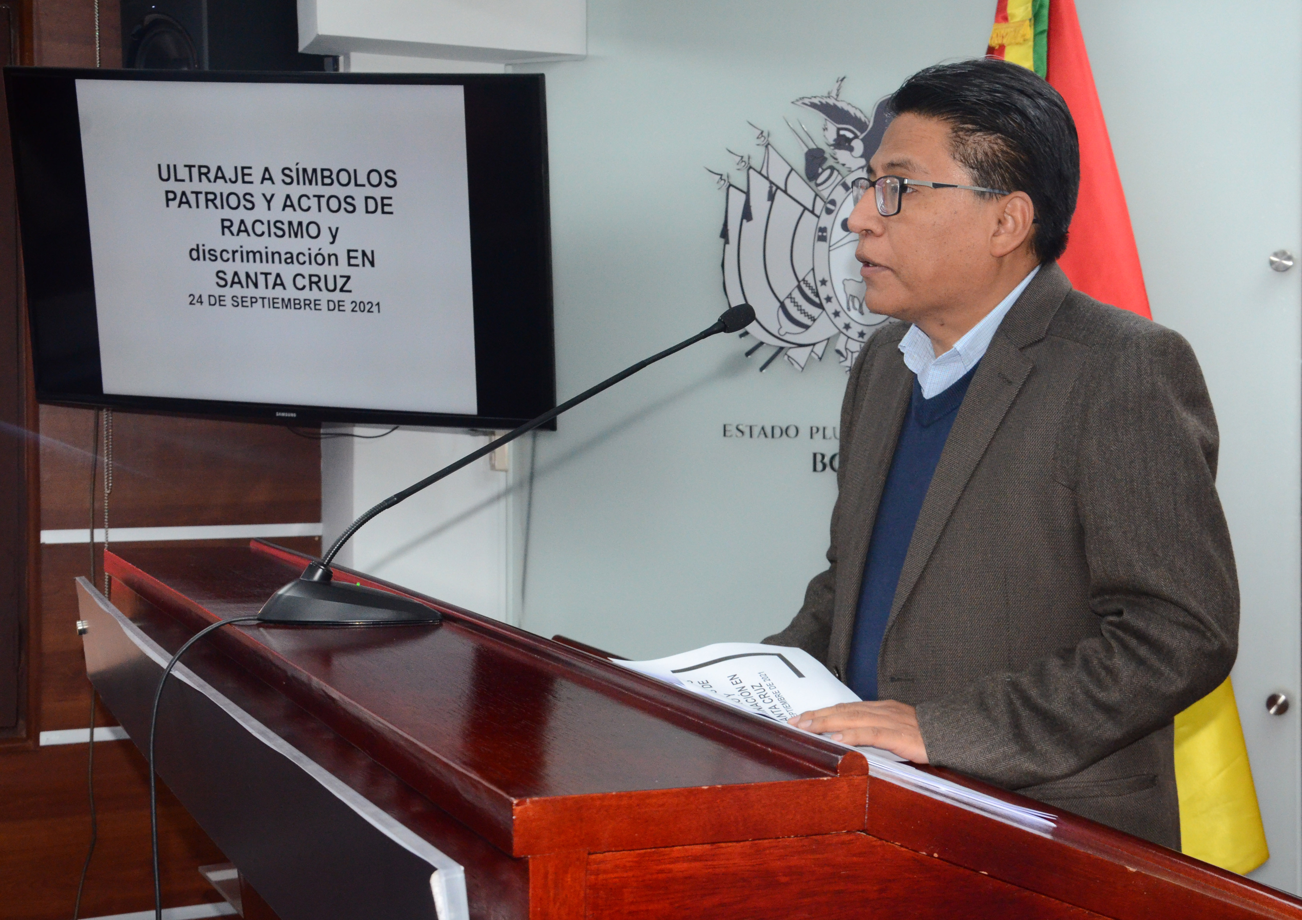 El Gobierno se constituirá en parte querellante sobre caso de discriminación, racismo y ultraje a símbolos patriosUsuario ABIGalería Fotográfica 24 Septiembre 2021 Visto: 9262ShareTwittearshare with Whatsappshare with Telegram FOTOS: ABI / JOSUE CORTEZAnteriorSiguiente