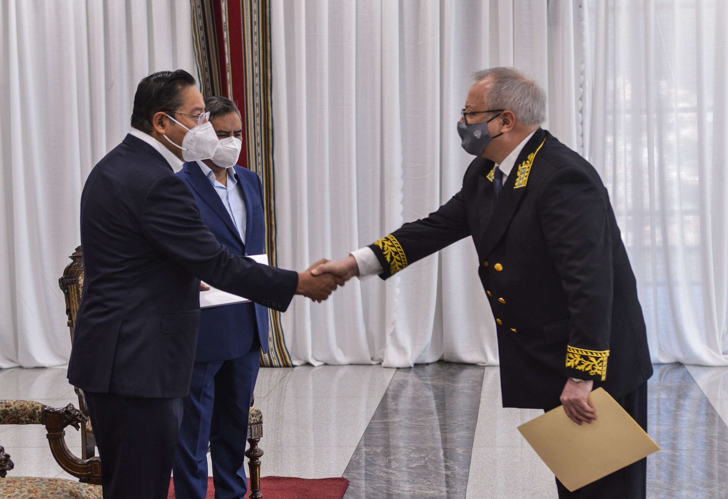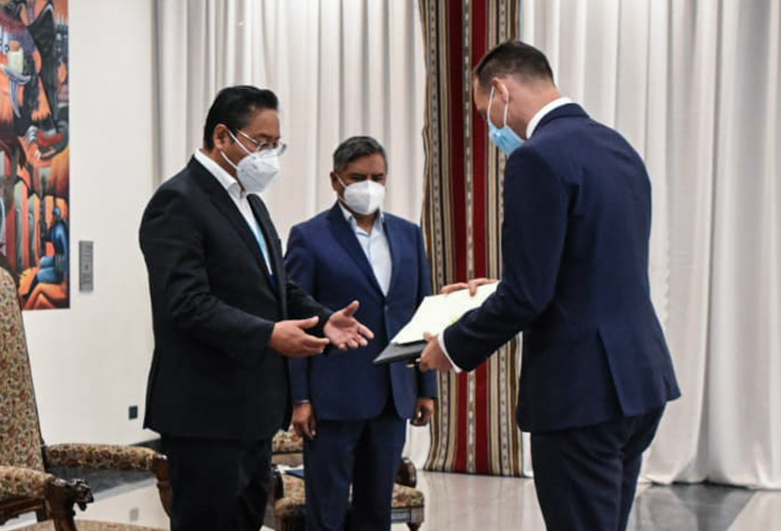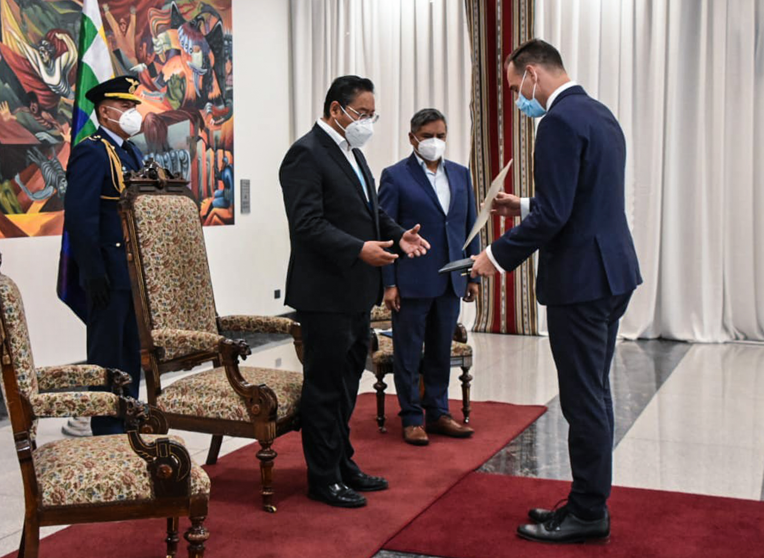 Presidente Arce recibe cartas credenciales de embajadores de América Latina y EuropaABI USUARIO HISTORICOGalería Fotográfica 19 Abril 2021 Visto: 7047ShareTwittearshare with Whatsappshare with Telegram FOTOS: ABIAnteriorSiguiente