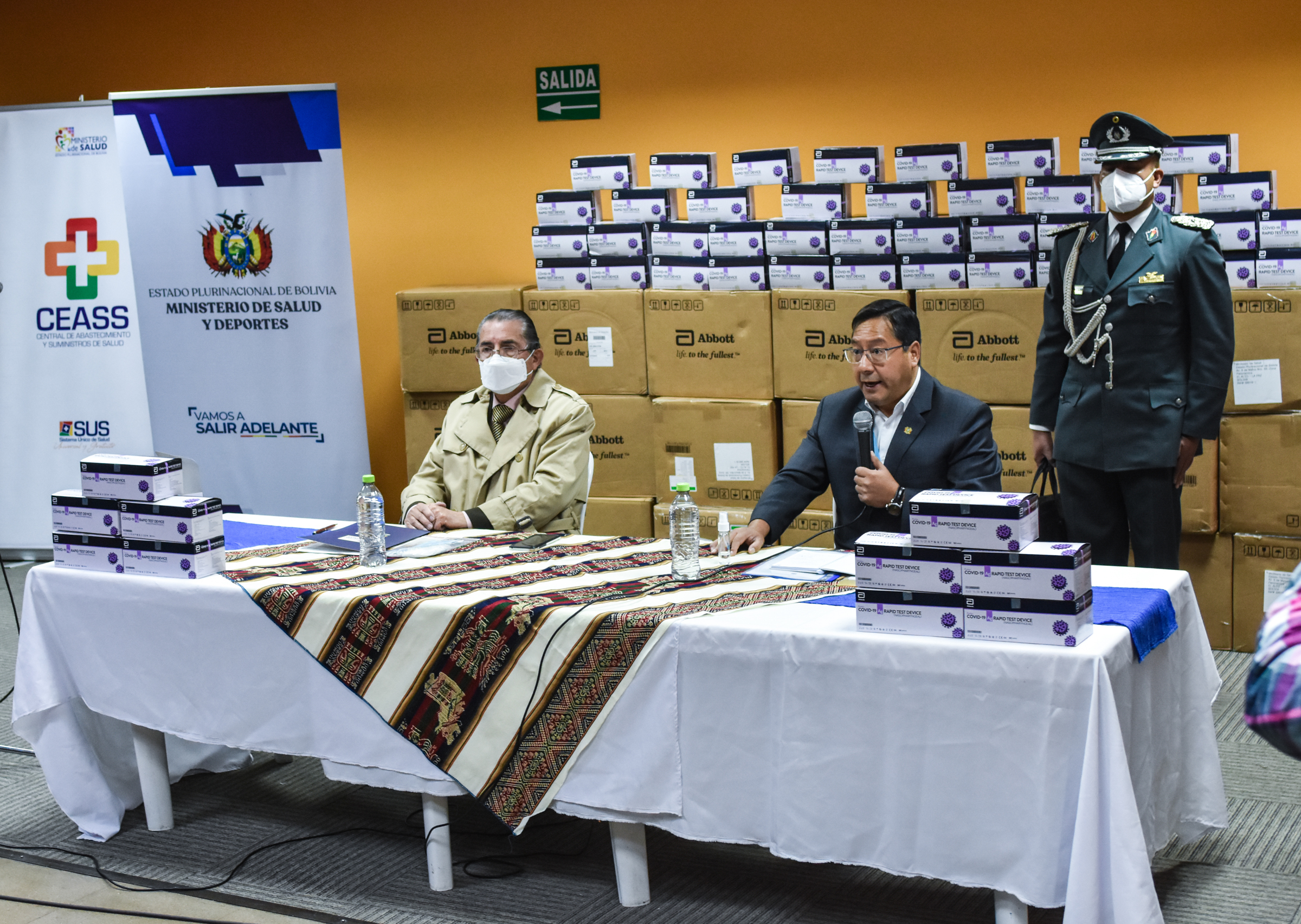 Gobierno entrega 206 mil pruebas de antígeno a Santa Cruz para detección rápida de casos COVID-19ABI USUARIO HISTORICOGalería Fotográfica 11 Enero 2021 Visto: 7524ShareTwittearshare with Whatsappshare with Telegram FOTOS / ABIAnteriorSiguiente