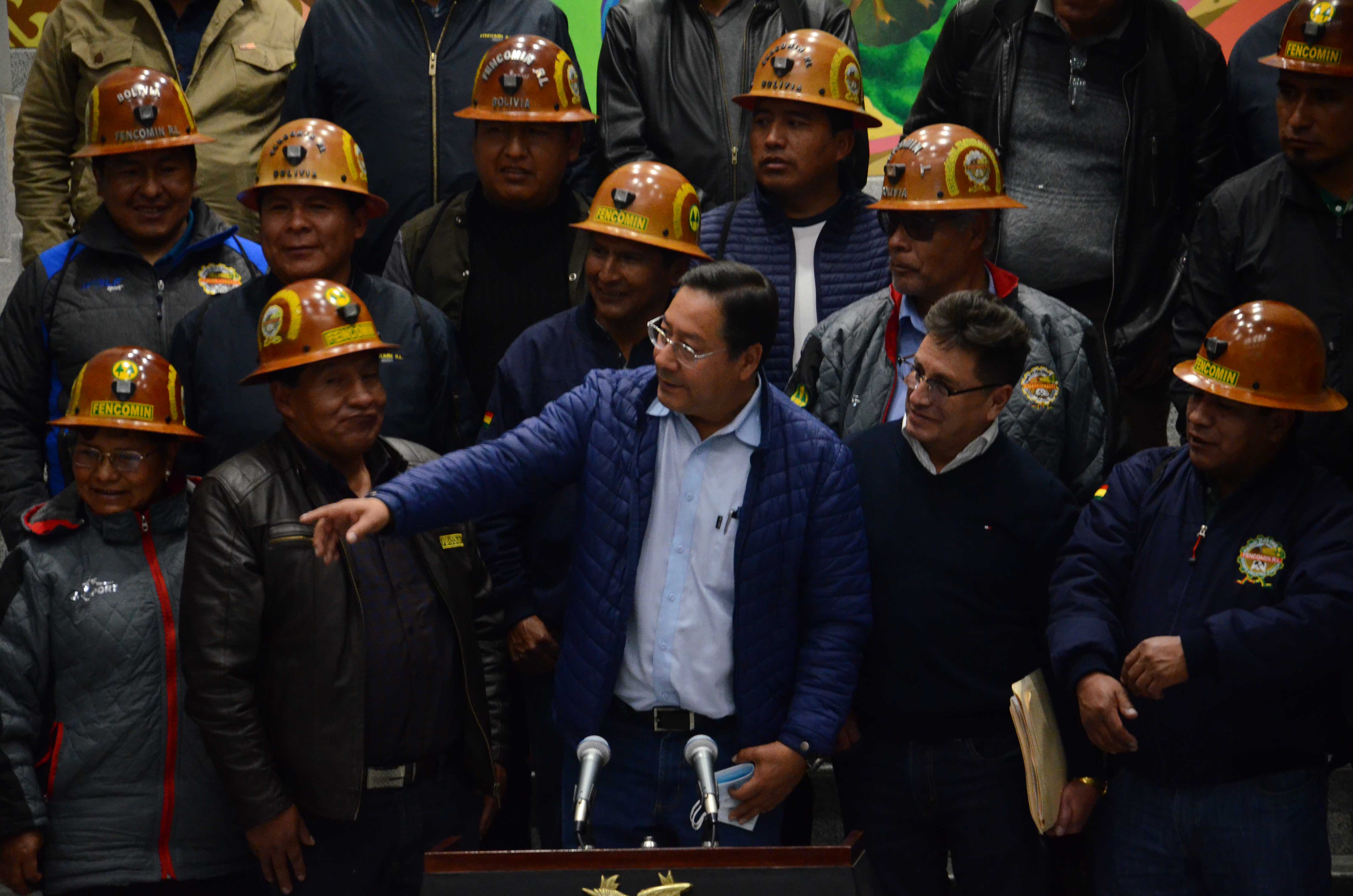 El presidente Luis Arce y la Federación Nacional de Cooperativas Mineras Fencomin, en conferencia de prensa sobre temas referentes al sectorUsuario ABIGalería Fotográfica 01 Julio 2022 Visto: 7072ShareTwittearshare with Whatsappshare with Telegram FOTOS: ABI / JOSUE CORTEZAnteriorSiguiente