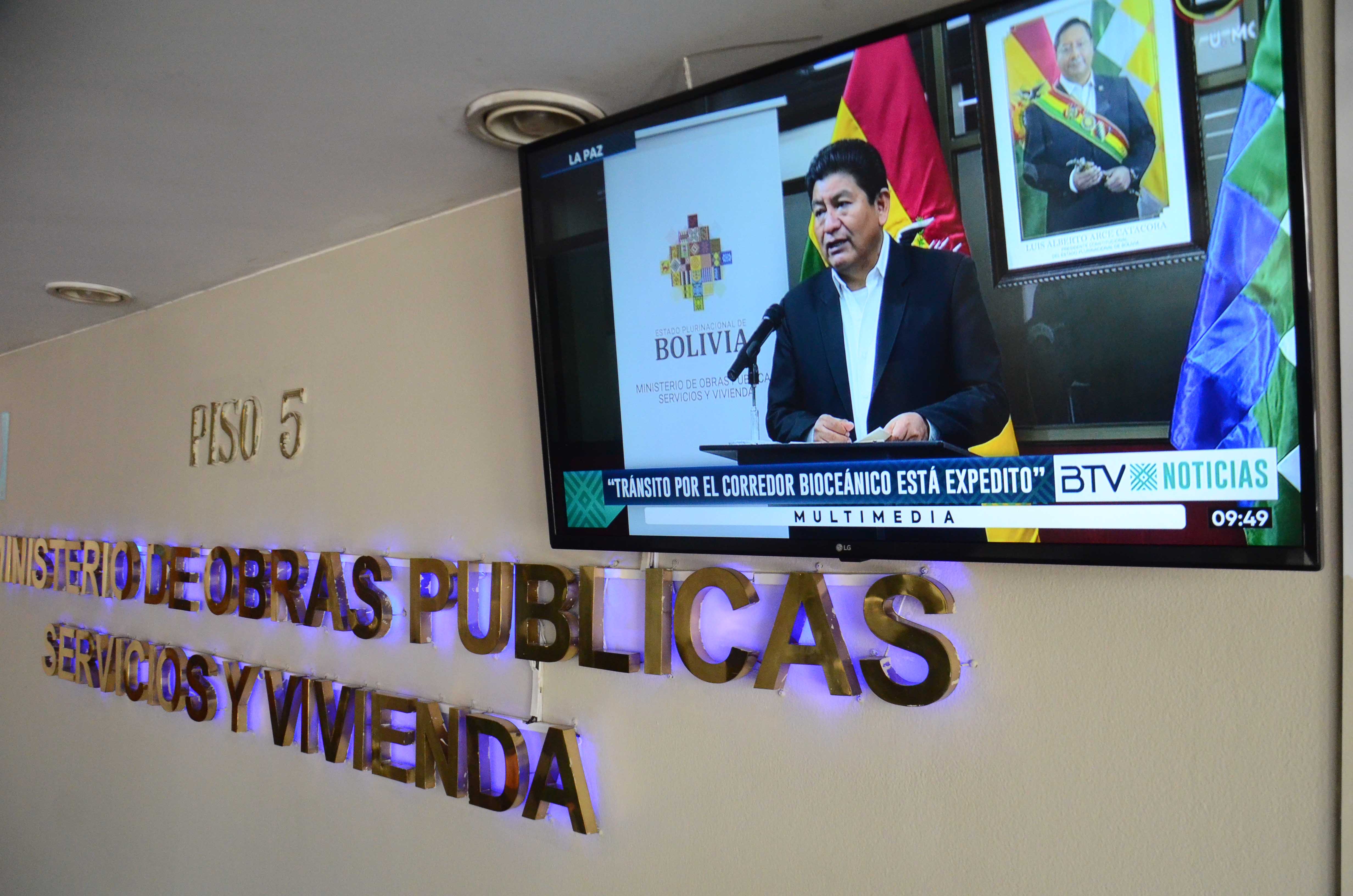 Ministro de Obras Públicas, Servicios y Vivienda, Edgar Montaño, Corredor Bioceánico Carretero está expedito tras acuerdo entre Gobierno y transportistasUsuario ABIGalería Fotográfica 06 Julio 2022 Visto: 6291ShareTwittearshare with Whatsappshare with Telegram FOTOS: ABI / JOSUE CORTEZAnteriorSiguiente