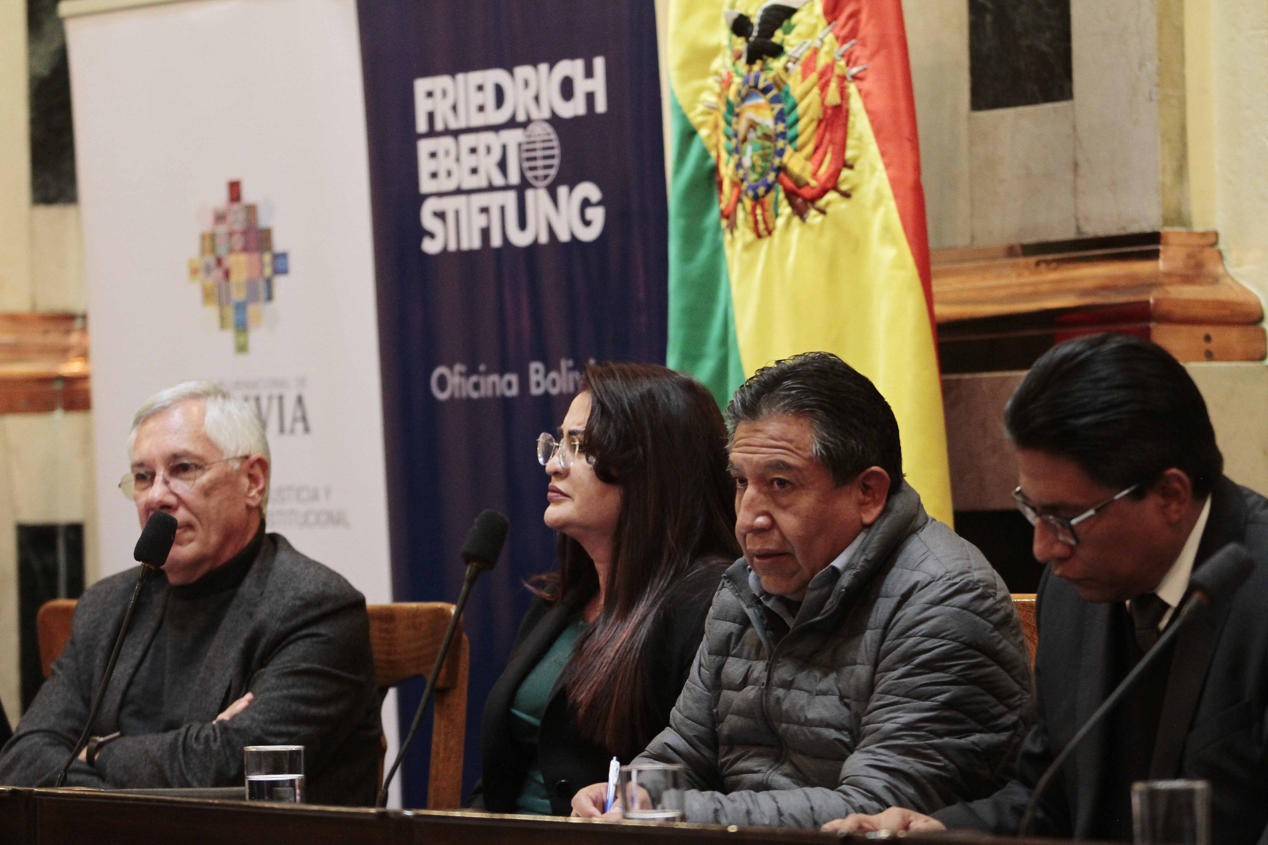 ''Diálogos Plurales para la transformación de la justicia en Bolivia'' con la participación del vicepresidente David Choquehuanca y diversos expositores en Hall de la Vicepresidencia