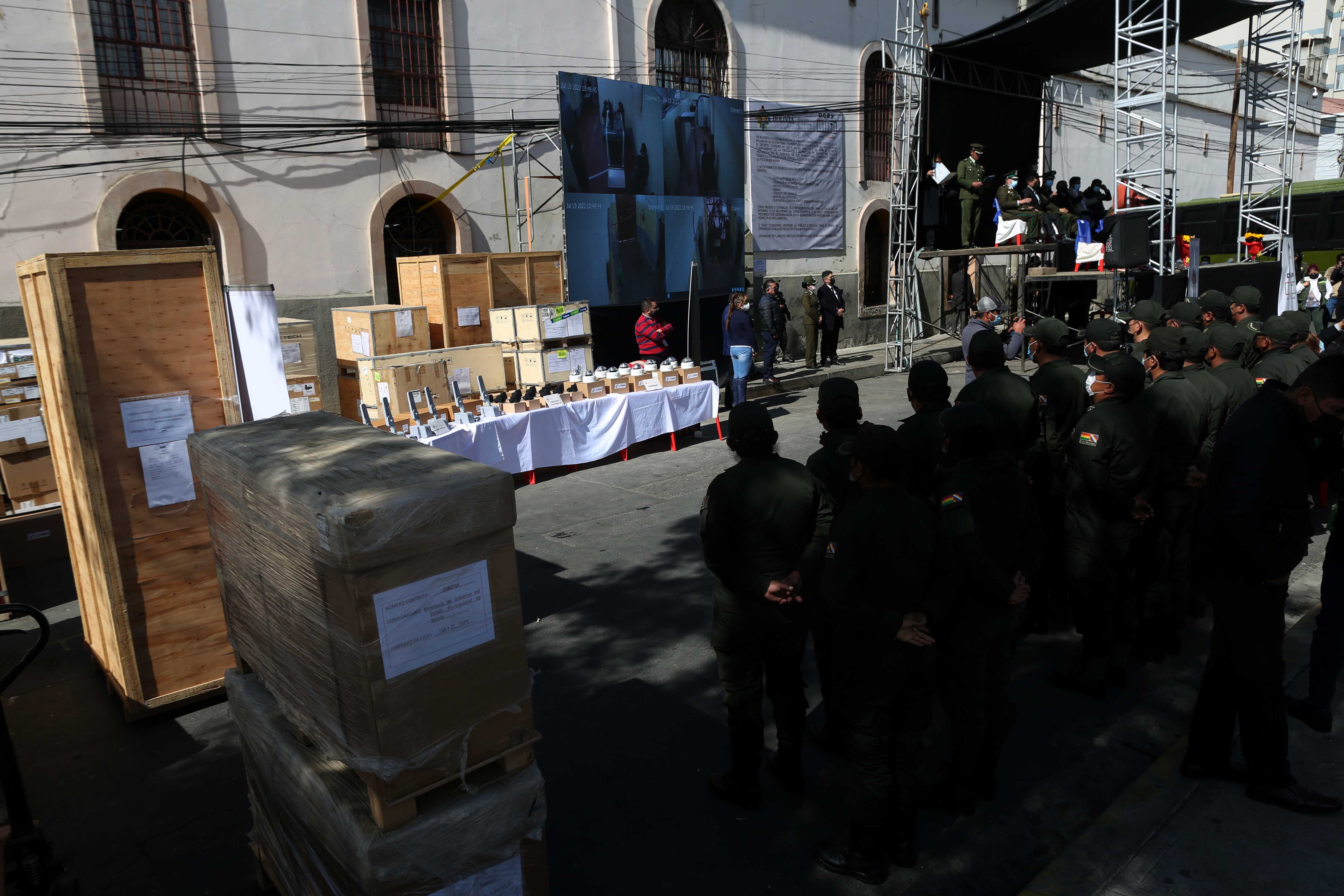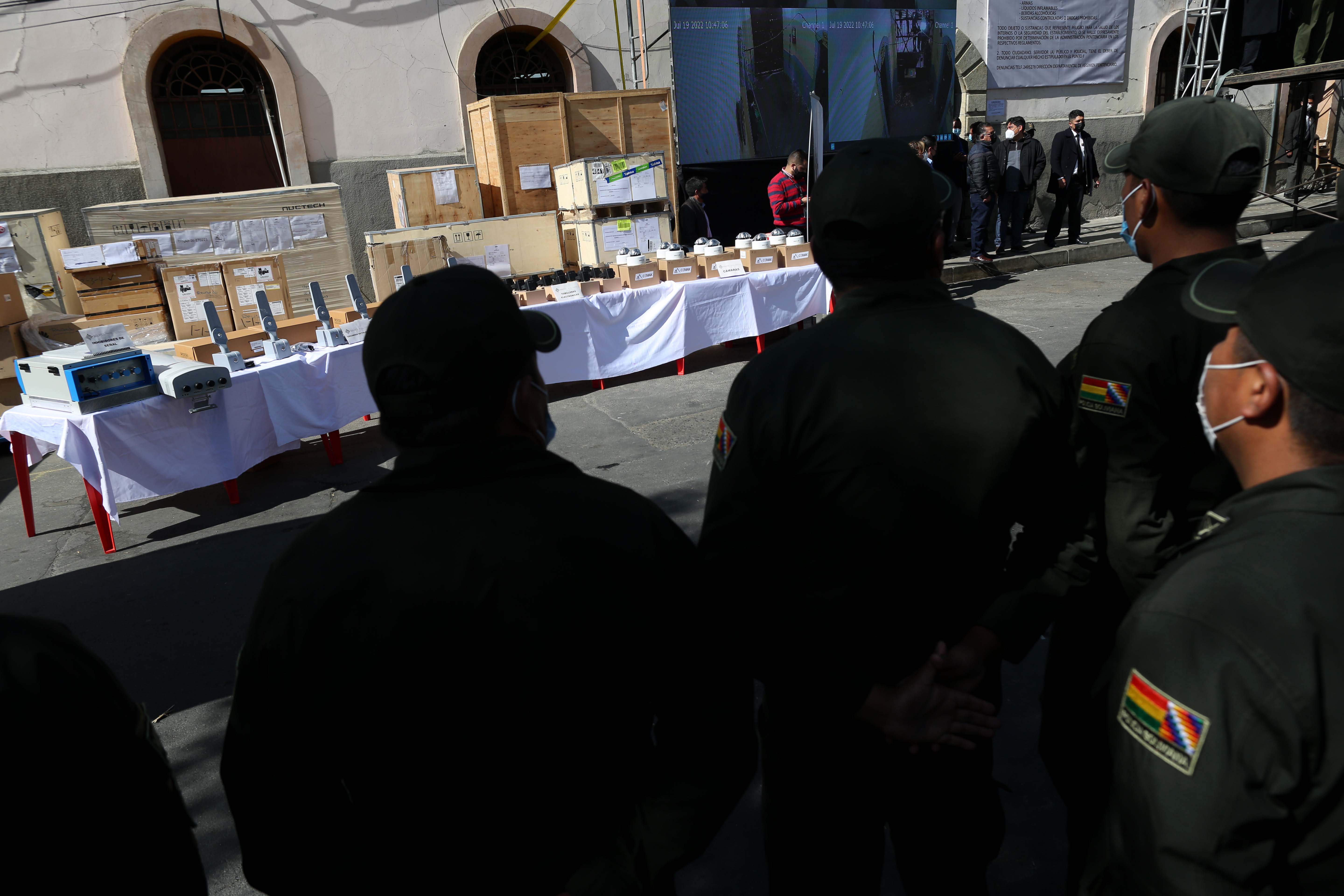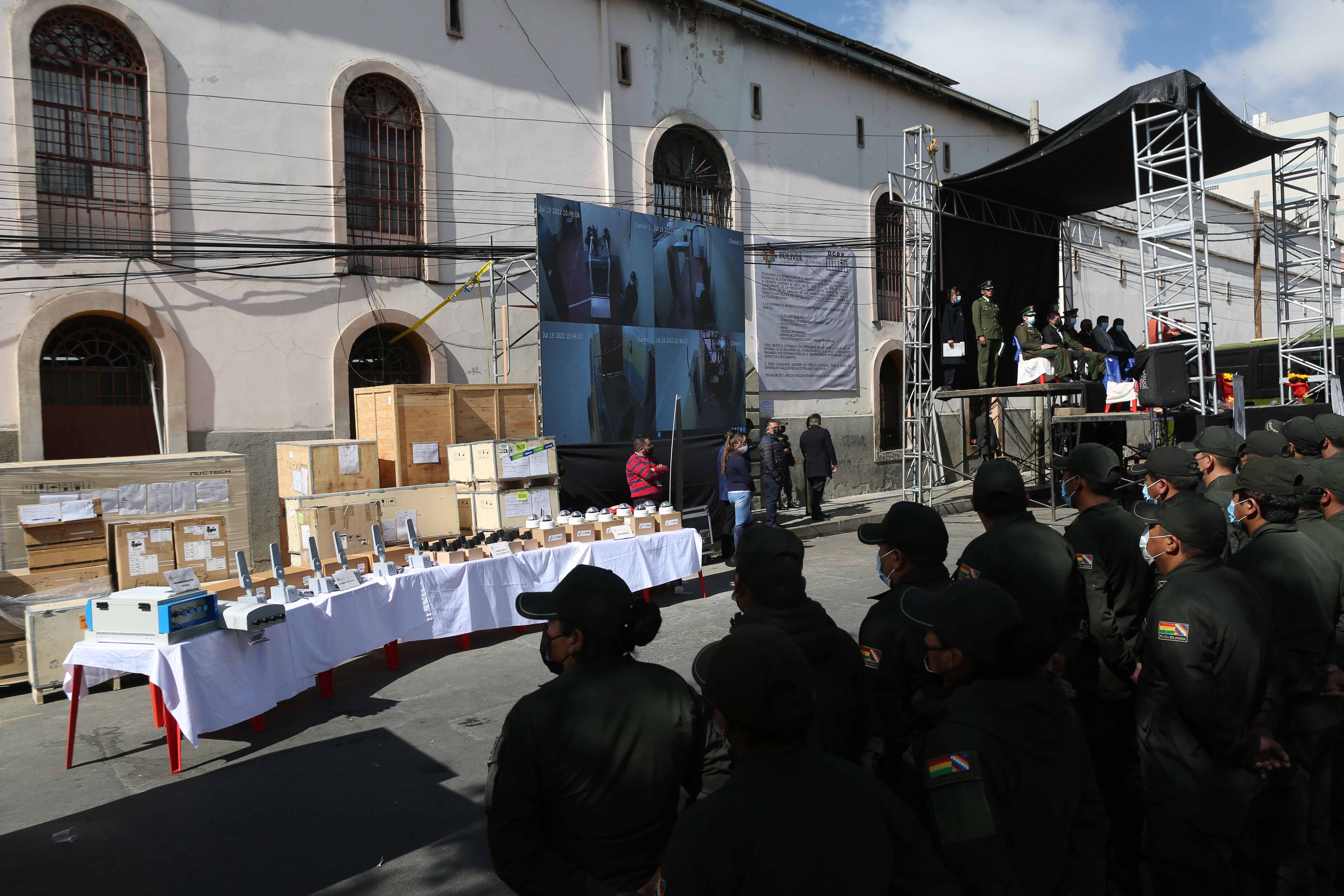 El ministro de Gobierno, Eduardo del Castillo, entregó equipamiento del proyecto Bol-110 para la seguridad penitenciaria nacional, en el penal de San Pedro, La Paz.Usuario ABIGalería Fotográfica 19 Julio 2022 Visto: 6516ShareTwittearshare with Whatsappshare with Telegram FOTOS:ABI/JOSUE CORTEZAnteriorSiguiente