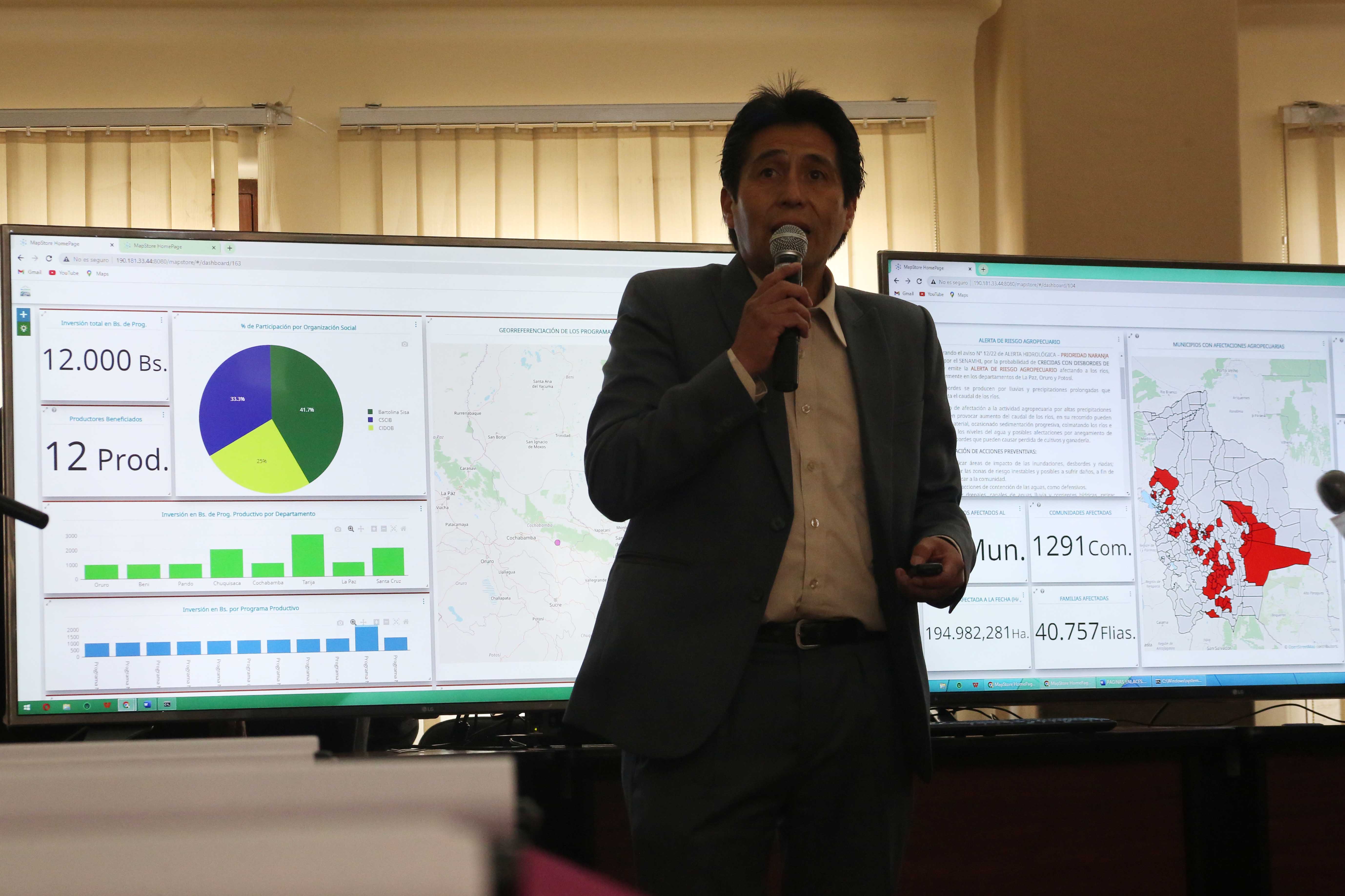 El Ministerio de Desarrollo Rural y Tierras y el Programa Mundial de Alimentos (PMA) presentaron los “Sistemas de Información para la Seguridad Alimentaria y Emergencias Agropecuarias”