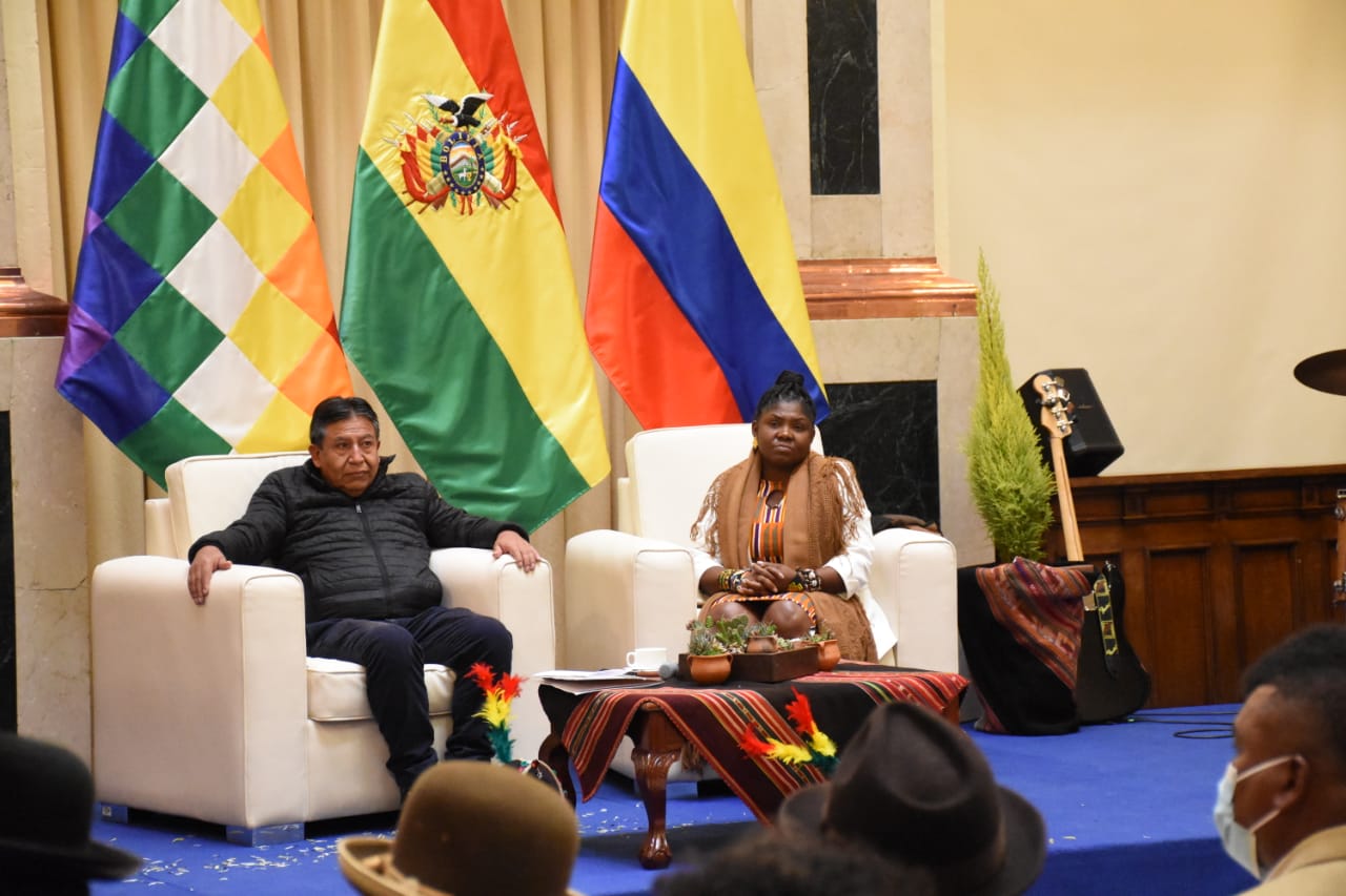 Encuentro entre el Vicepresidente de Bolivia, David Choquehuanca quien recibe la visita oficial de la Vicepresidenta electa de Colombia, Francia Márquez, en la Vicepresidencia del Estado Plurinacional