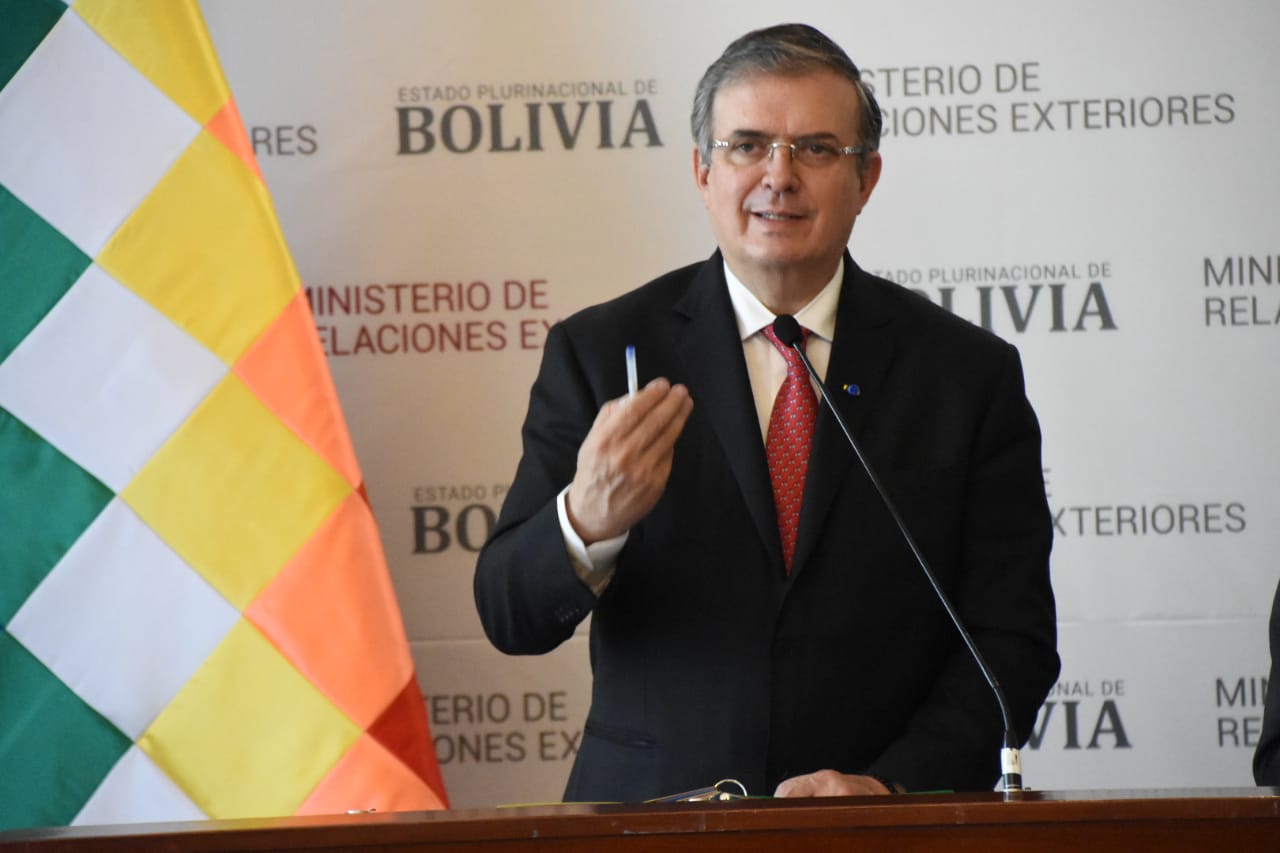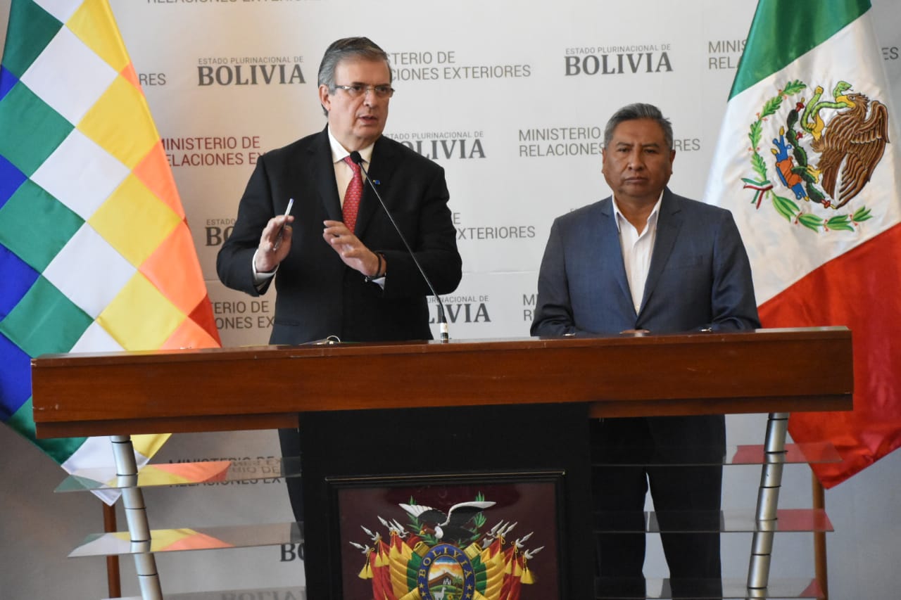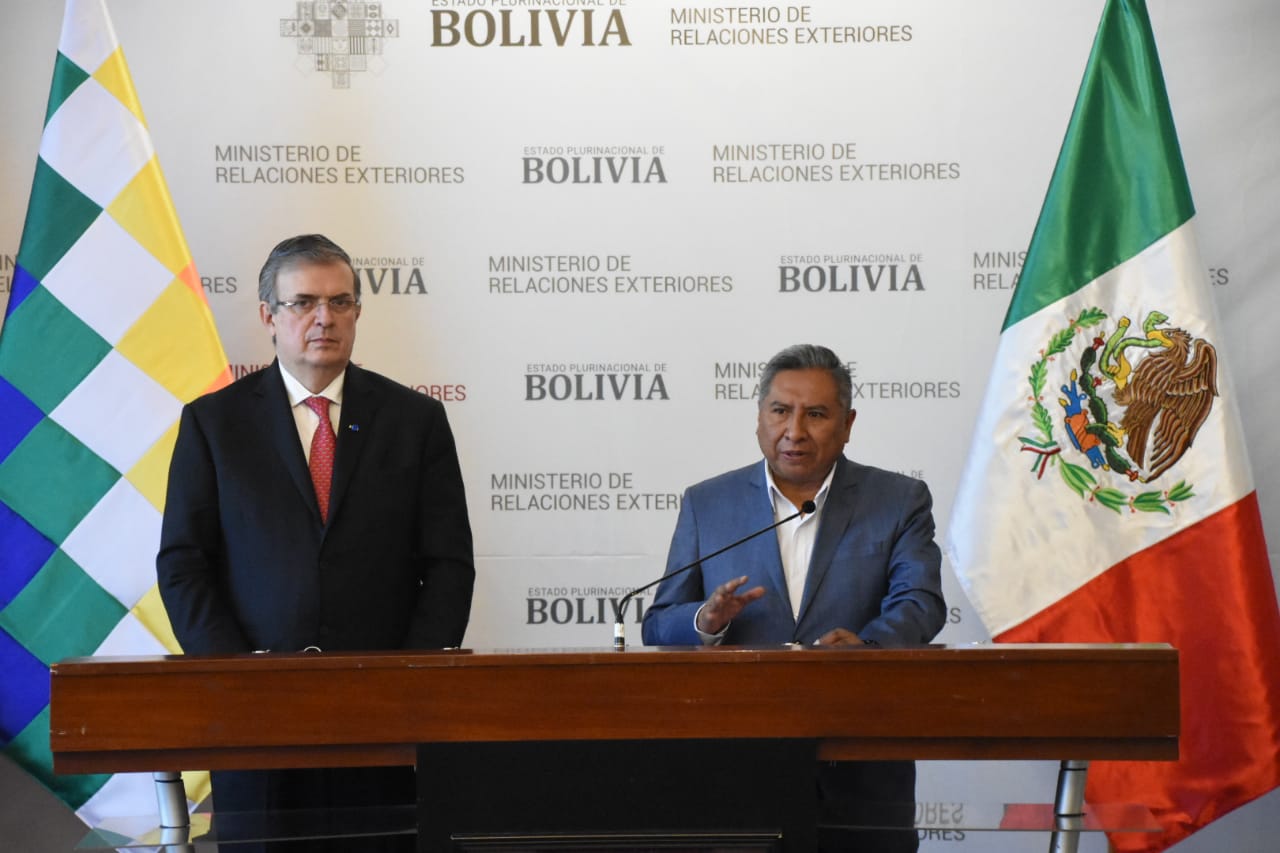 Conferencia de prensa del Ministro de Relaciones Exteriores, Rogelio Mayta y del Secretario de Relaciones Exteriores de los Estados Unidos Mexicanos Marcelo Ebrard Casaubon sobre su visita oficial a Bolivia