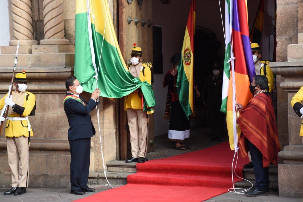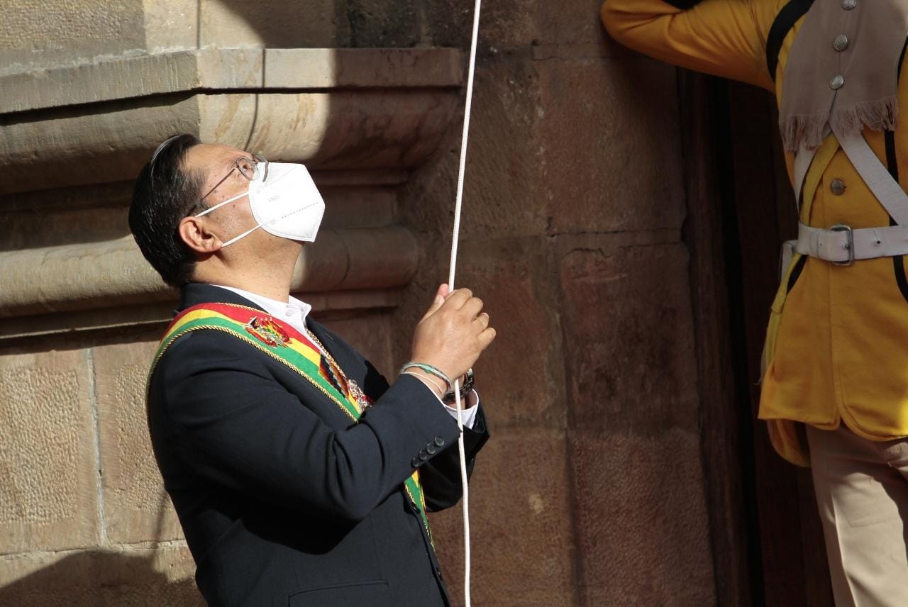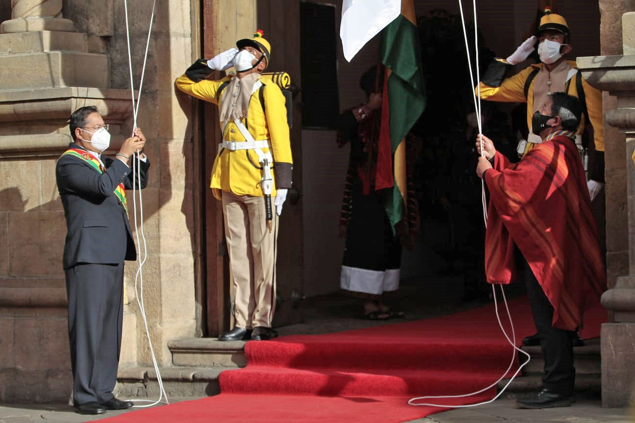 El Presidente Luis Arce realiza la iza de la bandera junto al vicepresidente David Choquehuanca, en los actos protocolares por los 197 años de independencia de Bolivia en la ciudad de SucreEnzo De LucaGalería Fotográfica 06 Agosto 2022 Visto: 4241ShareTwittearshare with Whatsappshare with Telegram AnteriorSiguiente