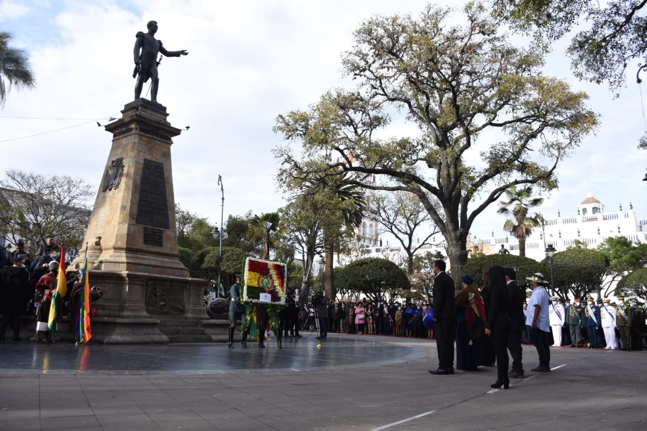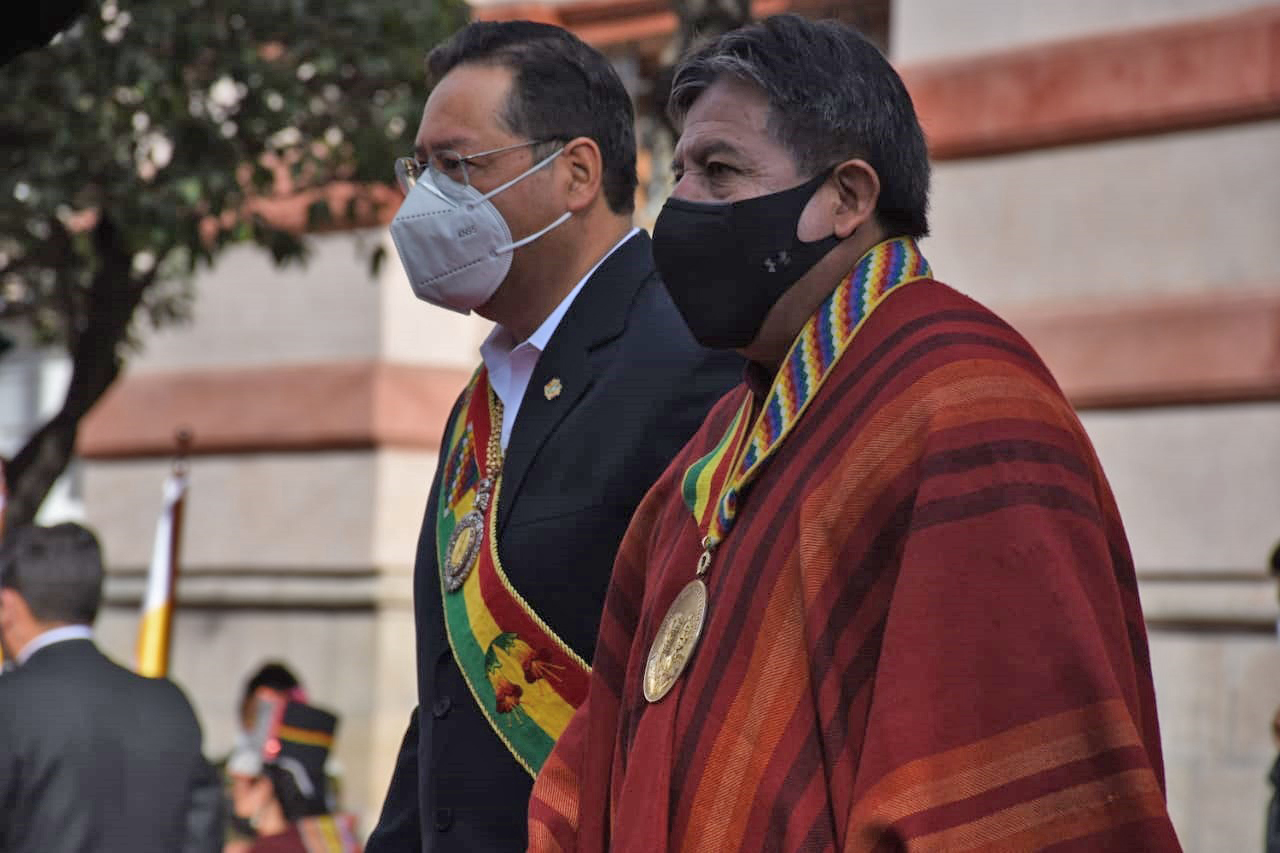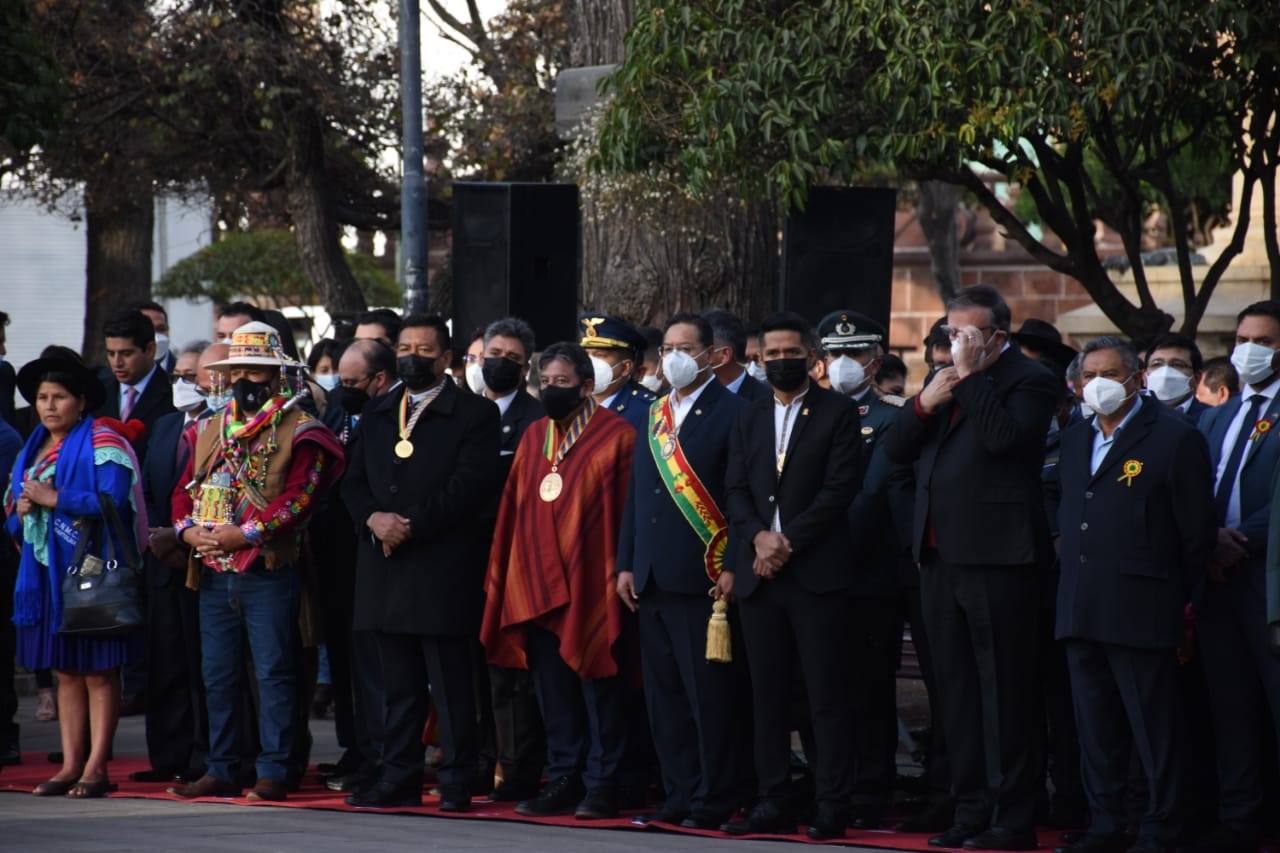 El Presidente Luis Arce realiza la iza de la bandera junto al vicepresidente David Choquehuanca, en los actos protocolares por los 197 años de independencia de Bolivia en la ciudad de SucreEnzo De LucaGalería Fotográfica 06 Agosto 2022 Visto: 4241ShareTwittearshare with Whatsappshare with Telegram AnteriorSiguiente