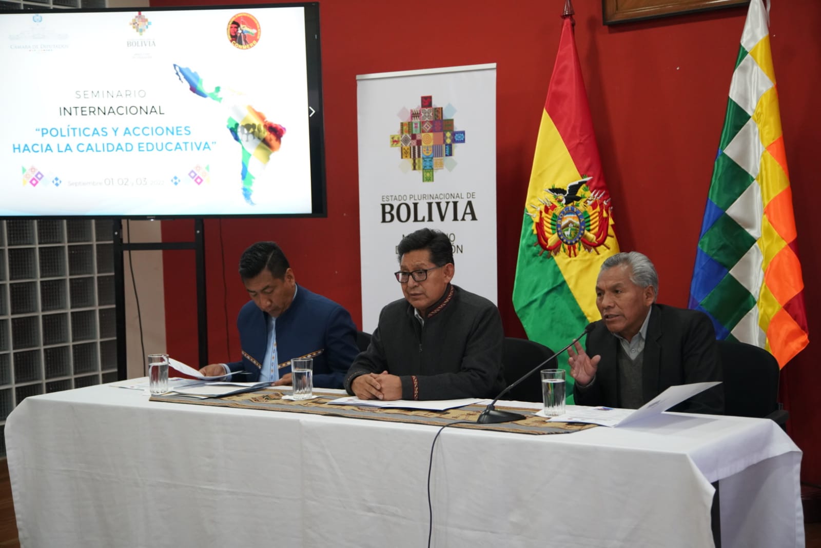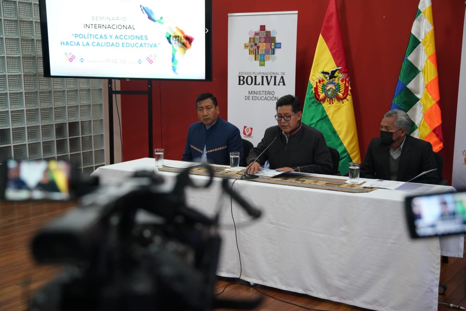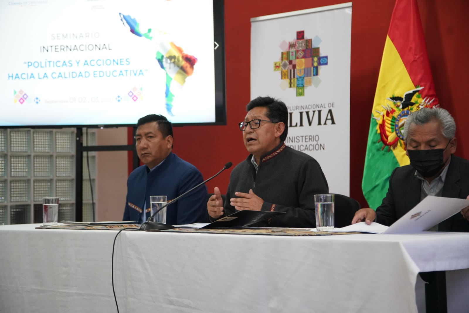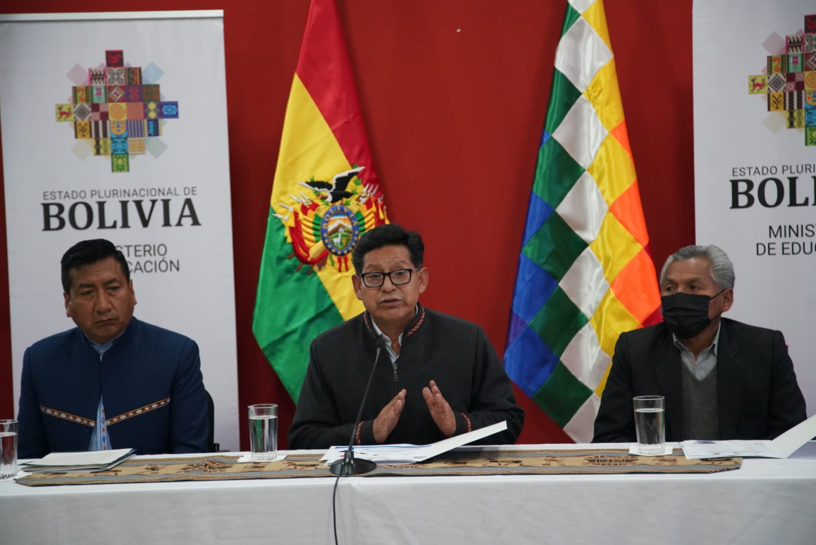 El Presidente de la Cámara de Diputados, Freddy Mamani Laura, ministro de Educación EdgarPary y ejecutivo de la Confederación Nacional de Maestros de Educación Rural Andrés Huayta en conferencia de prensaEnzo De LucaGalería Fotográfica 08 Agosto 2022 Visto: 4639ShareTwittearshare with Whatsappshare with Telegram AnteriorSiguiente