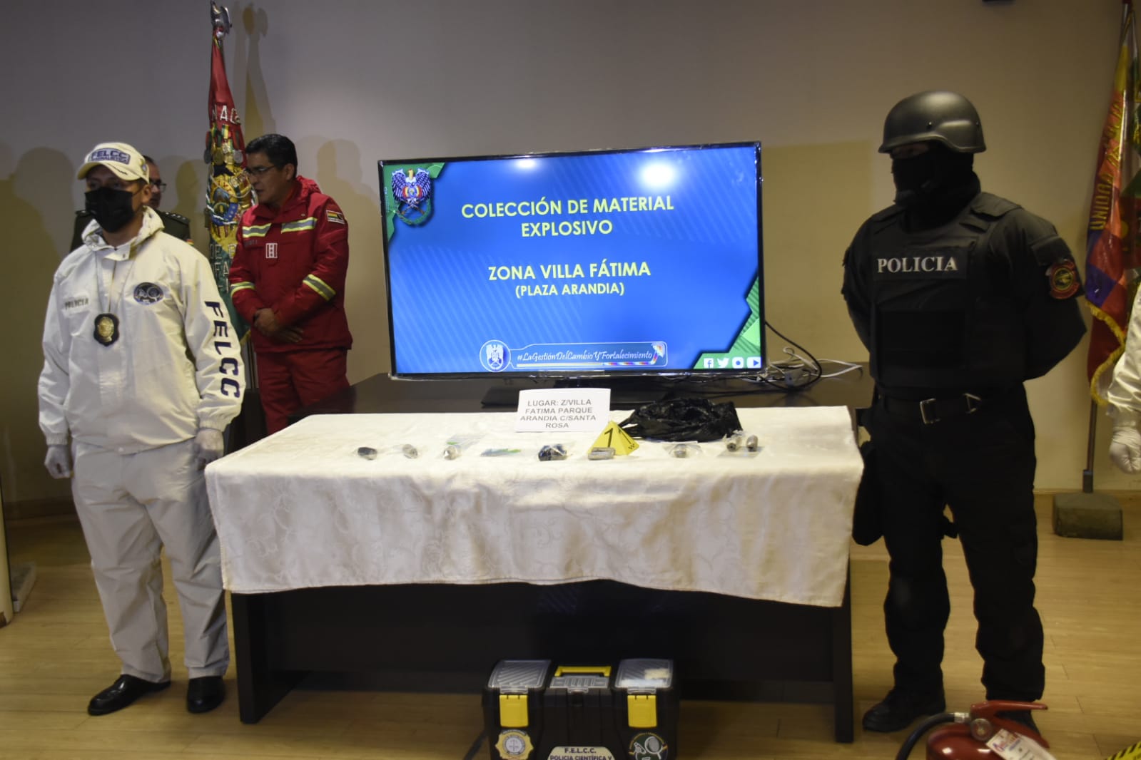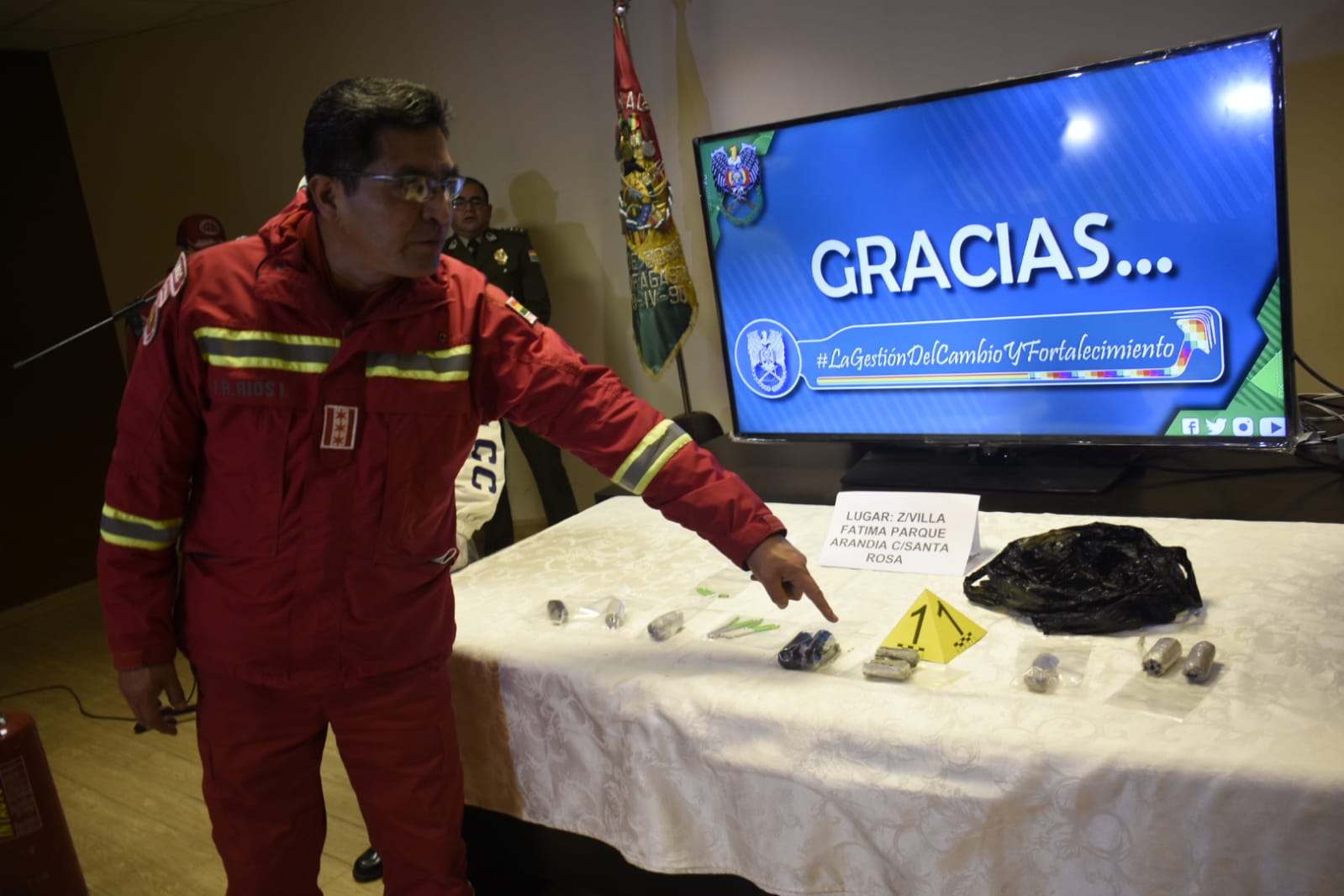 Director Nacional de Bomberos, Cnl. Jorge Ríos dio a conocer que se encontraron 9 artefactos explosivos en el parque Arándia de la zona Villa FátimaEnzo De LucaGalería Fotográfica 18 Agosto 2022 Visto: 6133ShareTwittearshare with Whatsappshare with Telegram Fotos Gonzalo JallasiAnteriorSiguiente