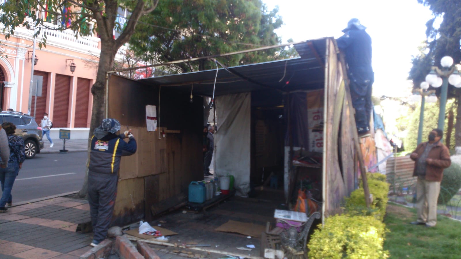 Retiro de casetas en el prado paceño luego de 10 años 4 meses de vigilia por verdad justicia y reparación luego de firma de un Acuerdo Nacional con el presidente Luis Arce CatacoraEnzo De LucaGalería Fotográfica 21 Agosto 2022 Visto: 6059ShareTwittearshare with Whatsappshare with Telegram Fotos Gonzalo JallasiAnteriorSiguiente