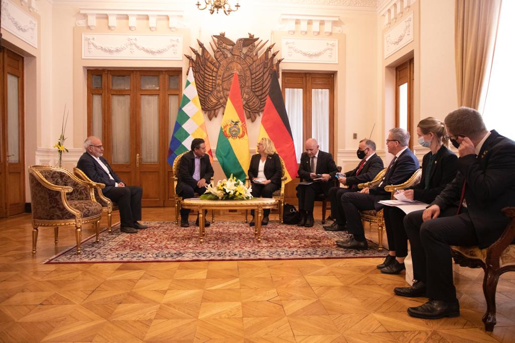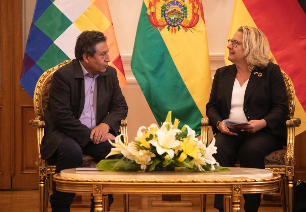 El Vicepresidente del Estado Plurinacional de Bolivia, Jilata David Choquehuanca Céspedes, recibe a la ministra Federal de Cooperación Económica y Desarrollo de Alemania, Svenja SchulzeEnzo De LucaGalería Fotográfica 23 Agosto 2022 Visto: 5691ShareTwittearshare with Whatsappshare with Telegram AnteriorSiguiente