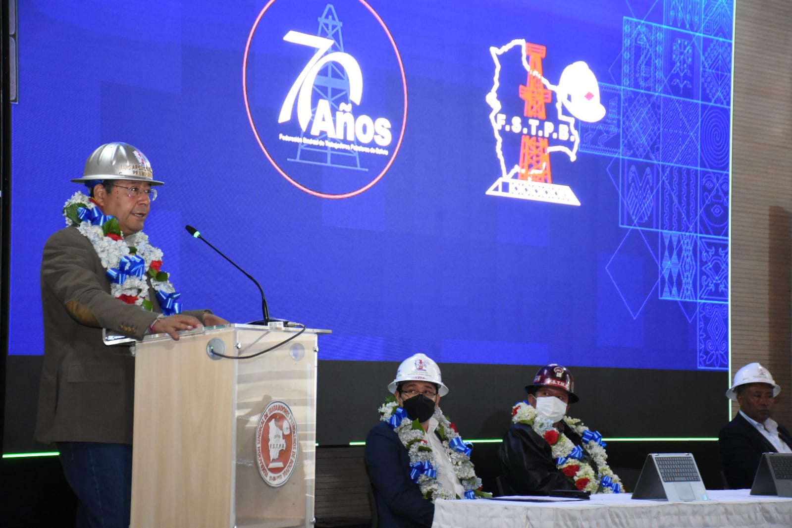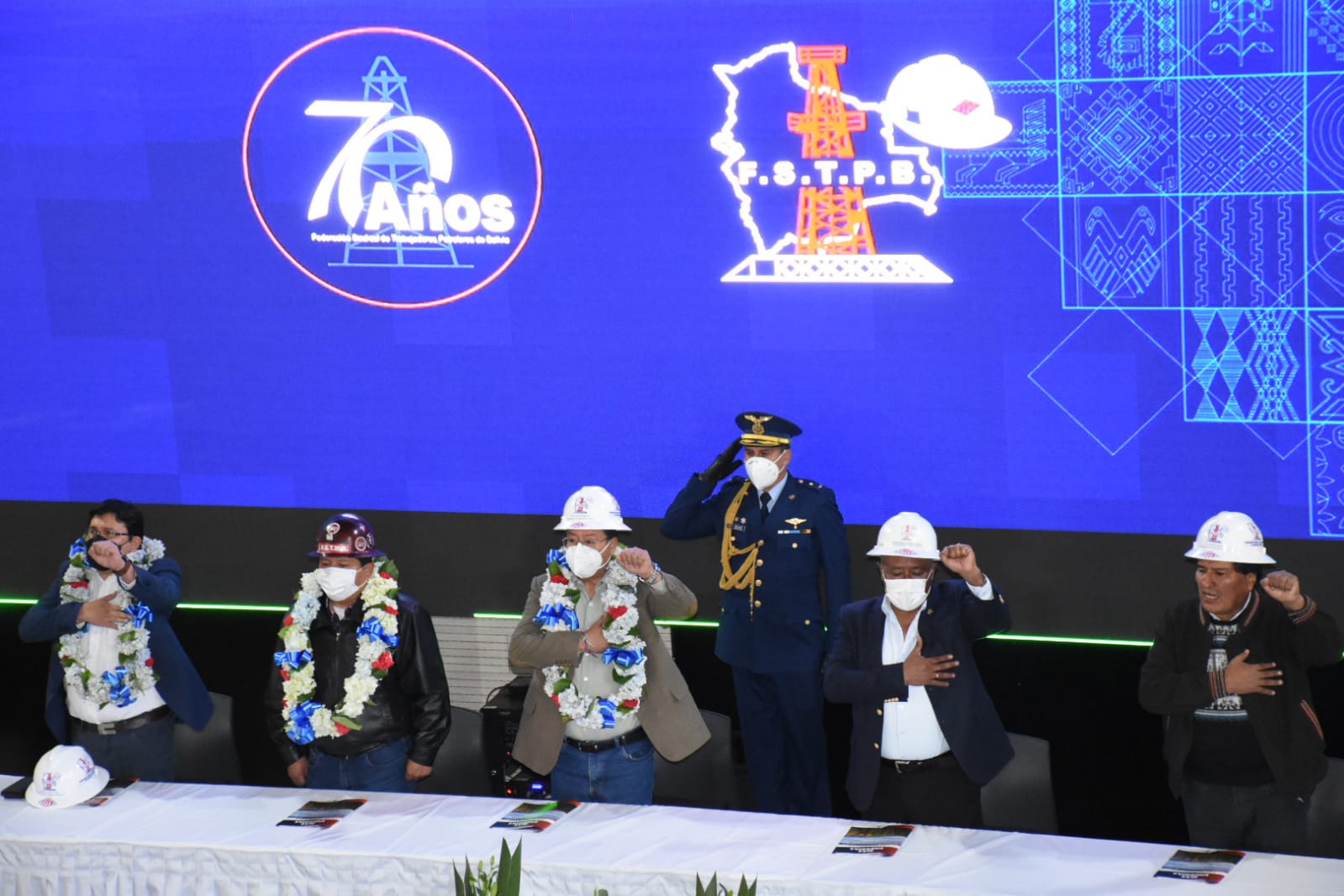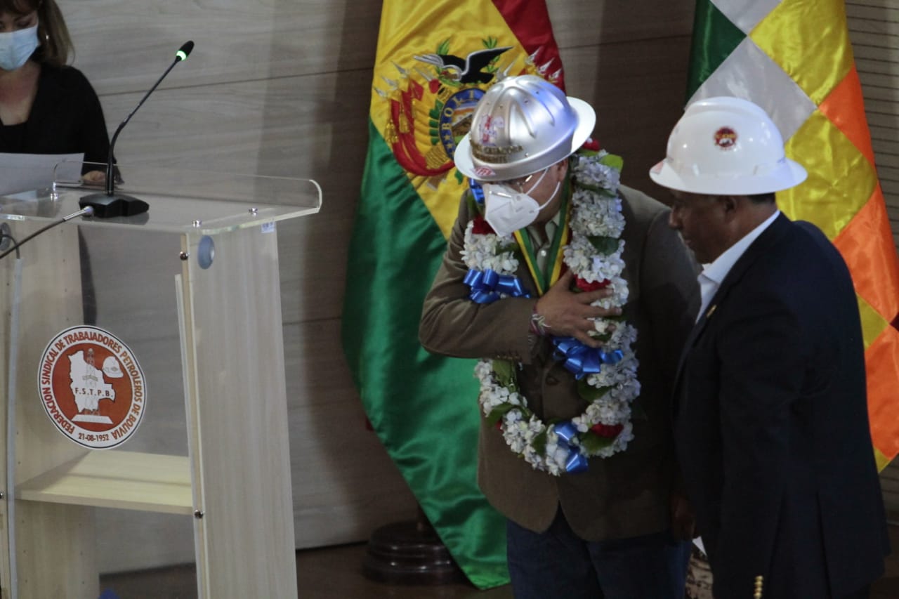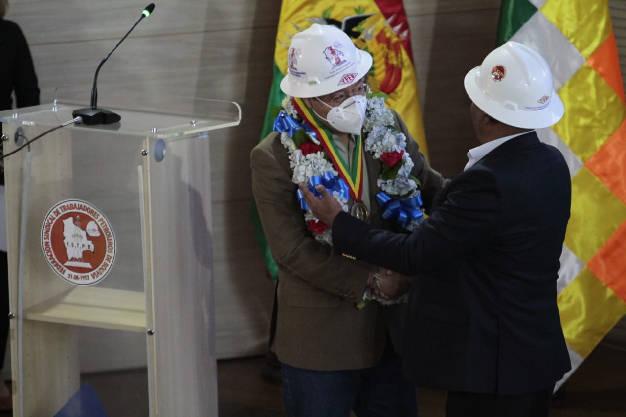 Acto de conmemoración del 70 aniversario de fundación de la Federación Sindical de Trabajadores Petroleros de Bolivia (FSTPB), con la presencia del Presidente Luis Arce CatacoraEnzo De LucaGalería Fotográfica 26 Agosto 2022 Visto: 7222ShareTwittearshare with Whatsappshare with Telegram Fotos Jorge Mamani / Josue CortezAnteriorSiguiente
