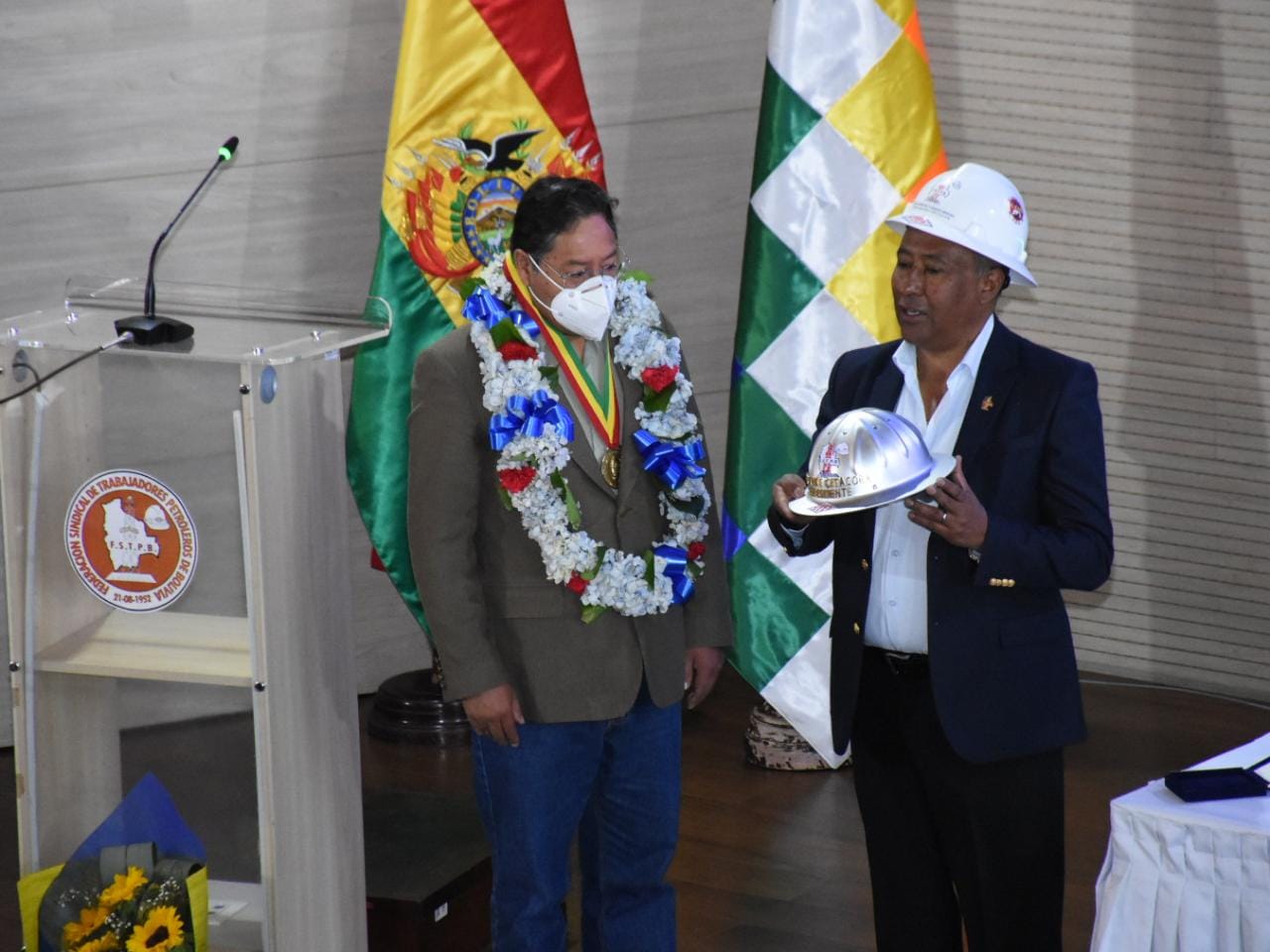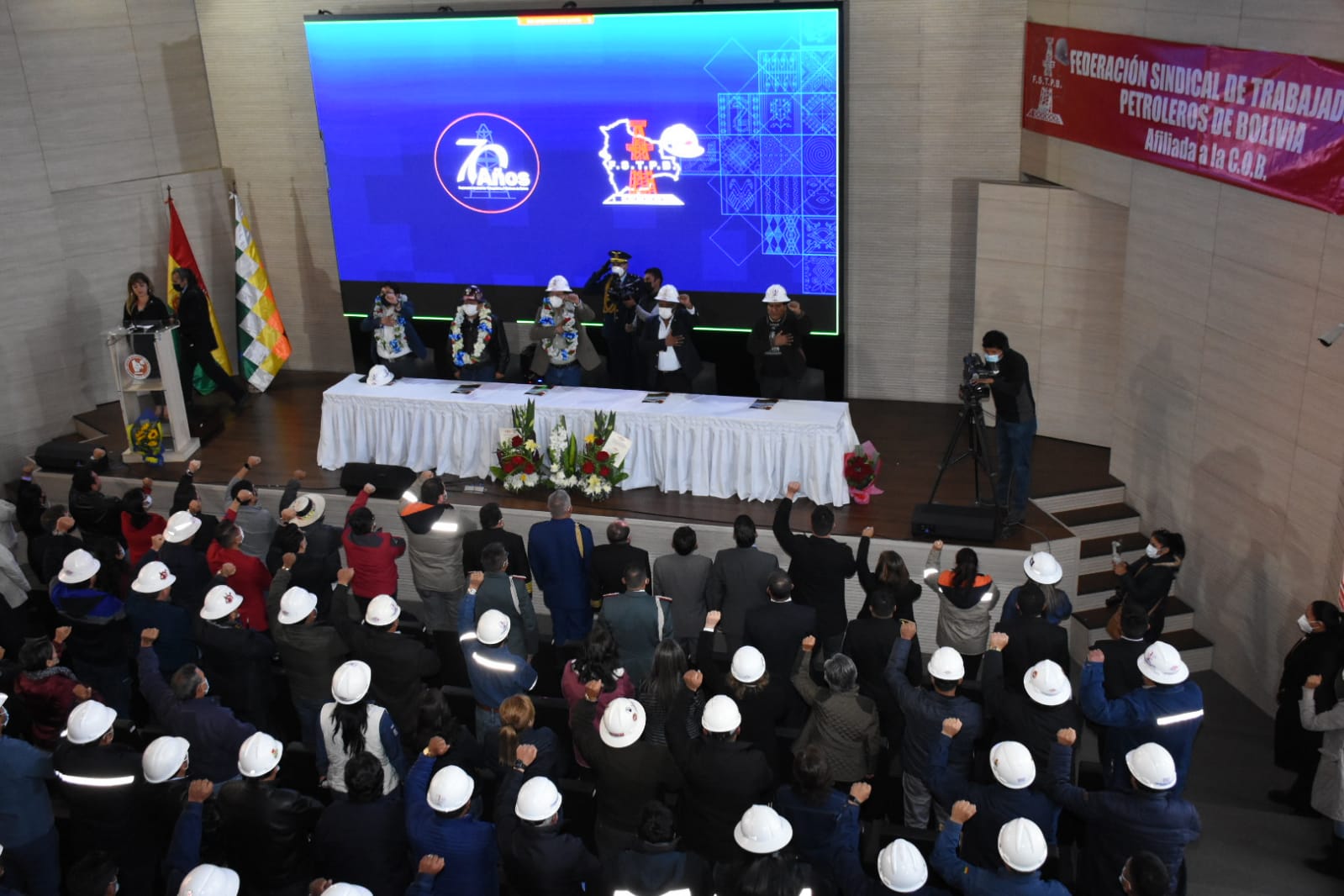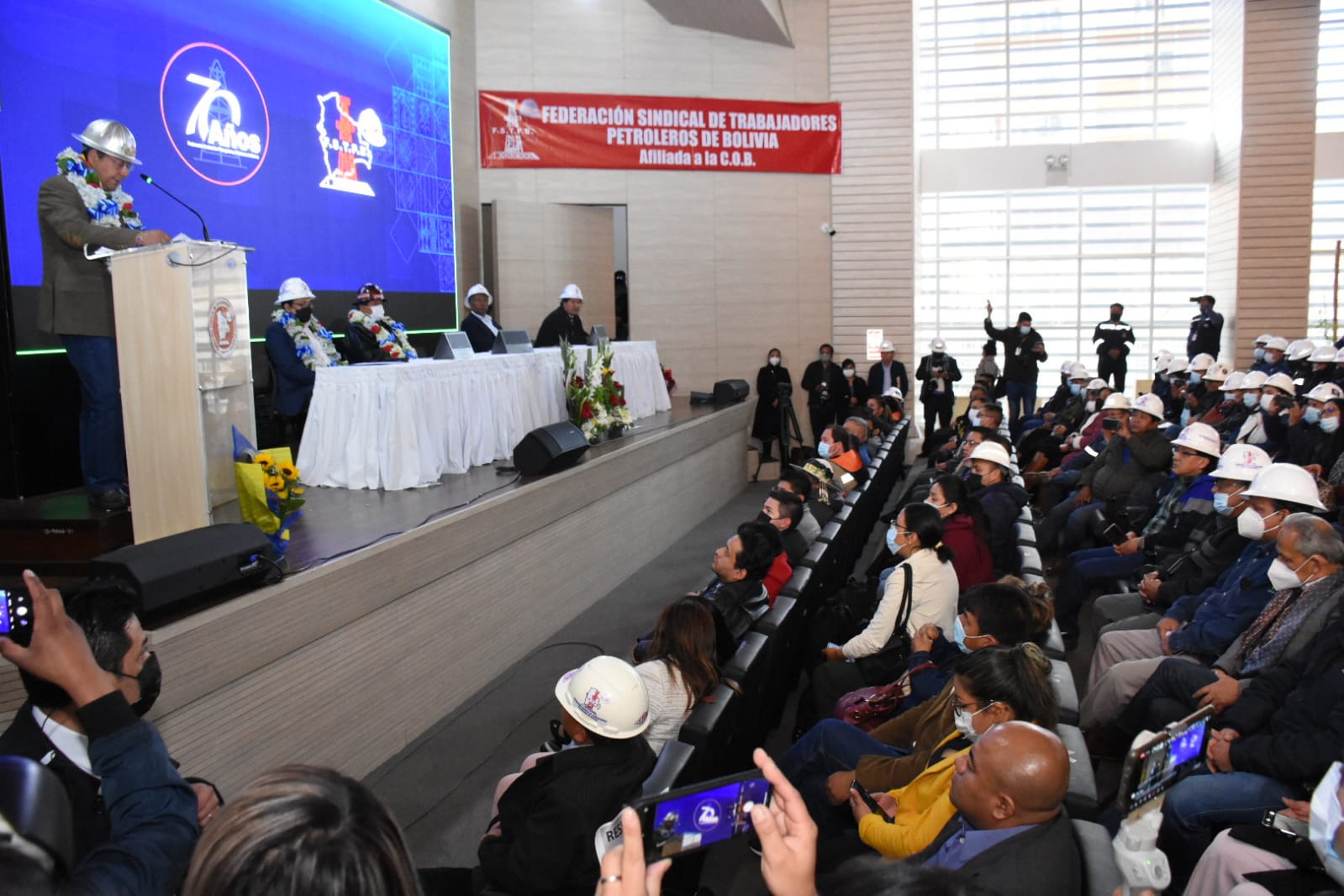 Acto de conmemoración del 70 aniversario de fundación de la Federación Sindical de Trabajadores Petroleros de Bolivia (FSTPB), con la presencia del Presidente Luis Arce CatacoraEnzo De LucaGalería Fotográfica 26 Agosto 2022 Visto: 7222ShareTwittearshare with Whatsappshare with Telegram Fotos Jorge Mamani / Josue CortezAnteriorSiguiente