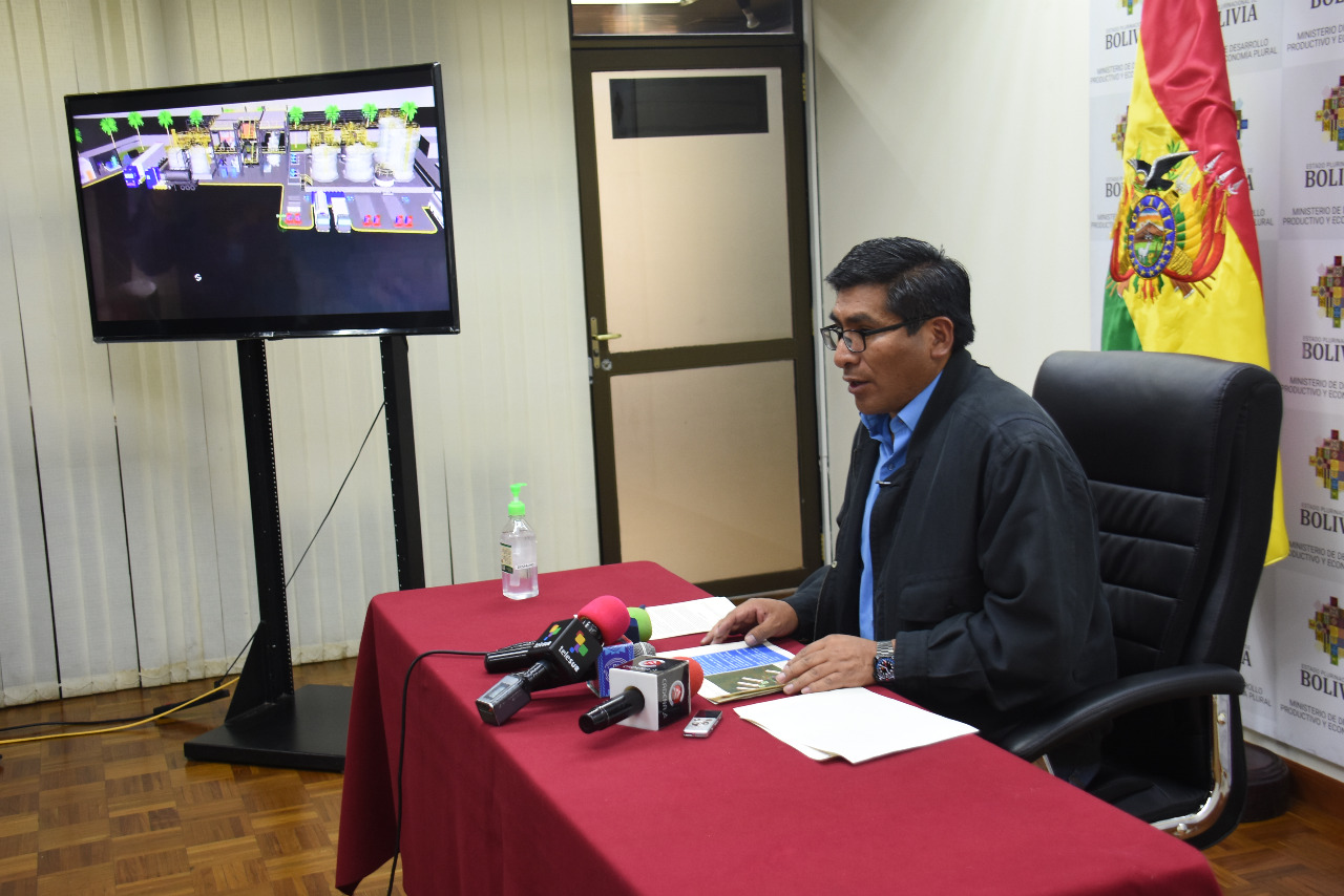 El ministro de Desarrollo Productivo y Economía Plural, Nestor Huanca informa que se aprobó el D.S. 4786 que crea la empresa Industria Boliviana de Aceites Ecológicos – IBAEEnzo De LucaGalería Fotográfica 26 Agosto 2022 Visto: 8276ShareTwittearshare with Whatsappshare with Telegram Fotos Gonzalo JallasiAnteriorSiguiente