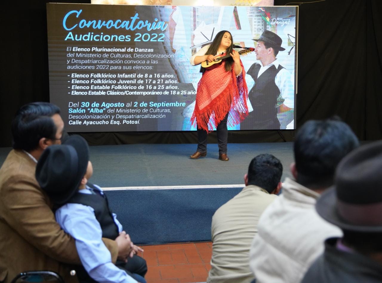 Lanzamiento de convocatoria para audiciones del Elenco Plurinacional de Danzas y Orquesta Plurinacional de Charangos y Guitarras por el Ministerio de Culturas, Descolonización y Despatriarcalización.