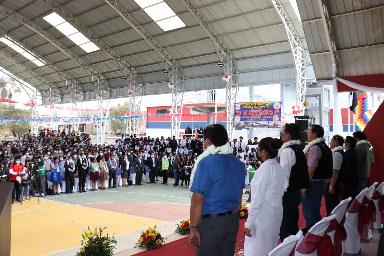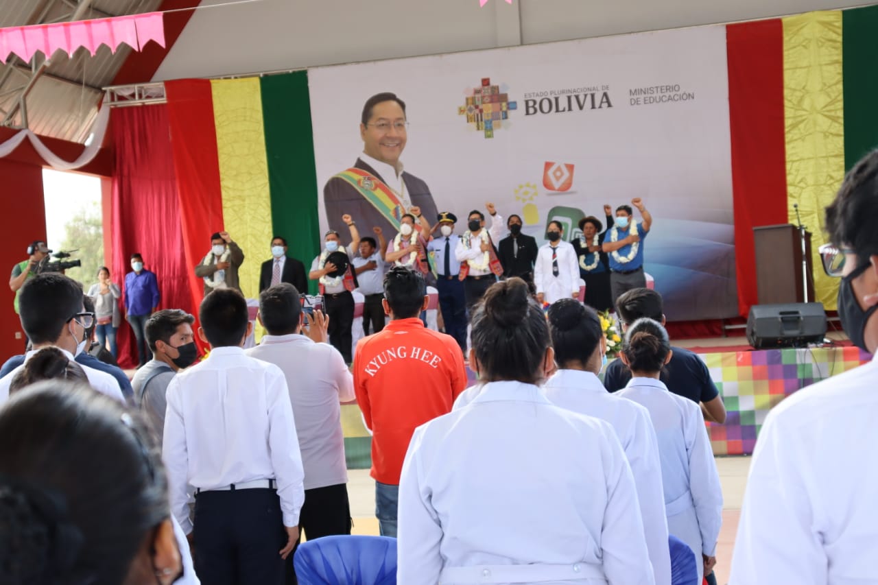 Entrega de tres unidades educativas en Quillacollo, con presencia del presidente del Estado Plurinacional de Bolivia Luis Arce CatacoraEnzo De LucaGalería Fotográfica 03 Septiembre 2022 Visto: 7660ShareTwittearshare with Whatsappshare with Telegram Fotos: Comunicación PresidencialAnteriorSiguiente