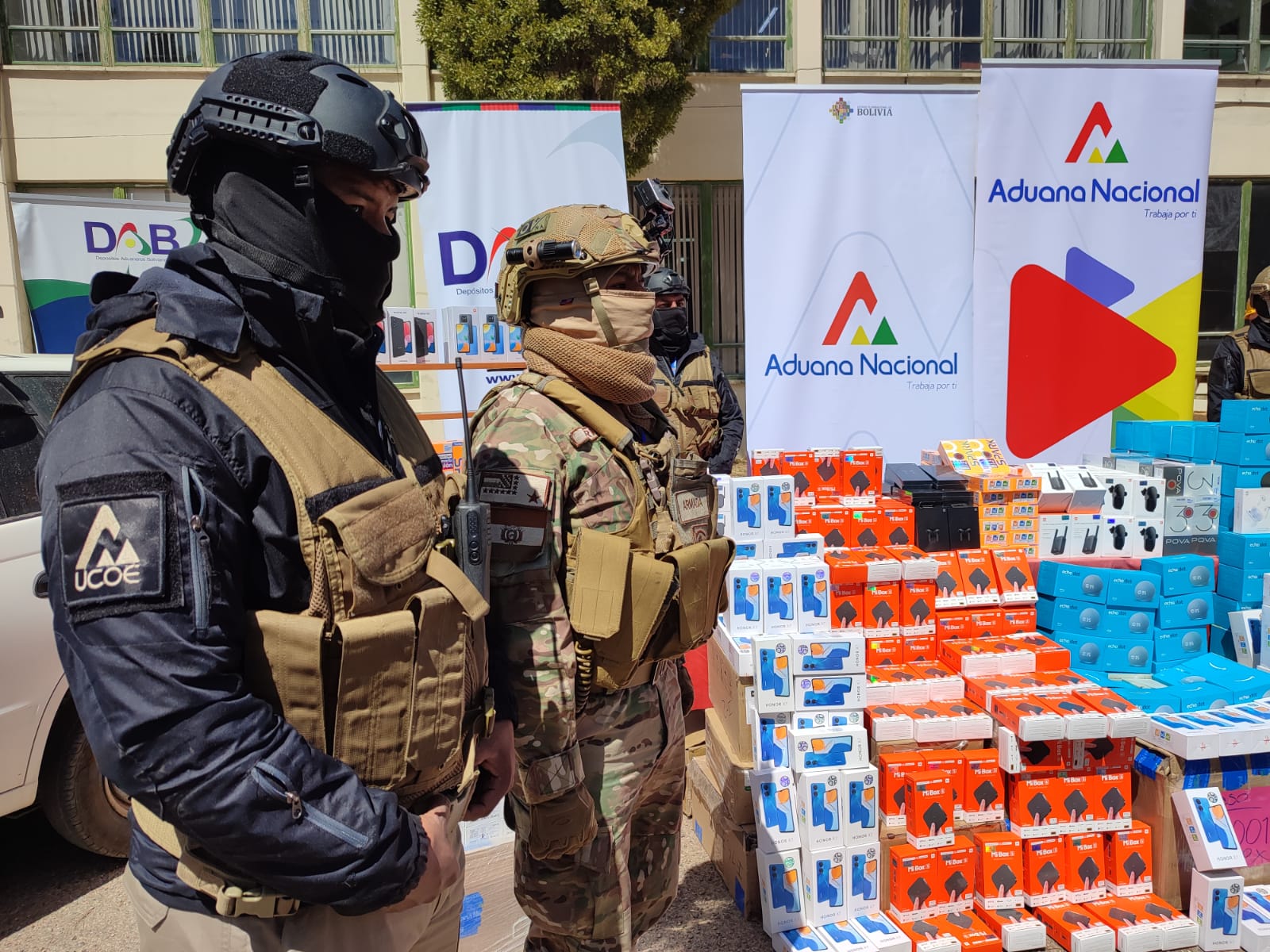 Aduana Nacional comisó en cuatro operativos estratégicos un total de 2.727 celulares, impresoras, parlantes y accesorios mercancía proveniente de Chile, valorada en más de 800.000 bolivianosEnzo De LucaGalería Fotográfica 08 Septiembre 2022 Visto: 7213ShareTwittearshare with Whatsappshare with Telegram AnteriorSiguiente