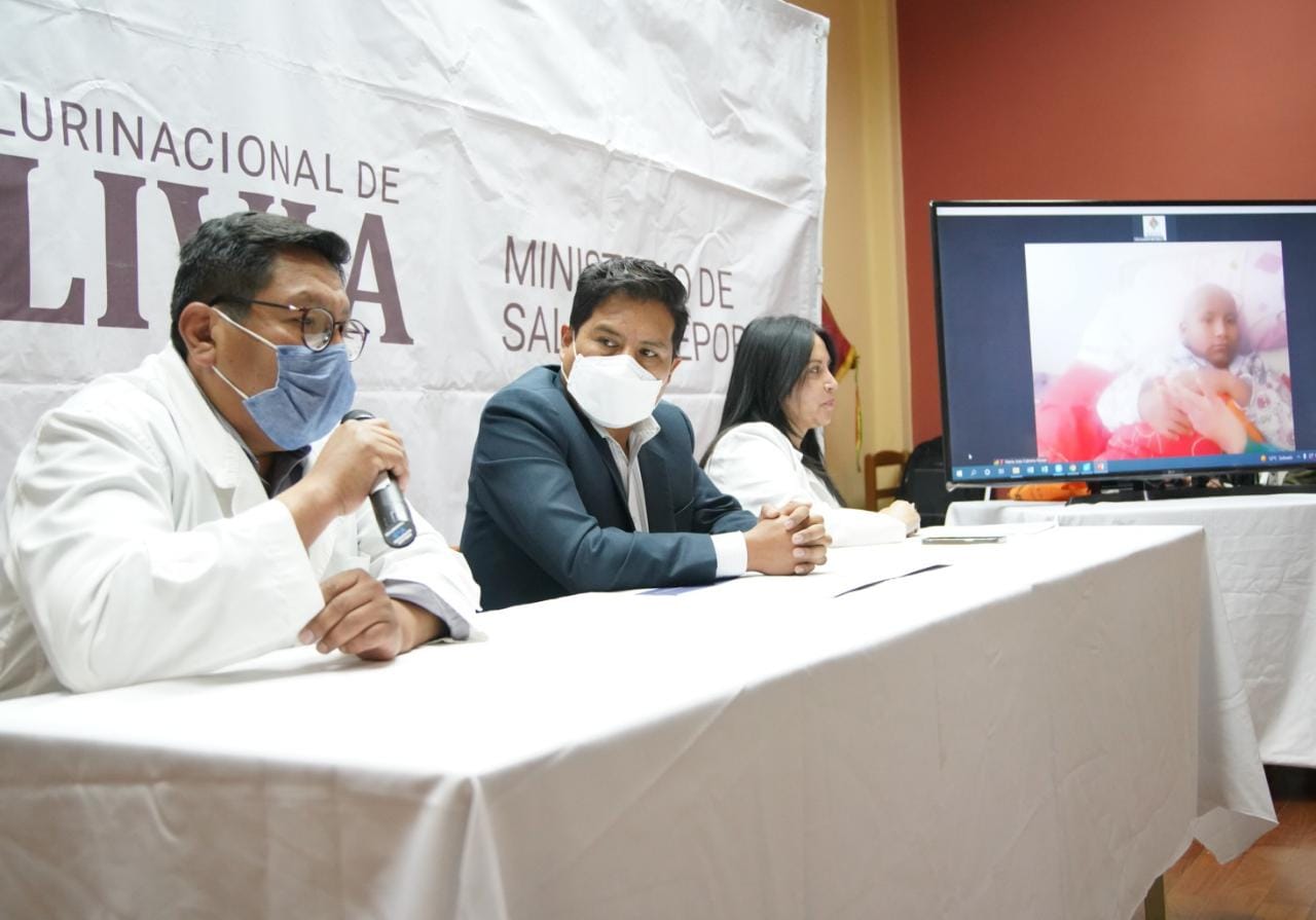 Dr. Jeyson Auza, Ministro de Salud y Deportes, en acto por el alta del niño Jhoel Ajnota Montaño y el reconocimiento a profesionales que intervinieron en el primer trasplante pediátrico alogenico de medula ósea en Bolivia