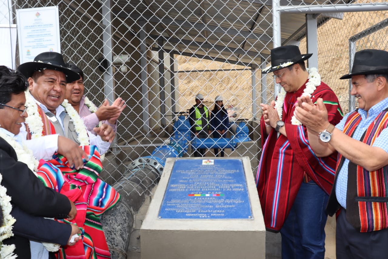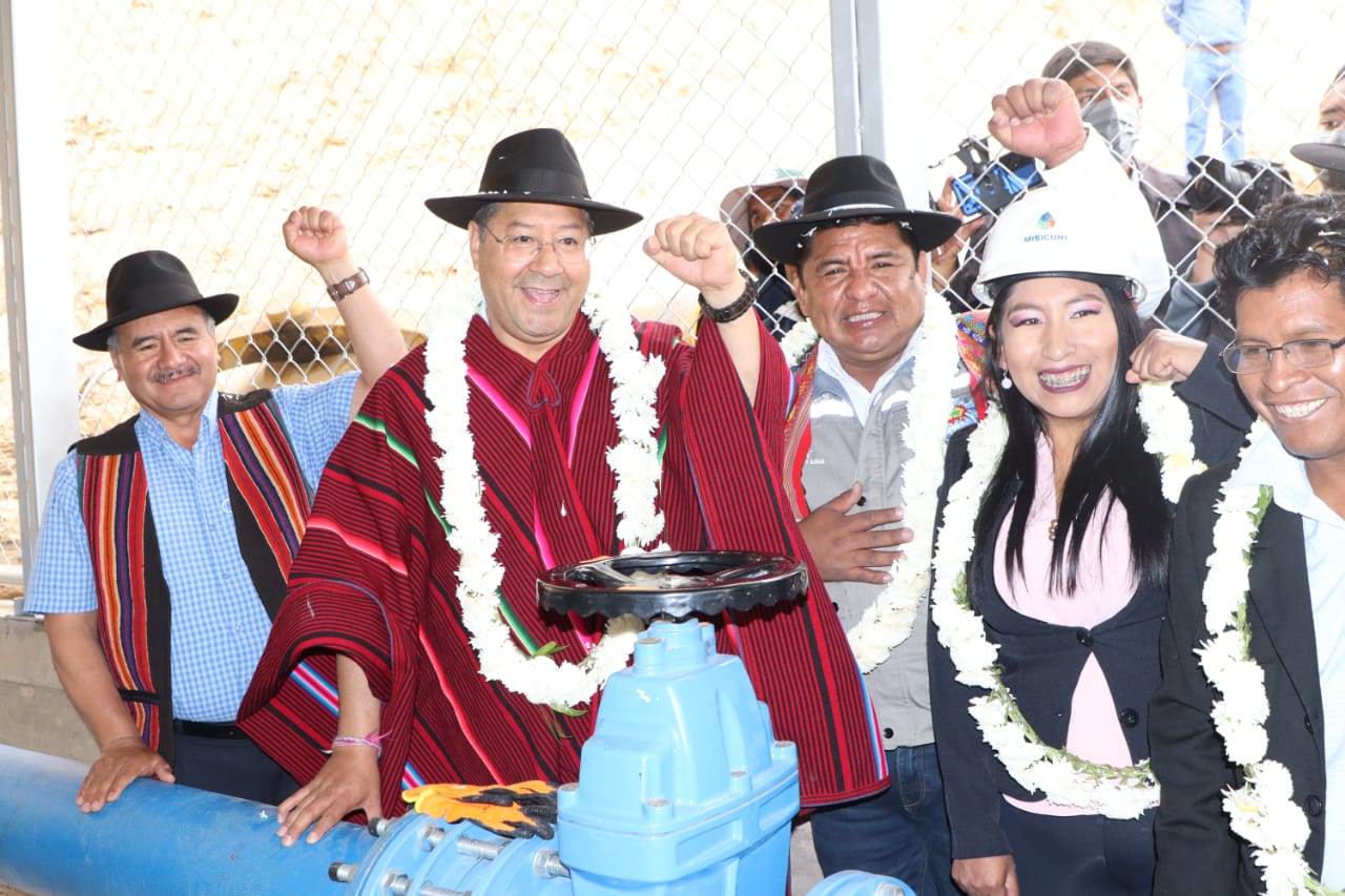 Presidente Luis Arce Catacora inaugura la construcción de la aducción 2 PTAP en Primero de Mayo, Zona Sud, Cochabamba (2 de 2)Enzo De LucaGalería Fotográfica 13 Septiembre 2022 Visto: 6091ShareTwittearshare with Whatsappshare with Telegram Fotos: Comunicación PresidencialAnteriorSiguiente