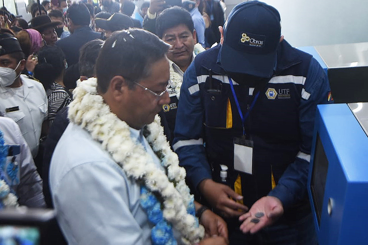 Inauguración del Tren Metropolitano de Cochabamba por el presidente, Luis Arce Catacora, con la entrega de las líneas Roja y Verde (1 de 2)Enzo De LucaGalería Fotográfica 13 Septiembre 2022 Visto: 6462ShareTwittearshare with Whatsappshare with Telegram Fotos: Ron SchuettAnteriorSiguiente