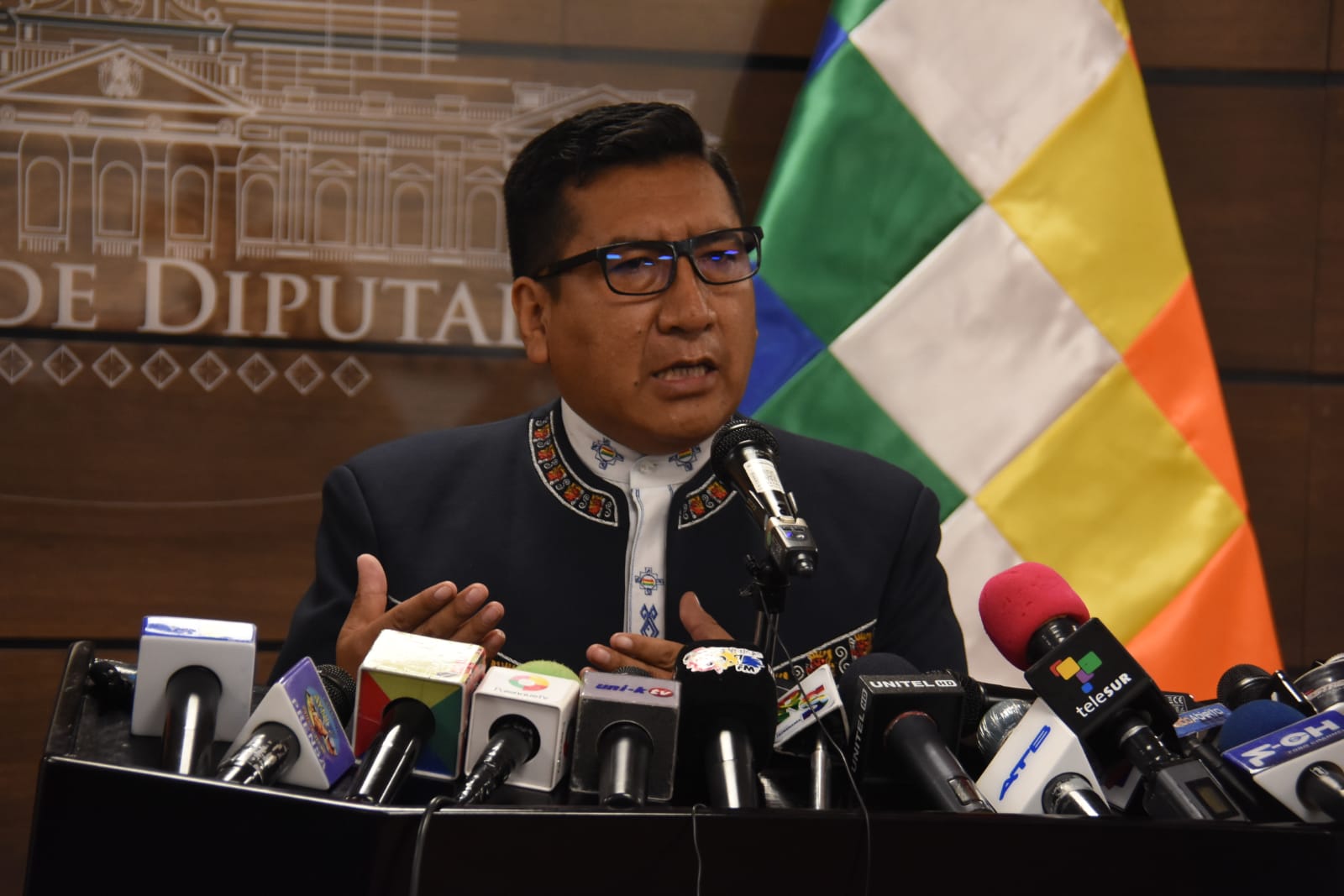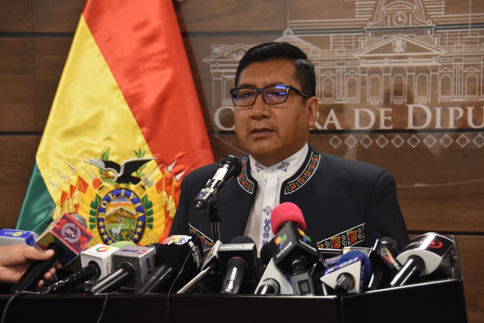 Presidente de la Cámara de Diputados de la Asamblea Legislativa Plurinacional de Bolivia, Freddy Mamani, en conferencia de prensaEnzo De LucaGalería Fotográfica 15 Septiembre 2022 Visto: 6744ShareTwittearshare with Whatsappshare with Telegram Fotos Gonzalo JallasiAnteriorSiguiente