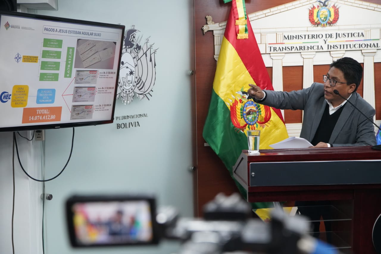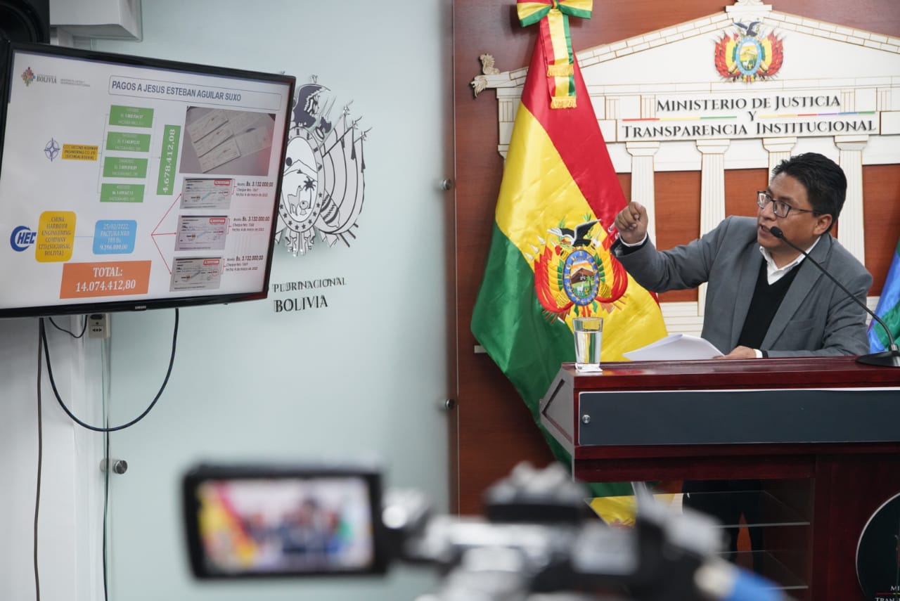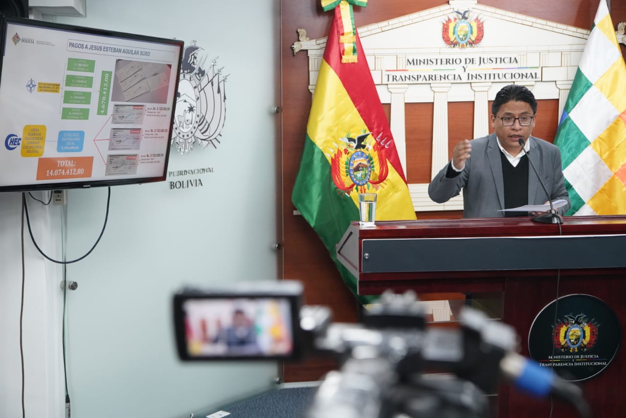 El Ministro de Justicia y Transparencia Institucional, Iván Lima Magne, en conferencia de prensa informa respecto a la corrupción en la ABCEnzo De LucaGalería Fotográfica 15 Septiembre 2022 Visto: 7324ShareTwittearshare with Whatsappshare with Telegram Fotos: Jorge Mamani AnteriorSiguiente