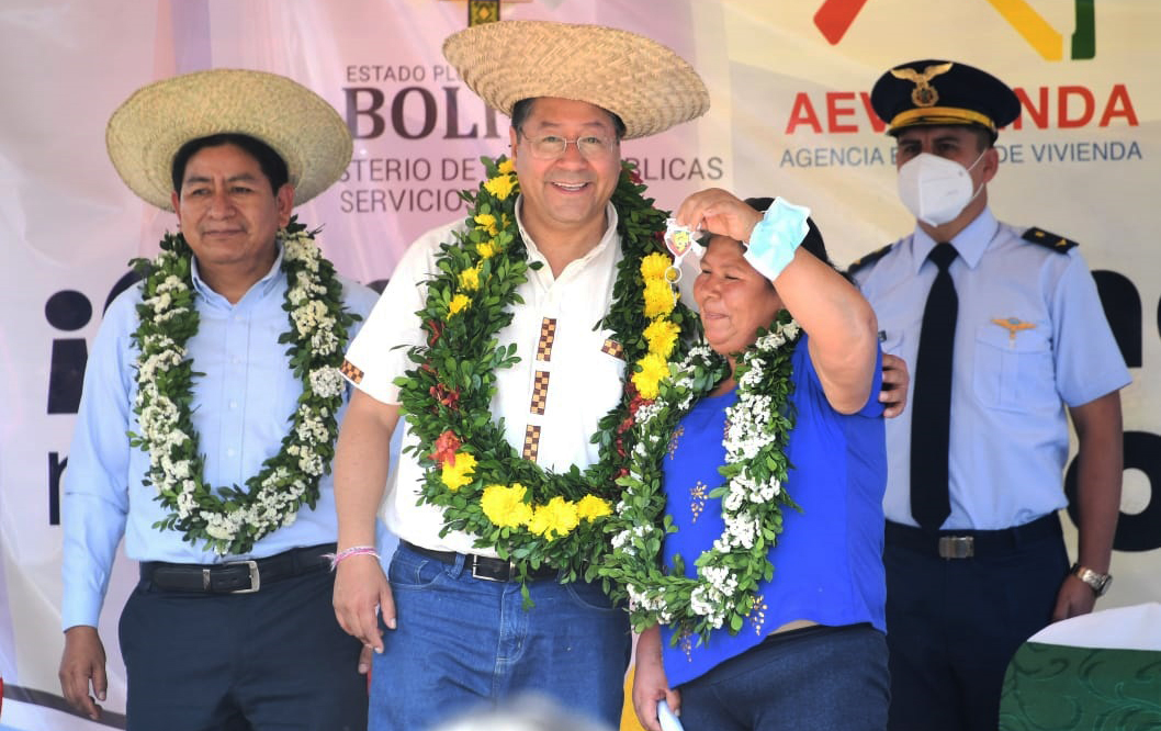 El Presidente, Luis Arce Catacora, hace entrega de viviendas sociales en el municipio de Montero, departamento de Santa CruzEnzo De LucaGalería Fotográfica 16 Septiembre 2022 Visto: 7833ShareTwittearshare with Whatsappshare with Telegram Fotos: Josué CortézAnteriorSiguiente