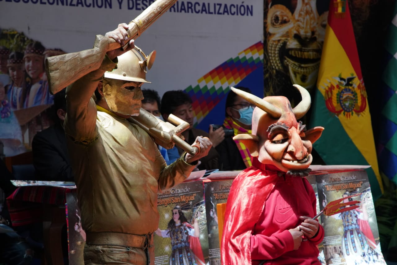 Lanzamiento de la festividad religiosa y cultural en honor a San Miguel Arcángel, en el atrio de las Culturas del Ministerio de Culturas, Descolonización y DespatriarcalizaciónEnzo De LucaGalería Fotográfica 20 Septiembre 2022 Visto: 5366ShareTwittearshare with Whatsappshare with Telegram Fotos: Jorge MamaniAnteriorSiguiente