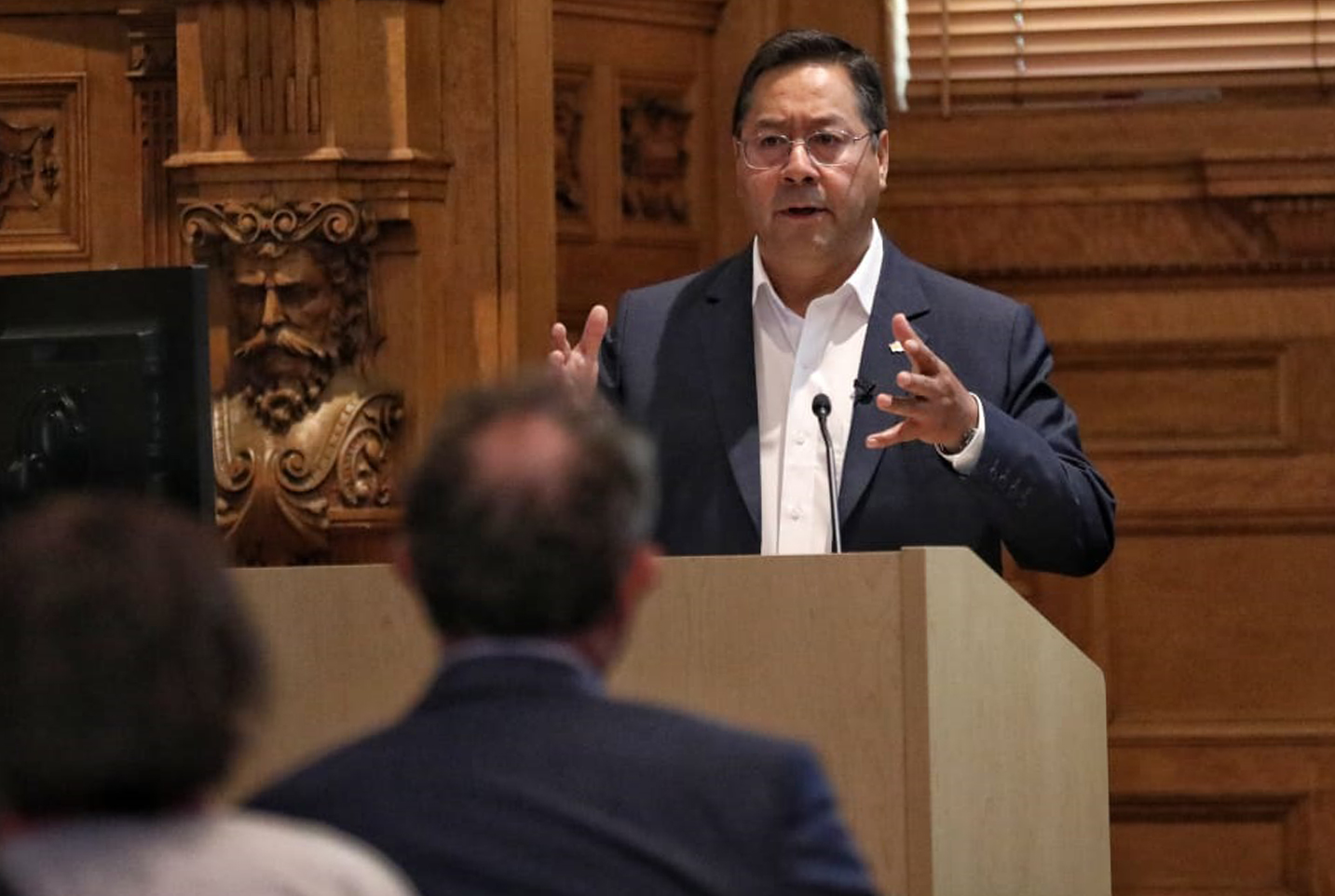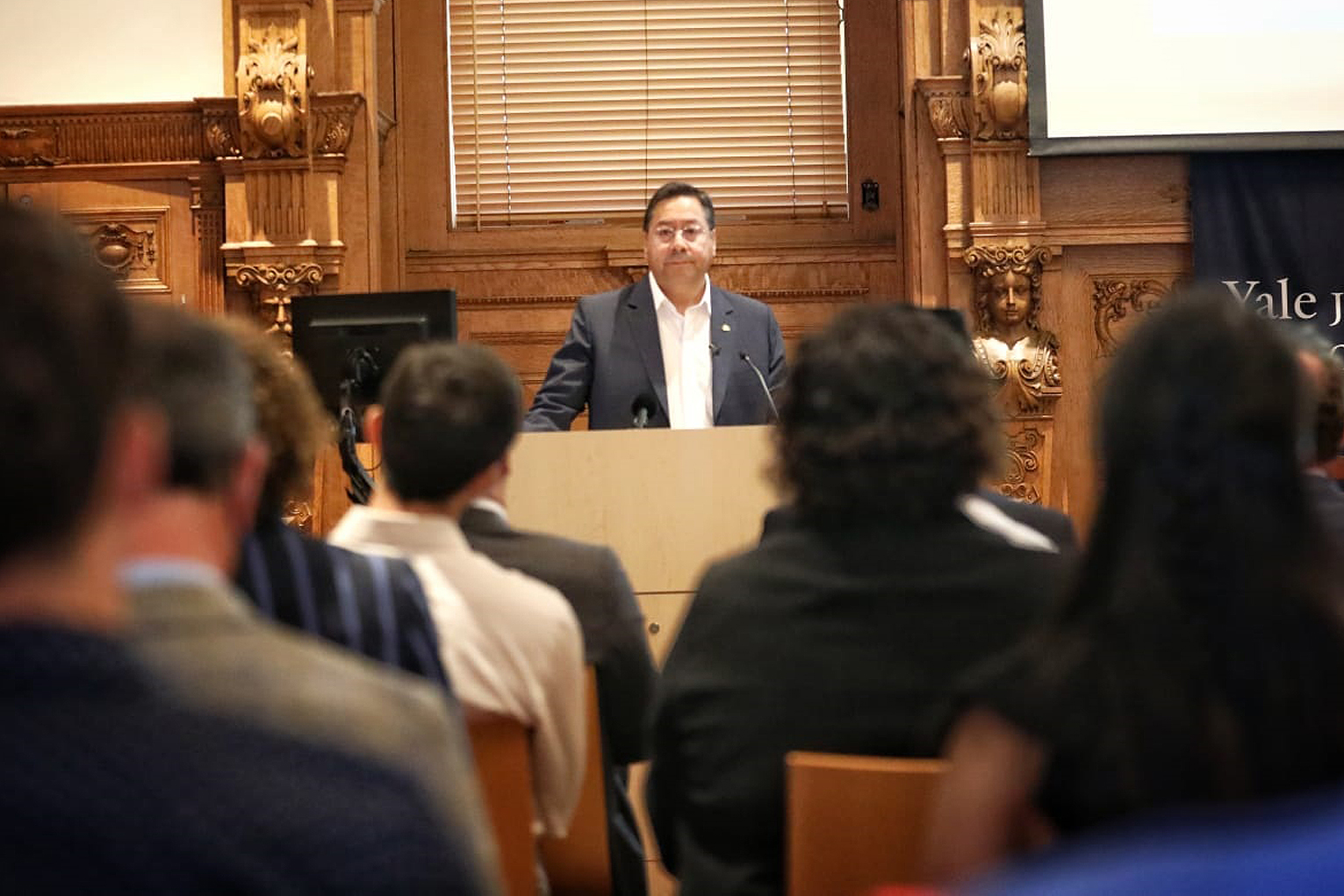 El presidente, Luis Arce Catacora, dicta la conferencia magistral "Economías Emergentes en América Latina: Modelo Económico Boliviano", en la Universidad de Yale, New Haven, EUAEnzo De LucaGalería Fotográfica 21 Septiembre 2022 Visto: 5255ShareTwittearshare with Whatsappshare with Telegram Fotos: Comunicación PresidencialAnteriorSiguiente
