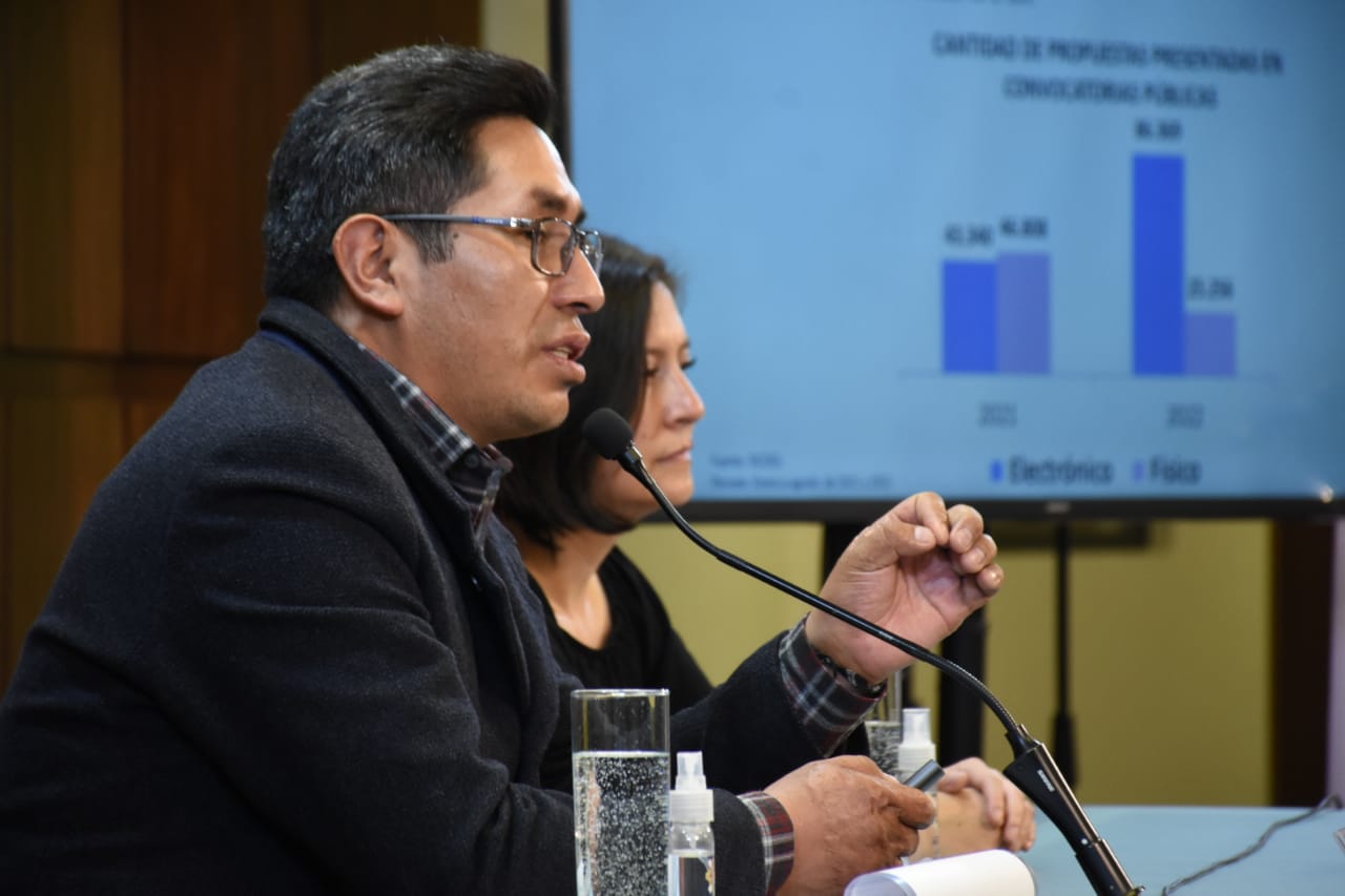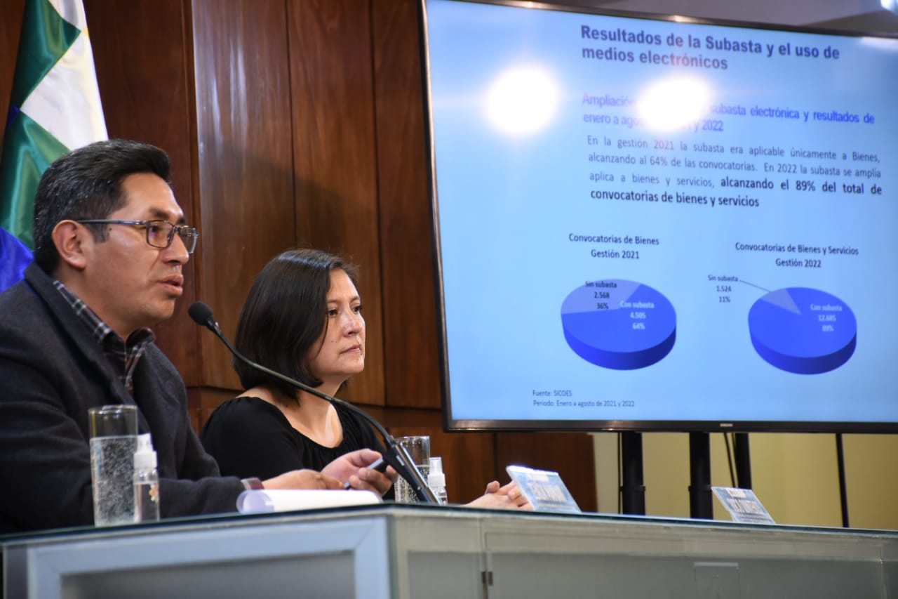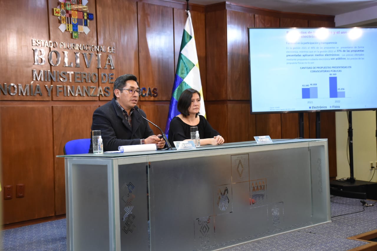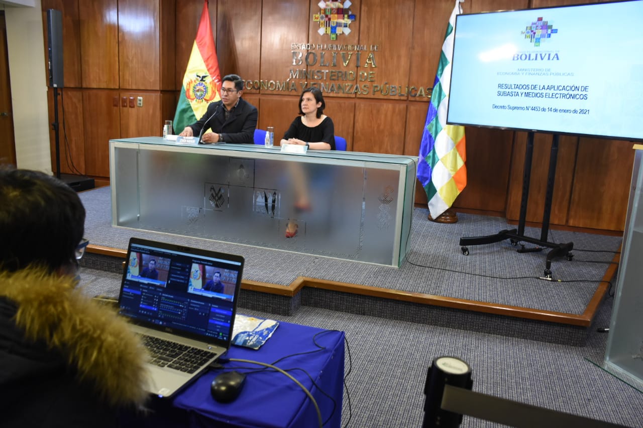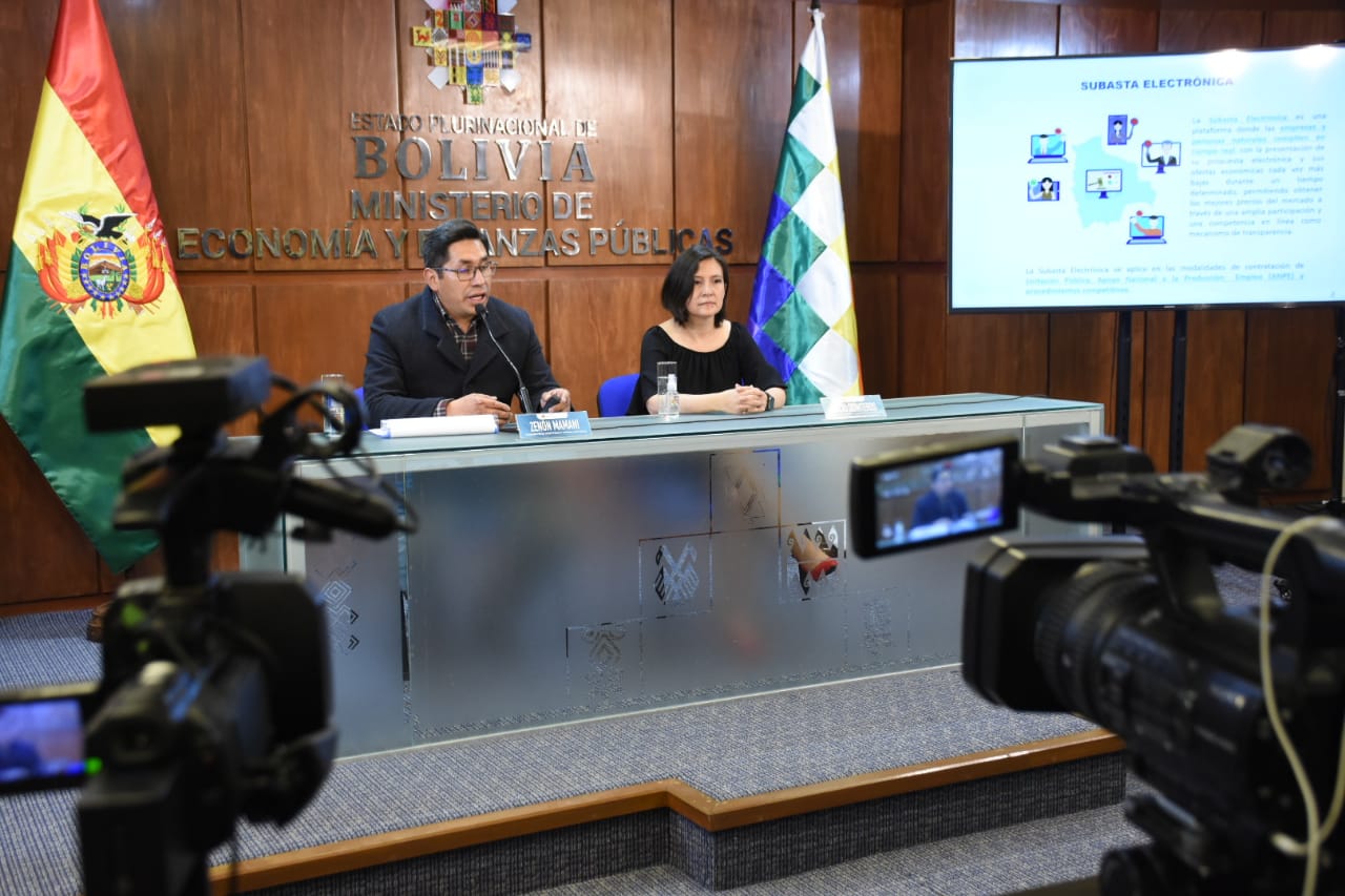 Conferencia de prensa del viceministro de Presupuesto y Contabilidad Fiscal, Zenón Mamani, sobre resultados de Subasta Electrónica para compra de bienes y servicios del EstadoEnzo De LucaGalería Fotográfica 22 Septiembre 2022 Visto: 5749ShareTwittearshare with Whatsappshare with Telegram Fotos: Jorge Mamani AnteriorSiguiente