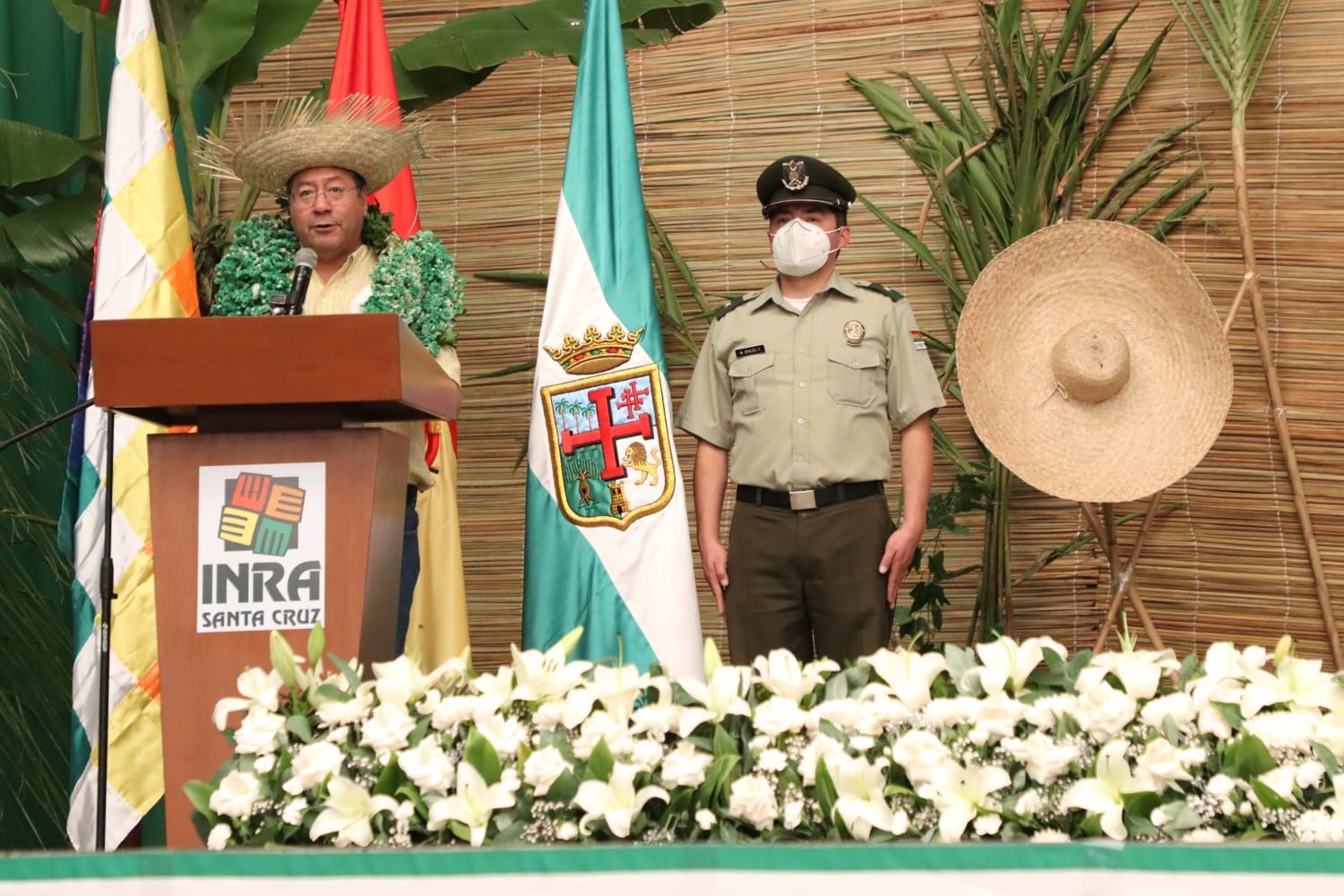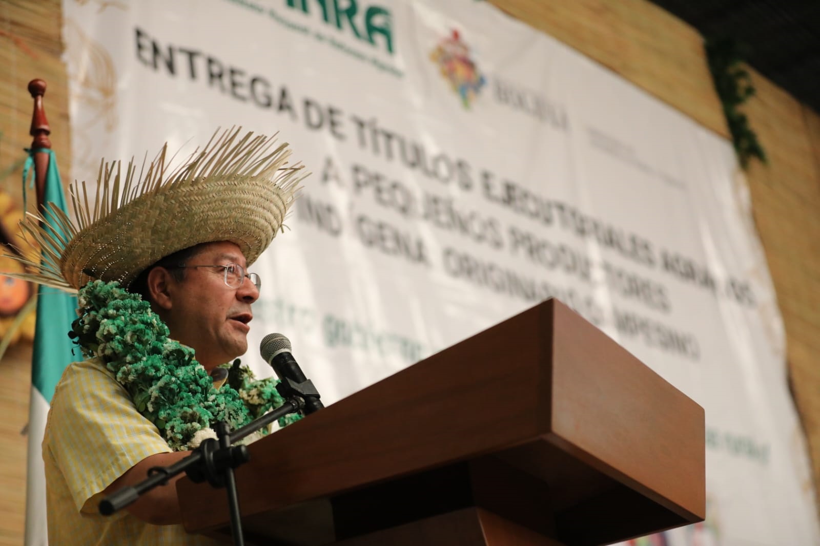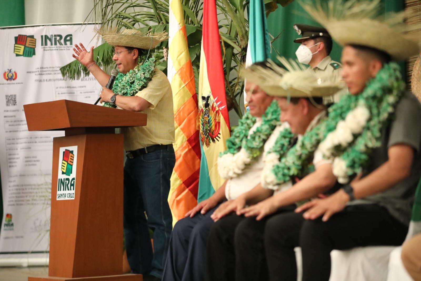 Luis Arce Catacora, presidente del Estado Plurinacional de Bolivia, hace entrega títulos ejecutoriales en Santa Cruz de la SierraEnzo De LucaGalería Fotográfica 23 Septiembre 2022 Visto: 7514ShareTwittearshare with Whatsappshare with Telegram Fotos: Comunicación PresidencialAnteriorSiguiente