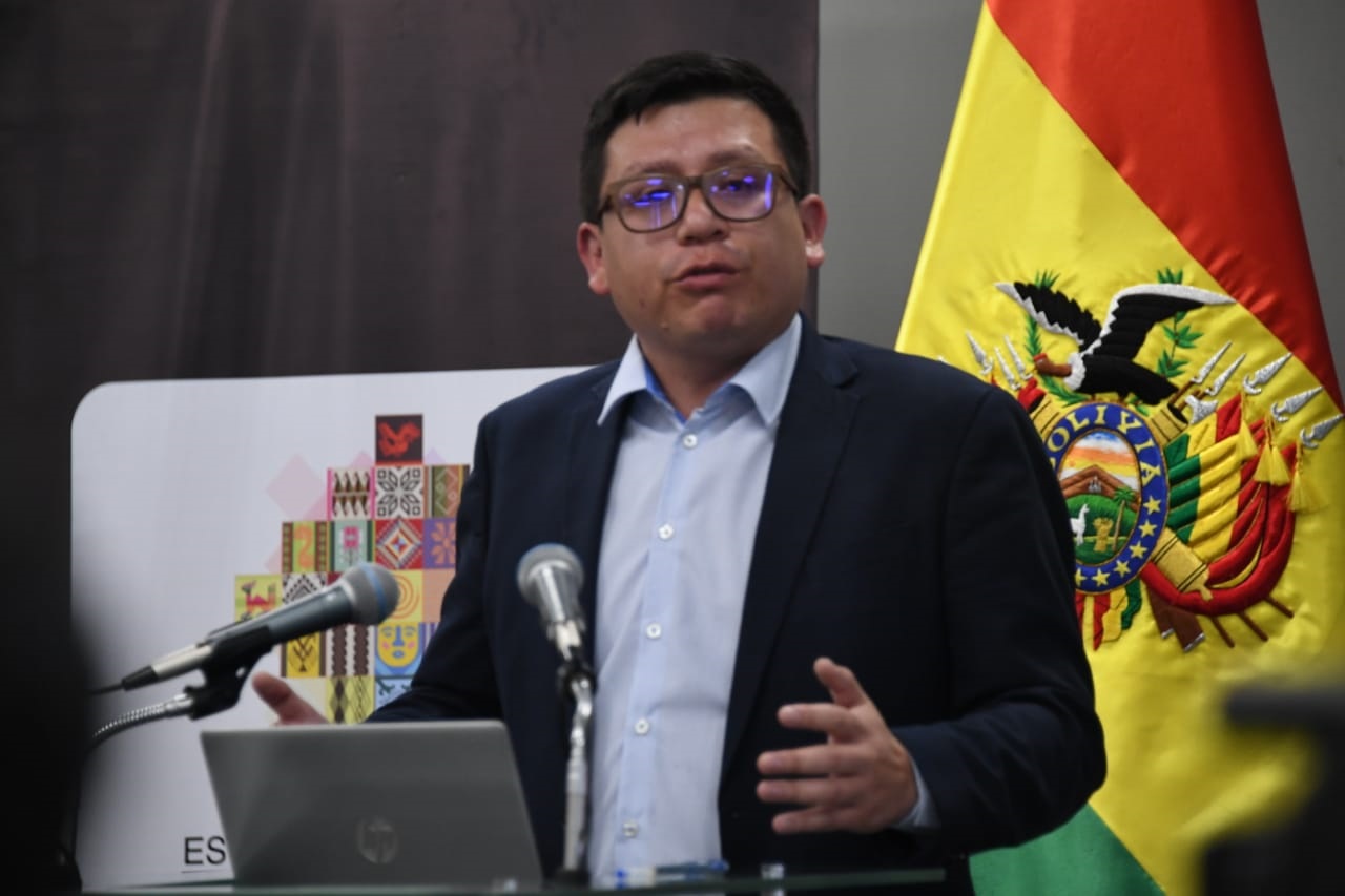 El ministro de Planificación del Desarrollo, Sergio Cusicanqui, junto al Instituto Nacional de Estadística (INE) brinda un conferencia en respuesta a propuesta de la Universidad Autónoma Gabriel René Moreno (UAGRM)