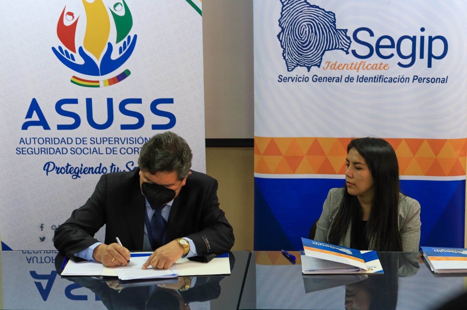 La Autoridad de Supervisión de la Seguridad Social de Corto Plazo y el Servicio General de Identificación Personal Segip, firma de convenio de cooperación interinstitucionalEnzo De LucaGalería Fotográfica 28 Septiembre 2022 Visto: 5728ShareTwittearshare with Whatsappshare with Telegram Fotos: Jorge MamaniAnteriorSiguiente