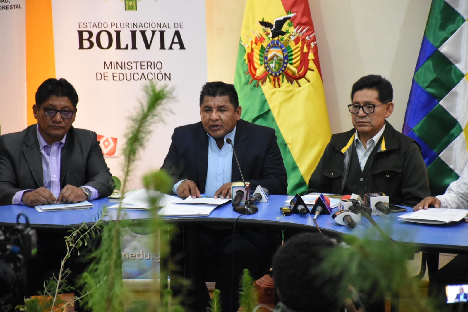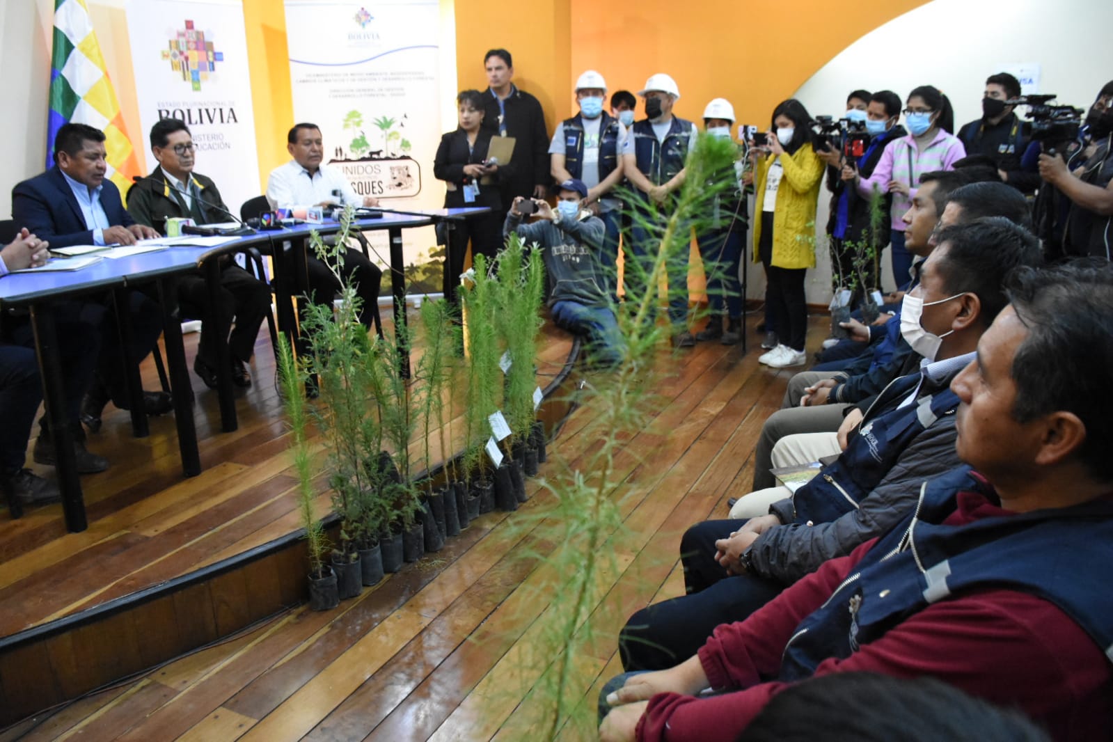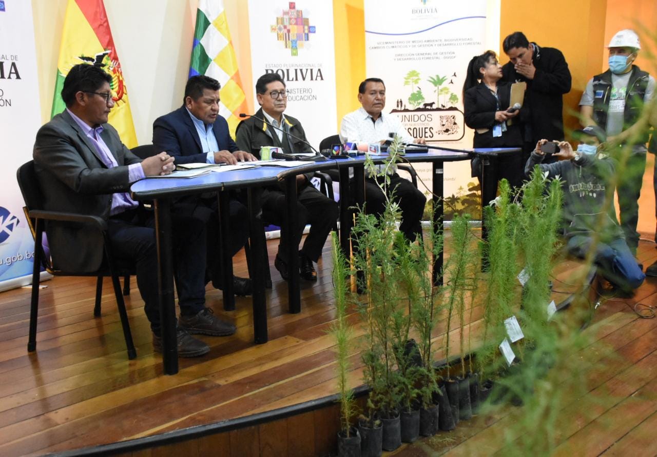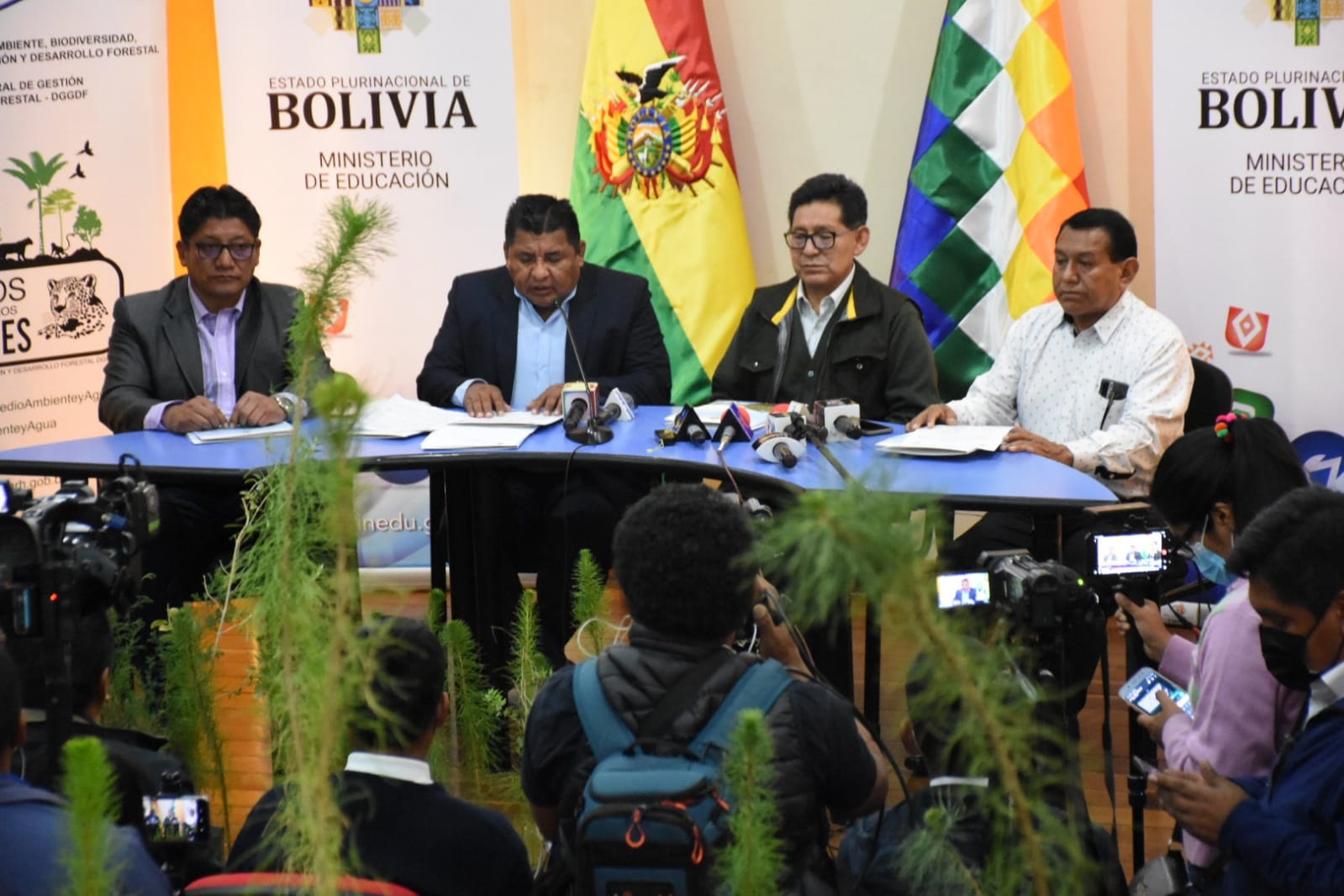 Ministros de Medio Ambiente y Agua Juan Santos Cruz y de Educación Edgar Pary, brindan conferencia de prensa, sobre actividades en relación al Día Nacional del ÁrbolEnzo De LucaGalería Fotográfica 29 Septiembre 2022 Visto: 5686ShareTwittearshare with Whatsappshare with Telegram FOTOS:Jorge MamaniAnteriorSiguiente
