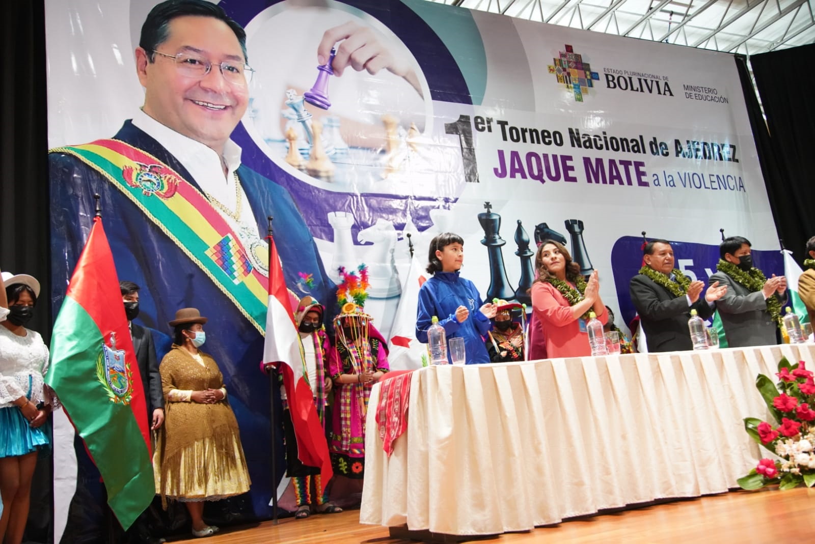 Ministerio de Educación, inaugura el 1er. Torneo Nacional de Ajedrez “Jaque mate a la violencia” en su fase nacional.Enzo De LucaGalería Fotográfica 04 Octubre 2022 Visto: 5561ShareTwittearshare with Whatsappshare with Telegram Fotos: Jorge MamaniAnteriorSiguiente