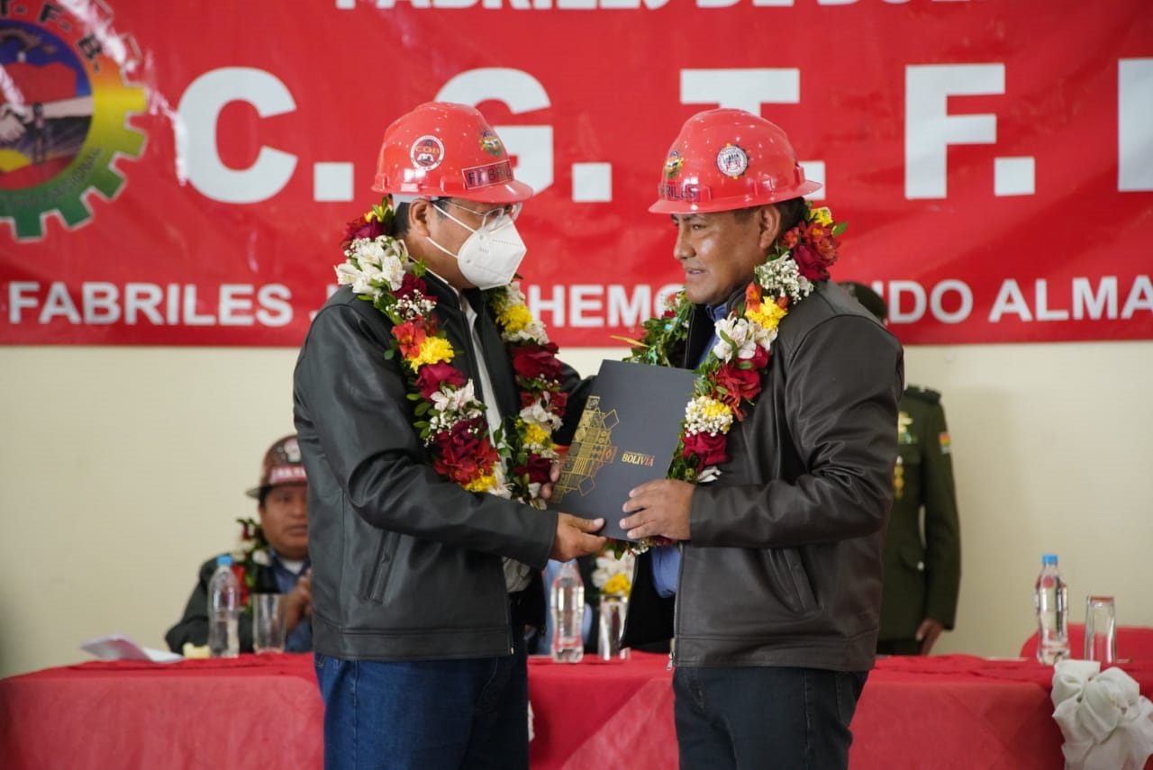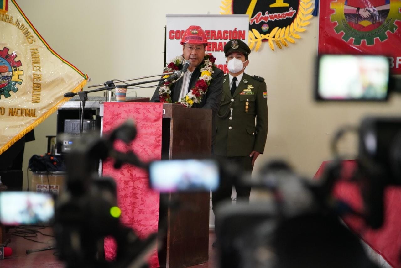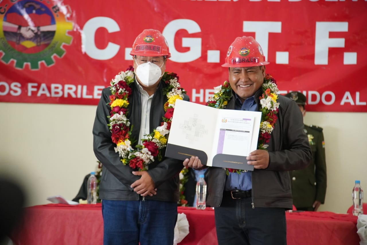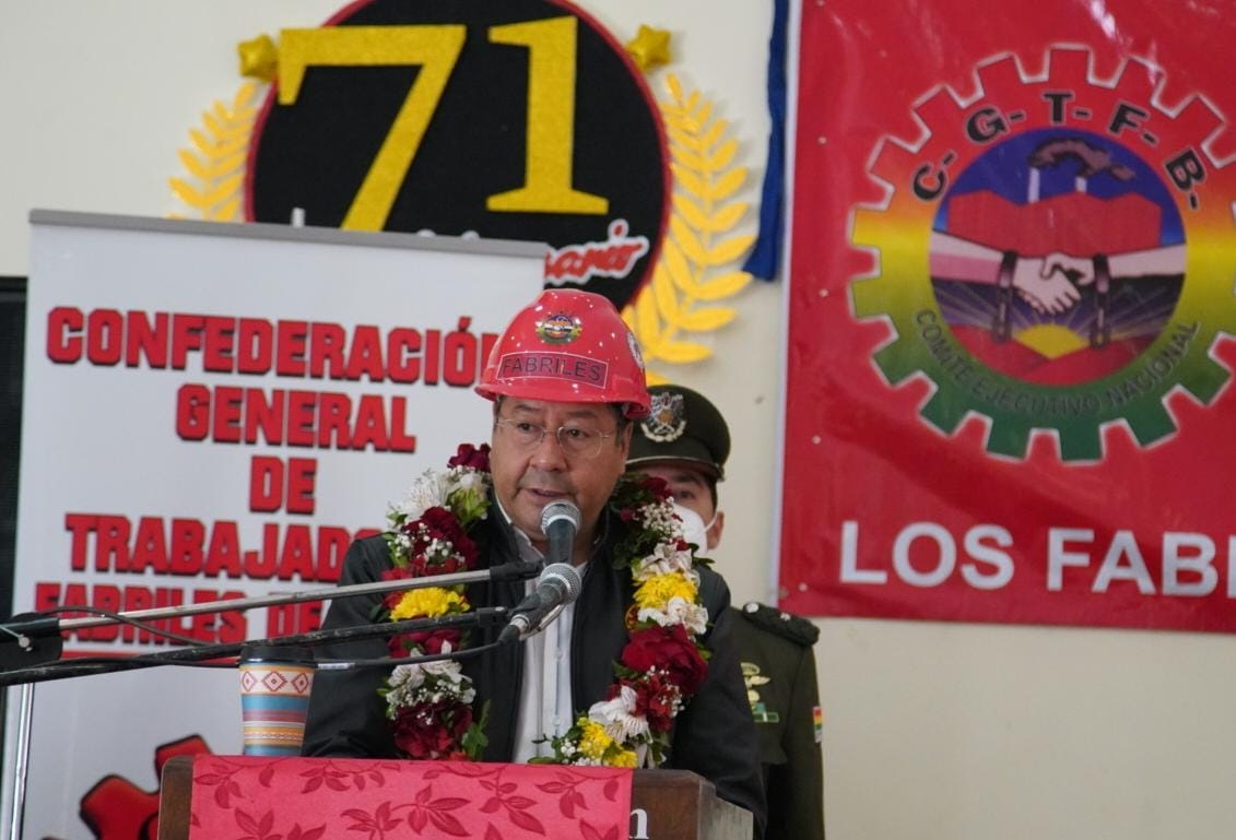El presidente del Estado Luis Arce, participa del acto de conmemoración por los 71 años de fundación de la Confederación General de Trabajadores Fabriles de Bolivia CGTFBEnzo De LucaGalería Fotográfica 07 Octubre 2022 Visto: 5991ShareTwittearshare with Whatsappshare with Telegram Fotos: Jorge MamaniAnteriorSiguiente