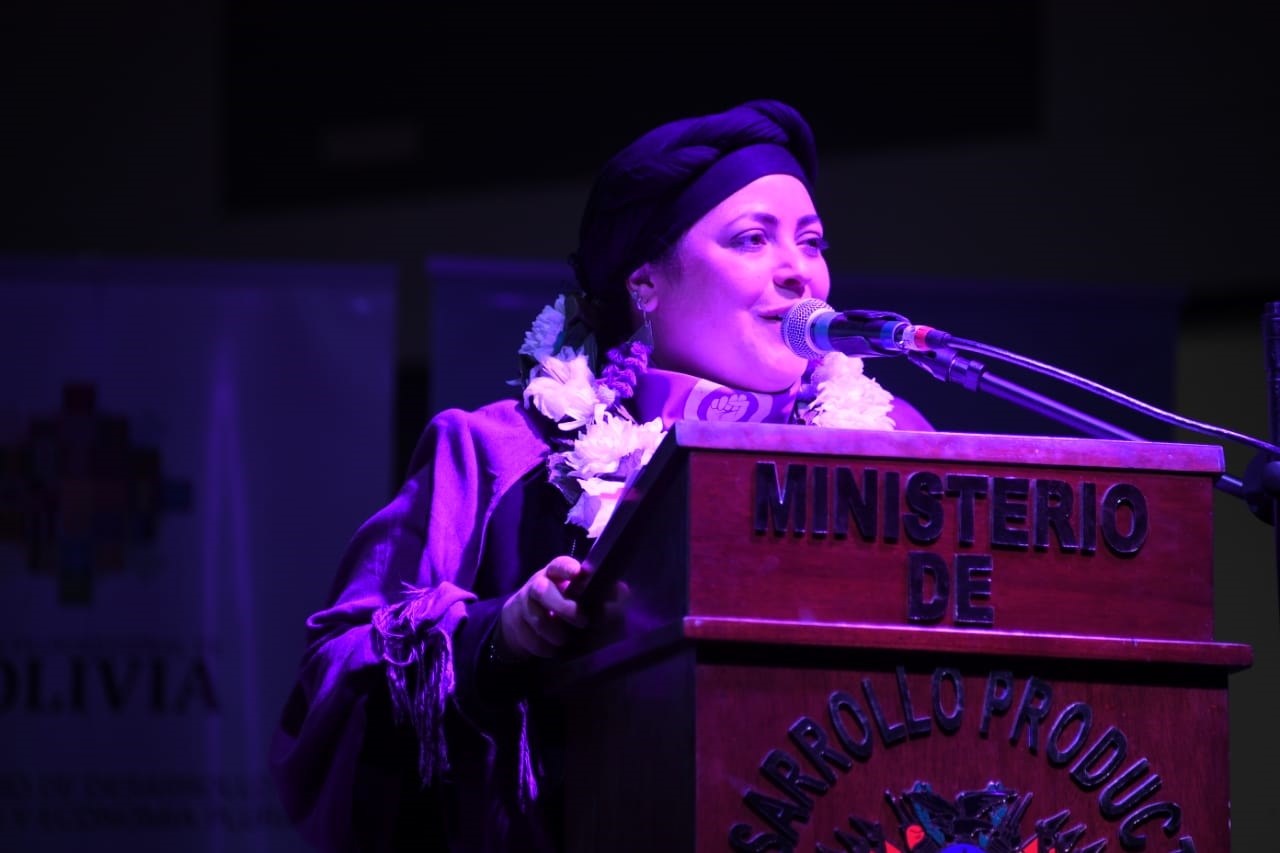 Fortalecimiento del programa "Domitila Chungara" del Ministerio de Desarrollo Productivo y Economía Plural y el Ministerio de la Presidencia Enzo De LucaGalería Fotográfica 11 Octubre 2022 Visto: 5247ShareTwittearshare with Whatsappshare with Telegram Fotos: Josué Cortéz / VICECOMAnteriorSiguiente