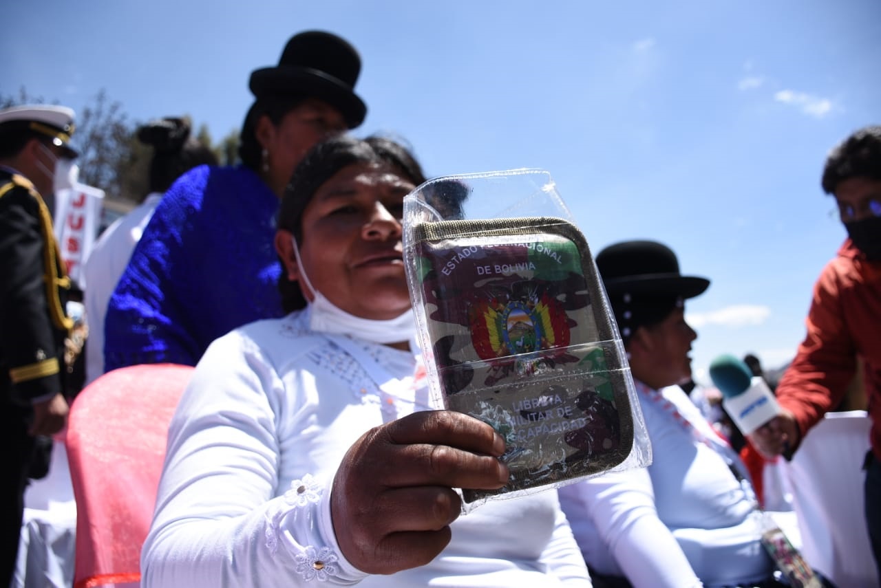 El Gobierno entrega Libretas del Servicio Militar a más de 200 personas con discapacidad de los municipios de Huarina, Sica Sica, Patacamaya, El Alto y La PazEnzo De LucaGalería Fotográfica 20 Octubre 2022 Visto: 3058ShareTwittearshare with Whatsappshare with Telegram Fotos: Josué Cortéz / VICECOMAnteriorSiguiente