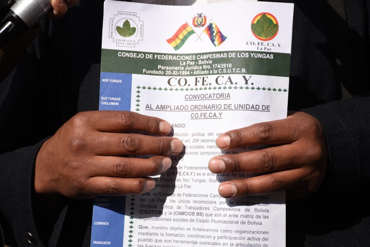 Ejecutivo de COFECAY Ernesto Mamani Laura anuncio un ampliado para el 29 de octubre en Coroico donde se va a determinar su apoyo al gobiernoEnzo De LucaGalería Fotográfica 24 Octubre 2022 Visto: 4275ShareTwittearshare with Whatsappshare with Telegram VICECOM/Josué Cortéz AnteriorSiguiente