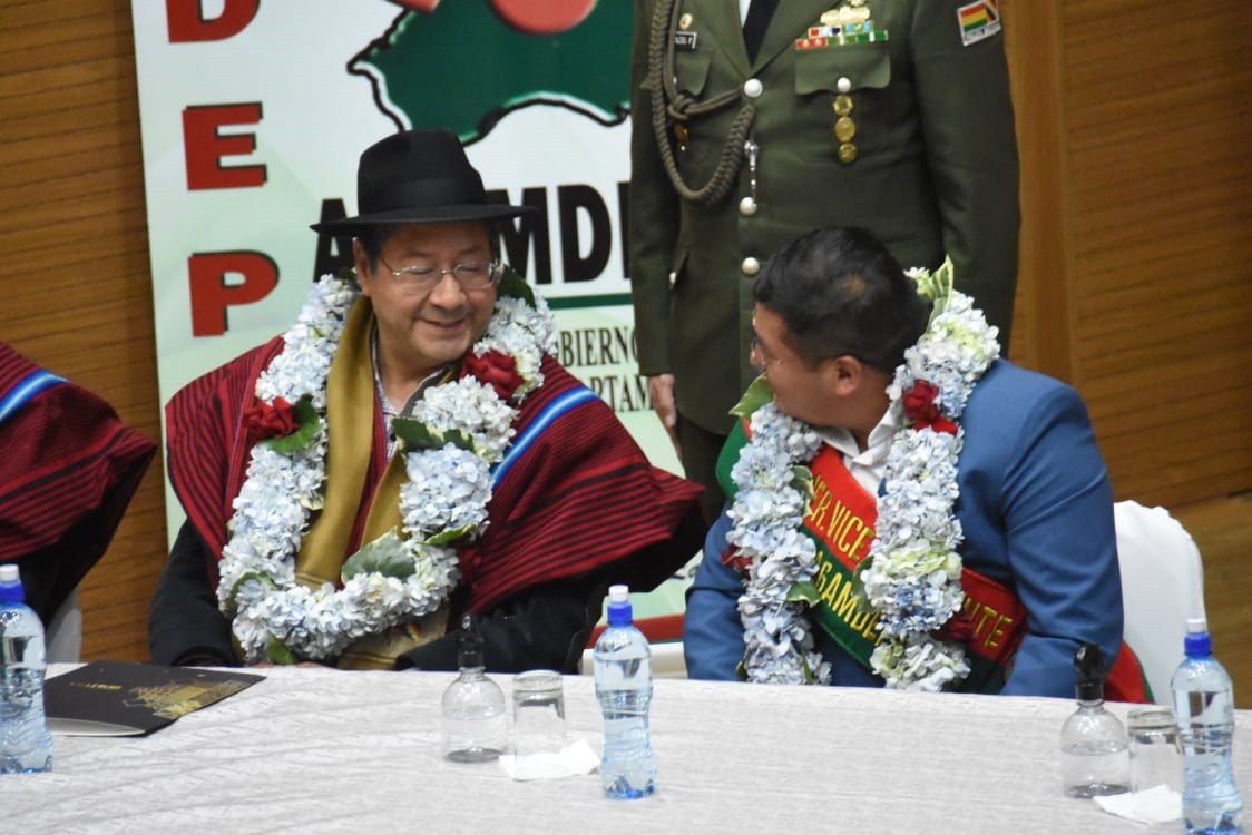 Presidente Luis Arce Catacora junto al vicepresidente, David Choquehuanca participan del 6to. Aniversario de la Asociación de Gobiernos Municipales de La Paz (Agamdepaz).Enzo De LucaGalería Fotográfica 25 Octubre 2022 Visto: 4071ShareTwittearshare with Whatsappshare with Telegram Fotos: Jallasi/Schuett/CortézAnteriorSiguiente