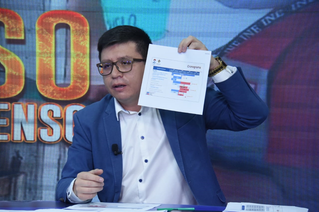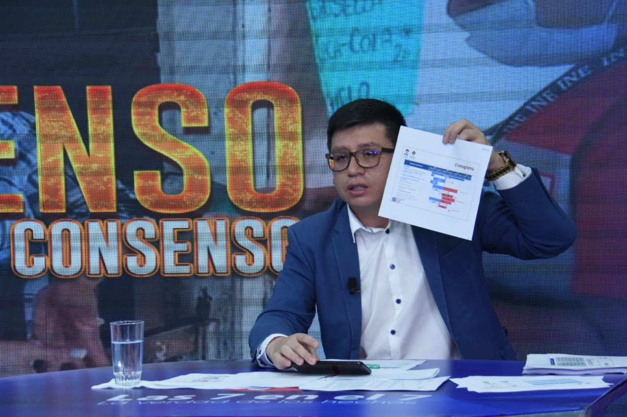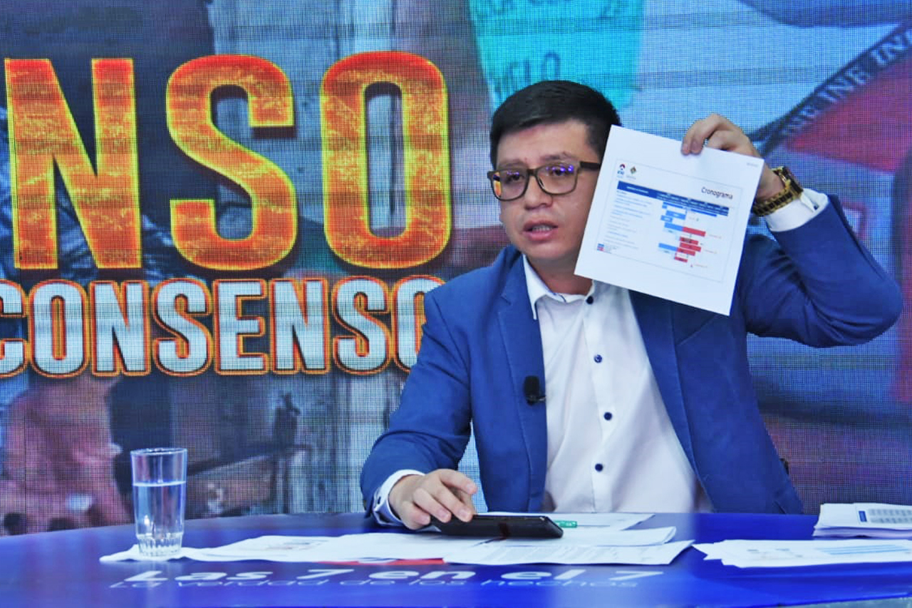 Autridades de Estado que intervinieron hoy en el programa “7 en el 7” Ministro, de Planificación del Desarollo Sergio Cusicanqui, de Educación, Edgar Pary, directora ABEN Hortensia Jiménez, Director del Sernap Teodoro Mamani