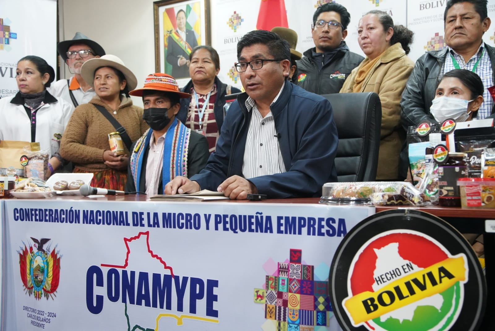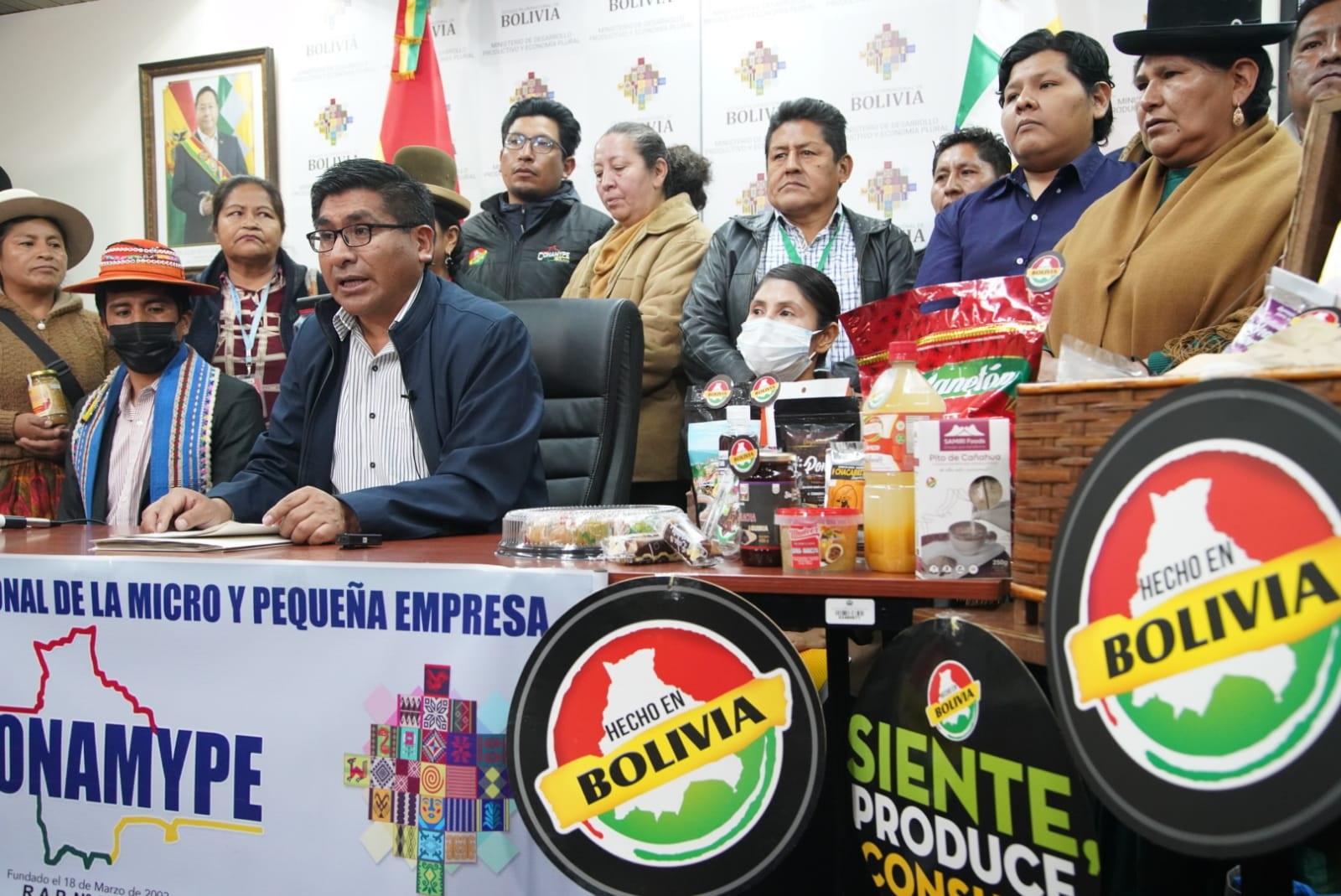 Ministro de Desarrollo Productivo y Economía Plural y Viceministerio de la Micro y Pequeña Empresa, presentan la exposición Hecho en Bolivia “Del Productor al Canastón”Enzo De LucaGalería Fotográfica 01 Noviembre 2022 Visto: 13087ShareTwittearshare with Whatsappshare with Telegram Fotos: Jorge MamaniAnteriorSiguiente