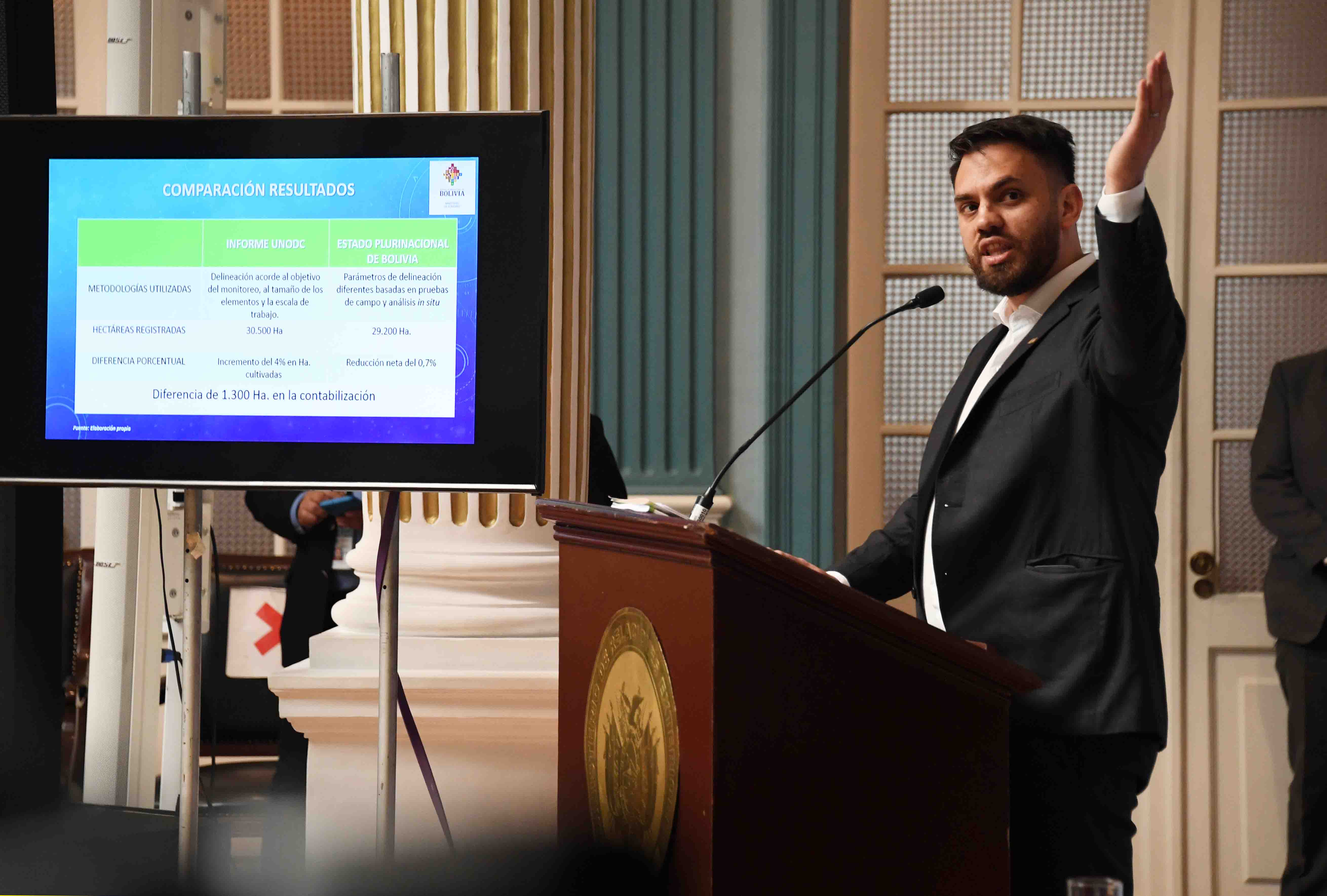 Presentación del Informe de Monitoreo de Cultivos de Coca 2021 por el ministro de Gobierno Eduardo Del CastilloUsuario ABIGalería Fotográfica 29 Noviembre 2022 Visto: 11582ShareTwittearshare with Whatsappshare with Telegram FOTOS: VICECOM/Josue Cortez AnteriorSiguiente