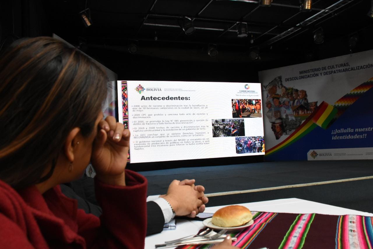 La ministra de Culturas, Descolonización y Despatriarcalización Sabina Orellana ultima detalles de la Cumbre Contra el RacismoUsuario ABIGalería Fotográfica 01 Diciembre 2022 Visto: 10676ShareTwittearshare with Whatsappshare with Telegram FOTOS Jorge MamaniAnteriorSiguiente