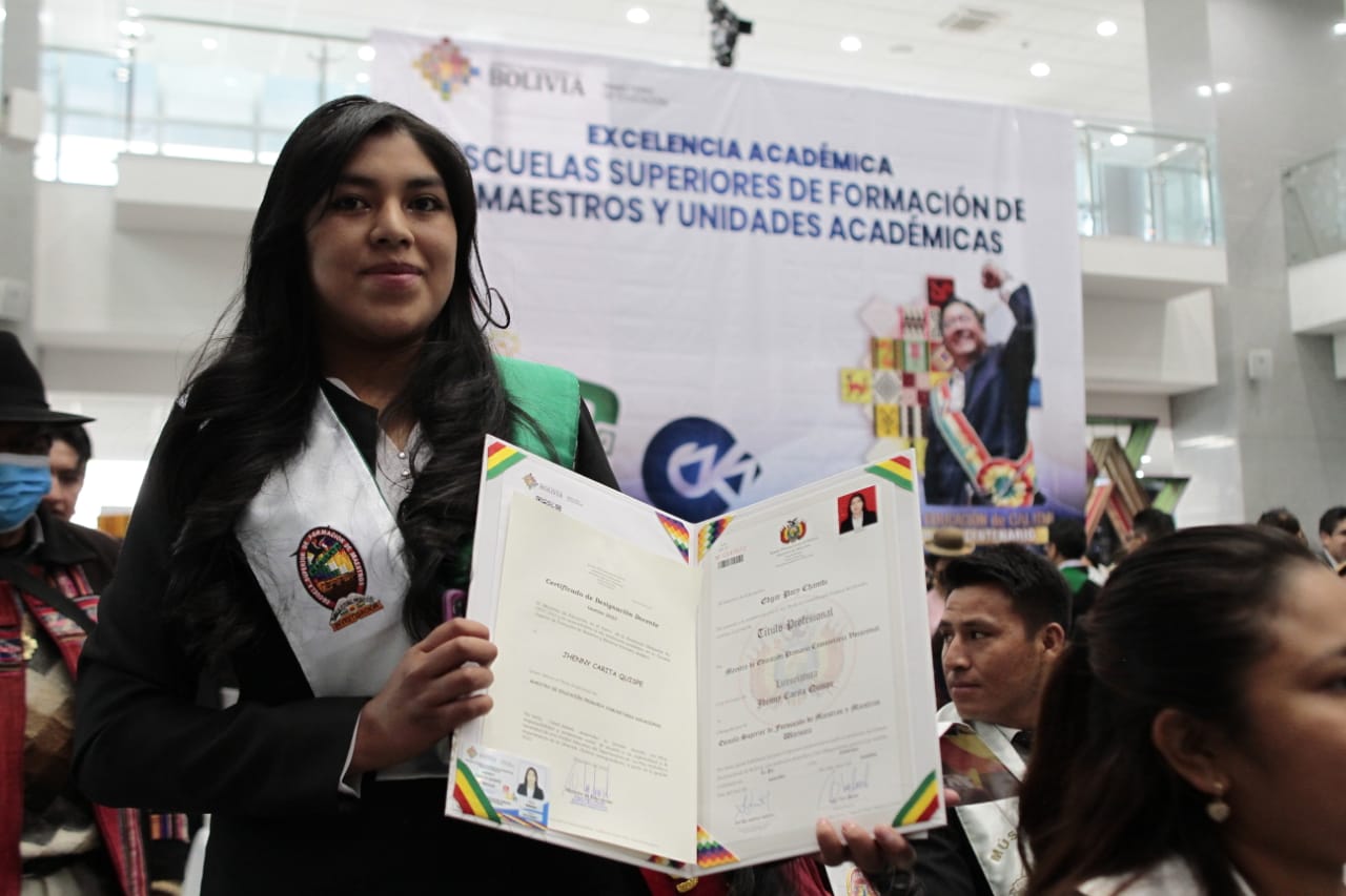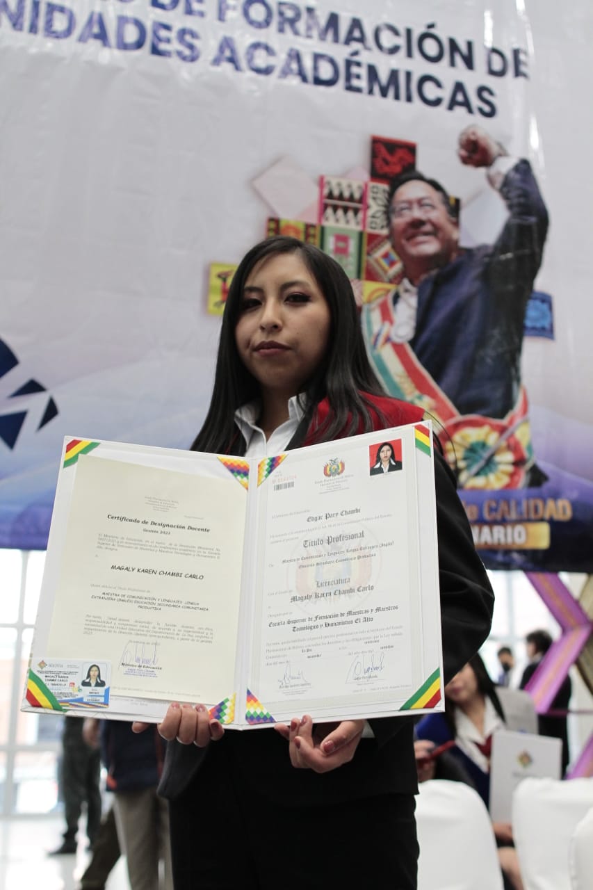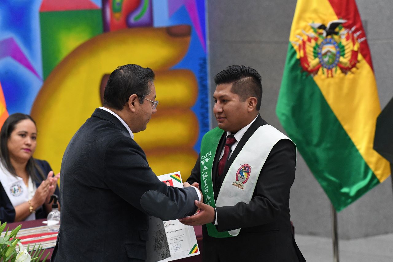 El Presidente Luis Arce realizó la entrega de certificados de excelencia a maestros y maestras de las institutos superiores de formaciones de maestros (2/2)Usuario ABIGalería Fotográfica 01 Diciembre 2022 Visto: 10939ShareTwittearshare with Whatsappshare with Telegram FOTOS VICECOMAnteriorSiguiente