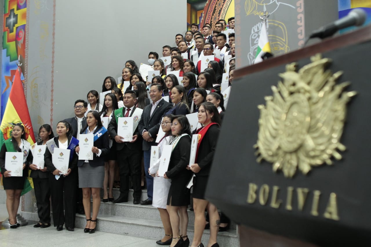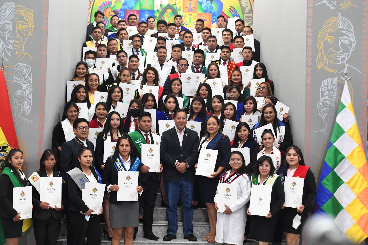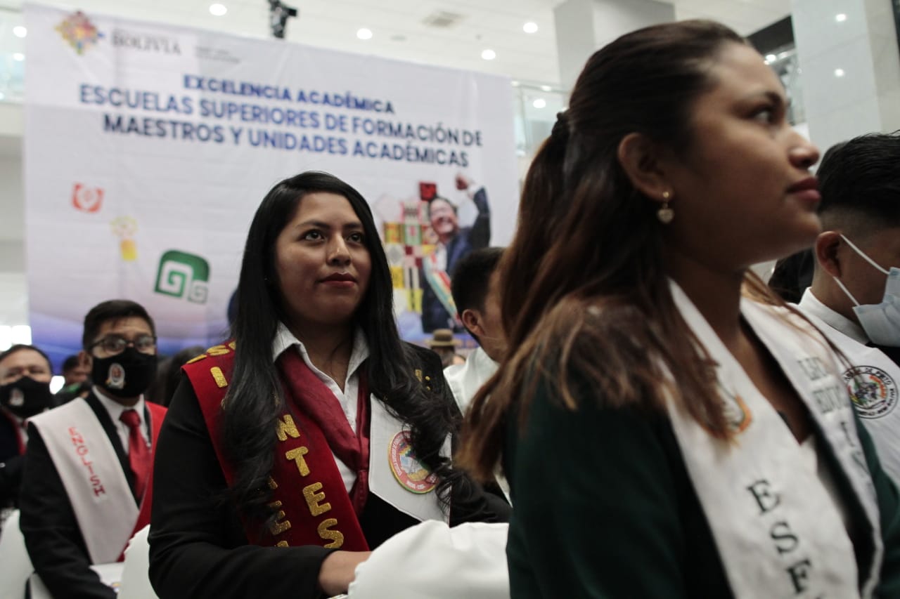 El Presidente Luis Arce realizó la entrega de certificados de excelencia a maestros y maestras de las institutos superiores de formaciones de maestros (2/2)Usuario ABIGalería Fotográfica 01 Diciembre 2022 Visto: 10939ShareTwittearshare with Whatsappshare with Telegram FOTOS VICECOMAnteriorSiguiente