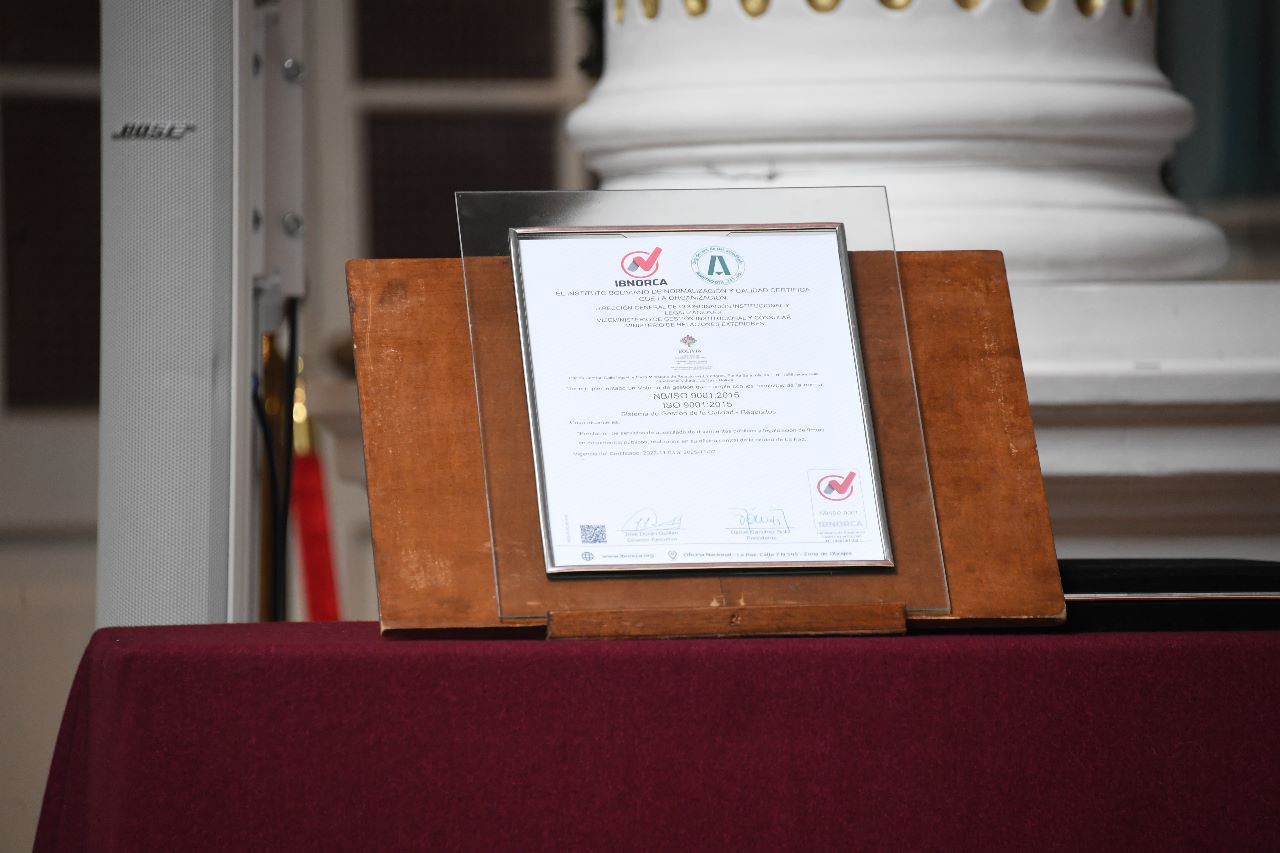 Acto de recepción de certificación del Sistema de Gestión de la Calidad NB/ISO 9001:2015 en el Ministerio de Relaciones ExterioresUsuario ABIGalería Fotográfica 08 Diciembre 2022 Visto: 12824ShareTwittearshare with Whatsappshare with Telegram FOTOS: Ron Schuett / Viceministerio de ComunicaciónAnteriorSiguiente