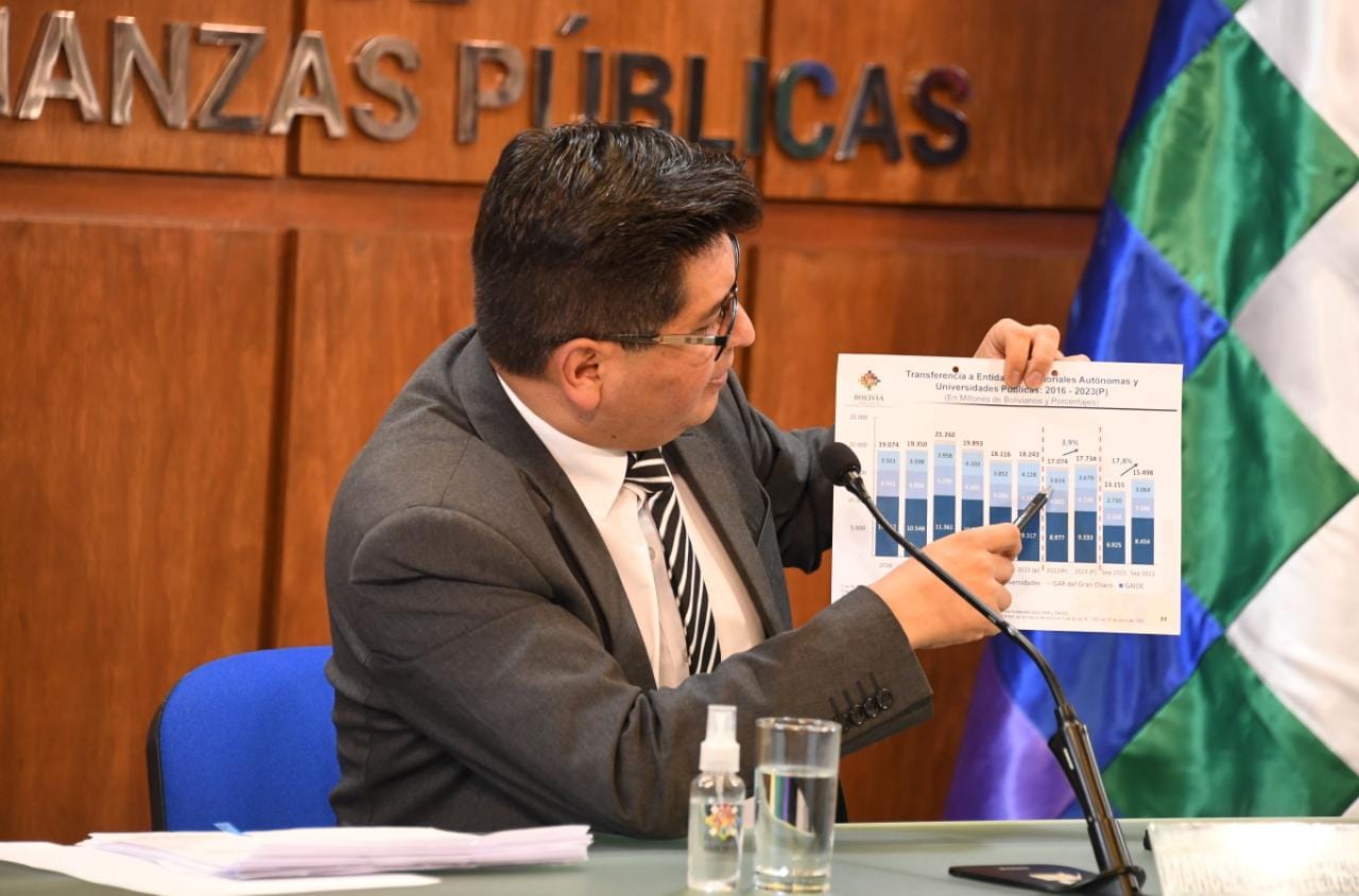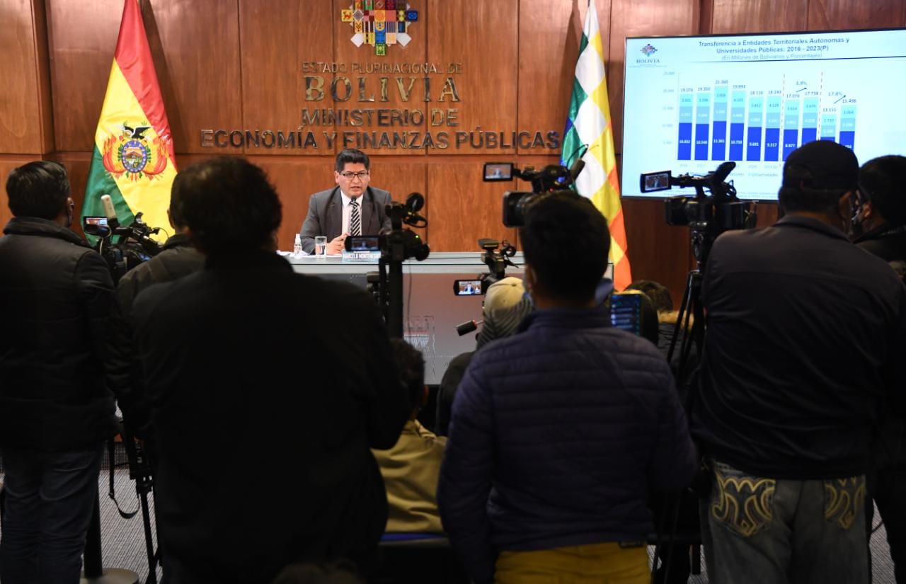 El ministro Marcelo Montenegro brinda conferencia de prensa sobre el tratamiento del Presupuesto General del Estado 2023 en la Cámara de DiputadosUsuario ABIGalería Fotográfica 08 Diciembre 2022 Visto: 12203ShareTwittearshare with Whatsappshare with Telegram FOTOS: Josue Cortez / Viceministerio de ComunicaciónAnteriorSiguiente