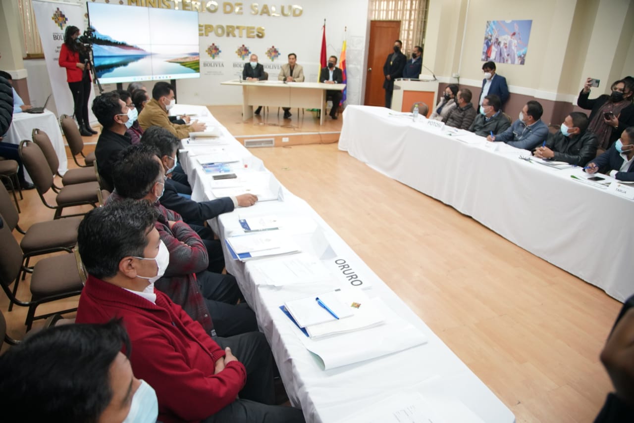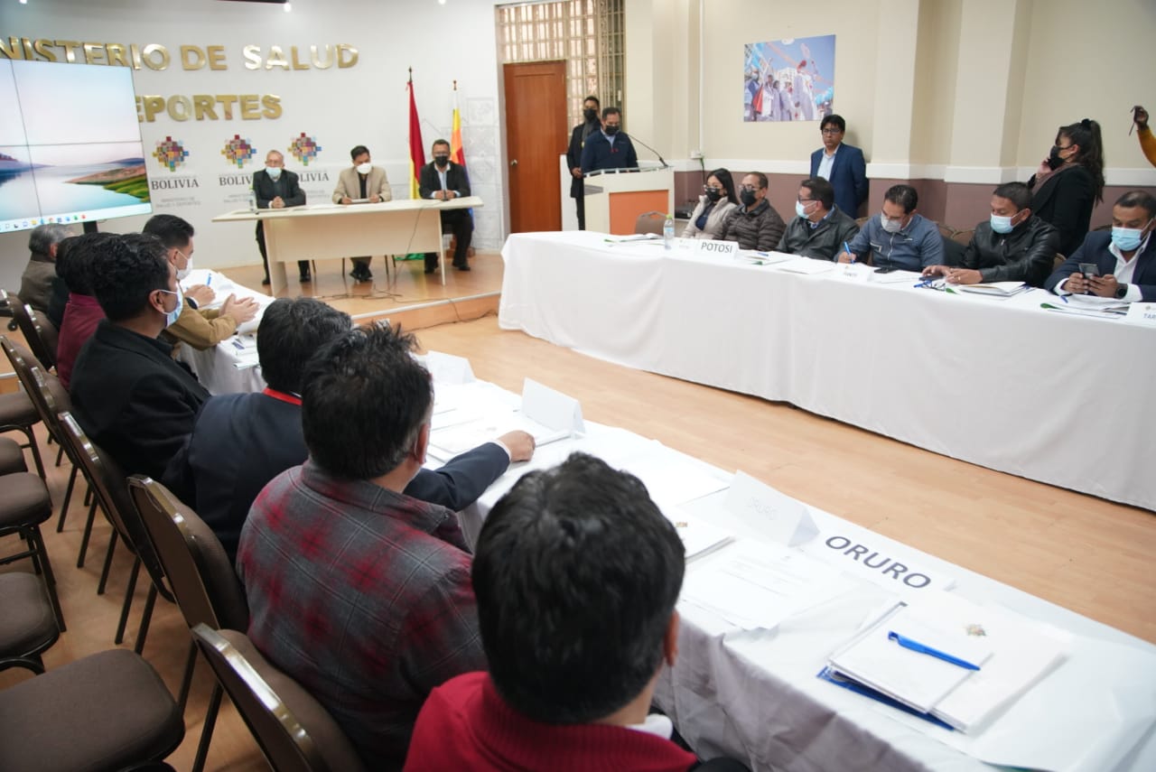 El Ministro de Salud Yeyson Auza inaugura acuerdos, lineamiento de estrategias y organización del trabajo epidemiológico en todo el país, para enfrentar la 6ta olaUsuario ABIGalería Fotográfica 13 Diciembre 2022 Visto: 10869ShareTwittearshare with Whatsappshare with Telegram FOTOS: Jorge Mamani / AEPAnteriorSiguiente